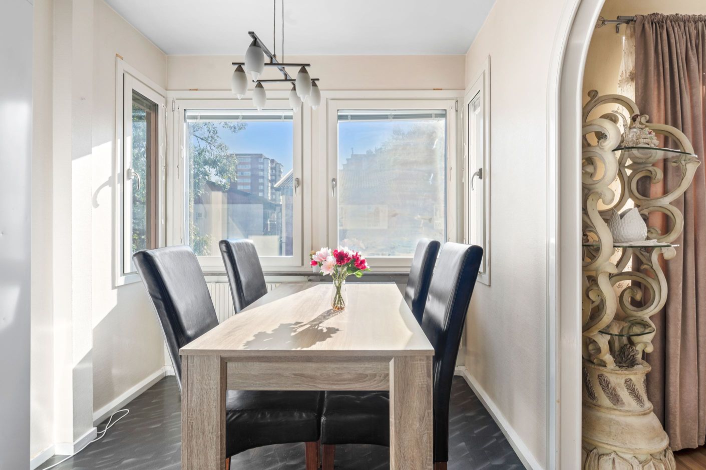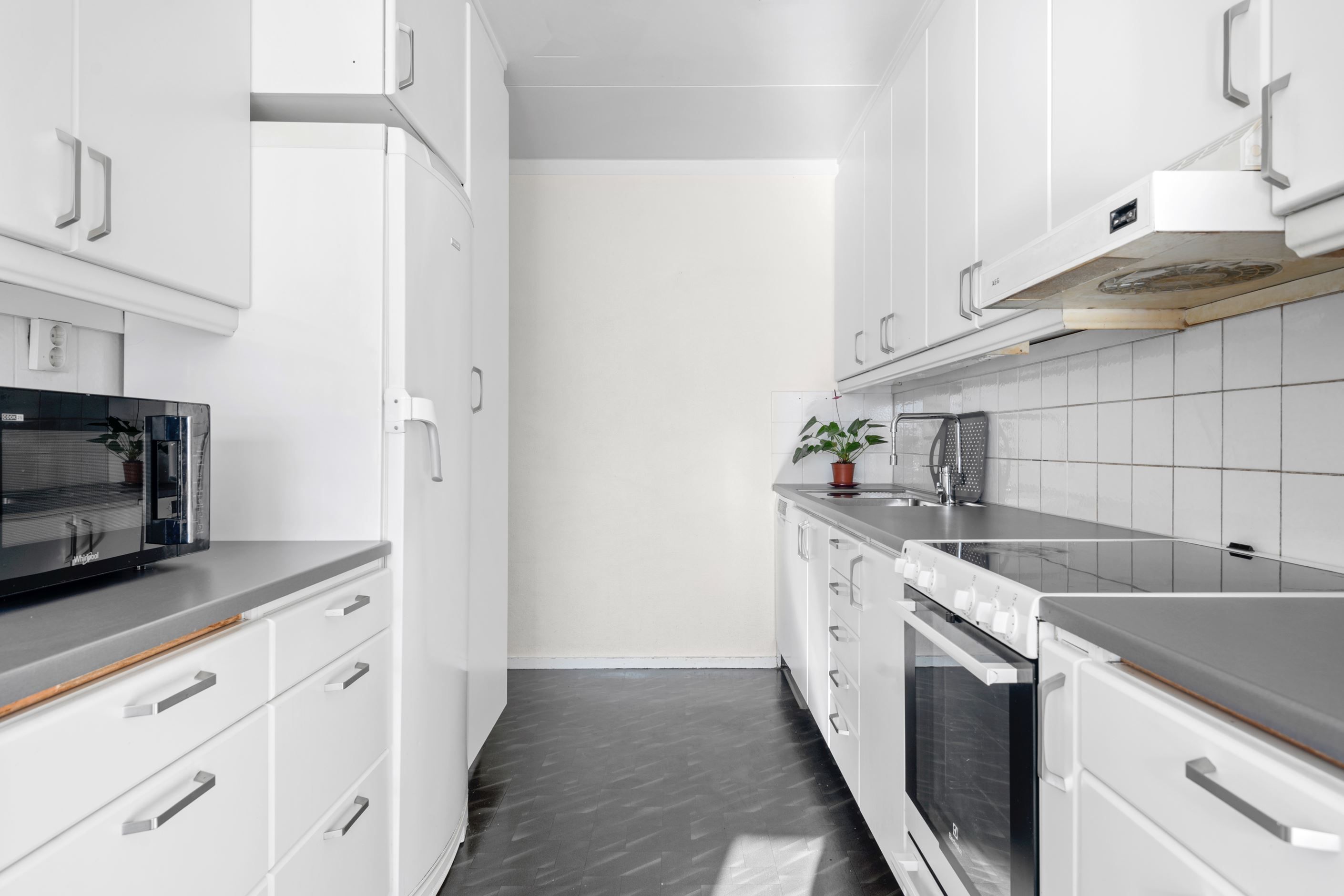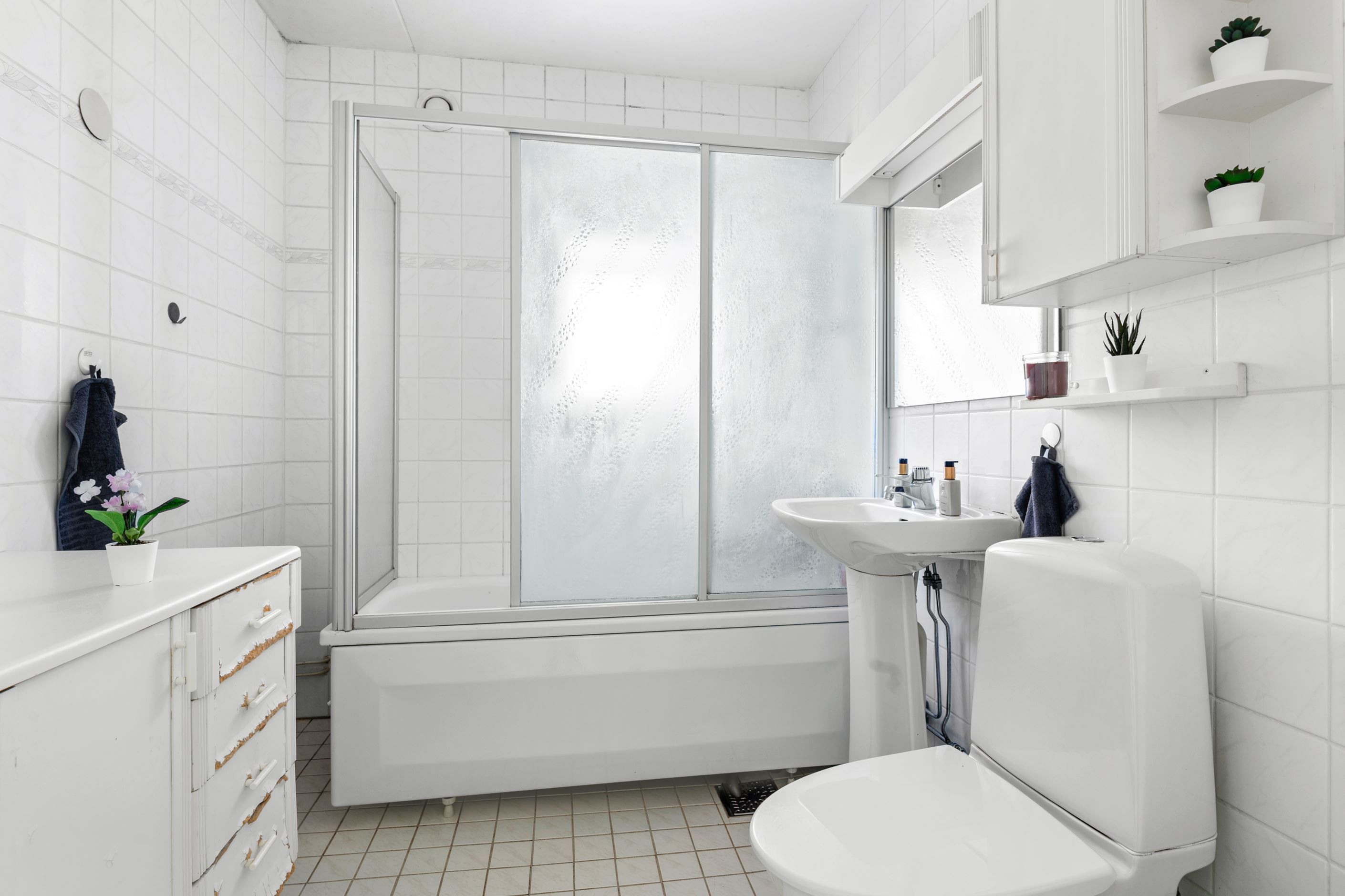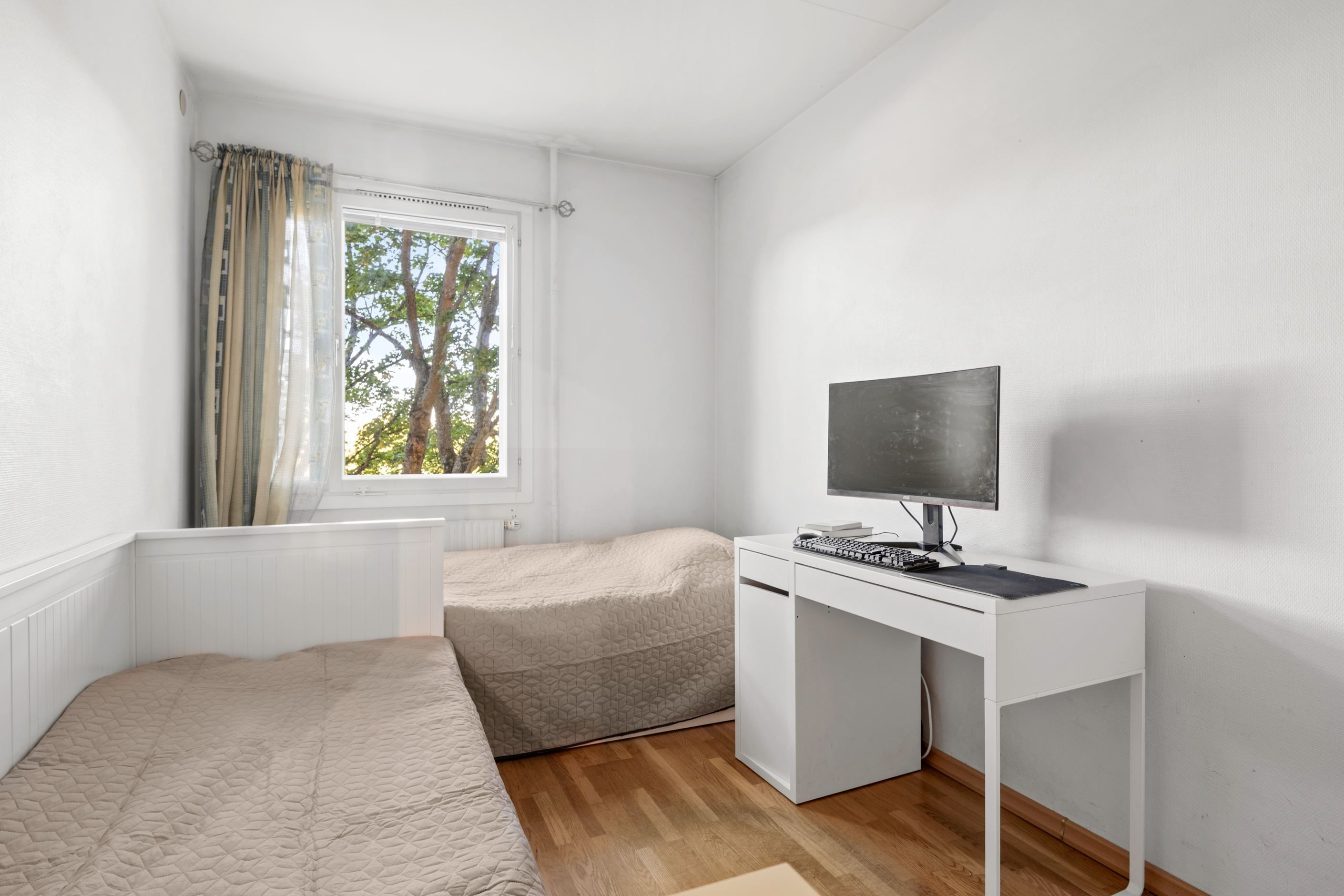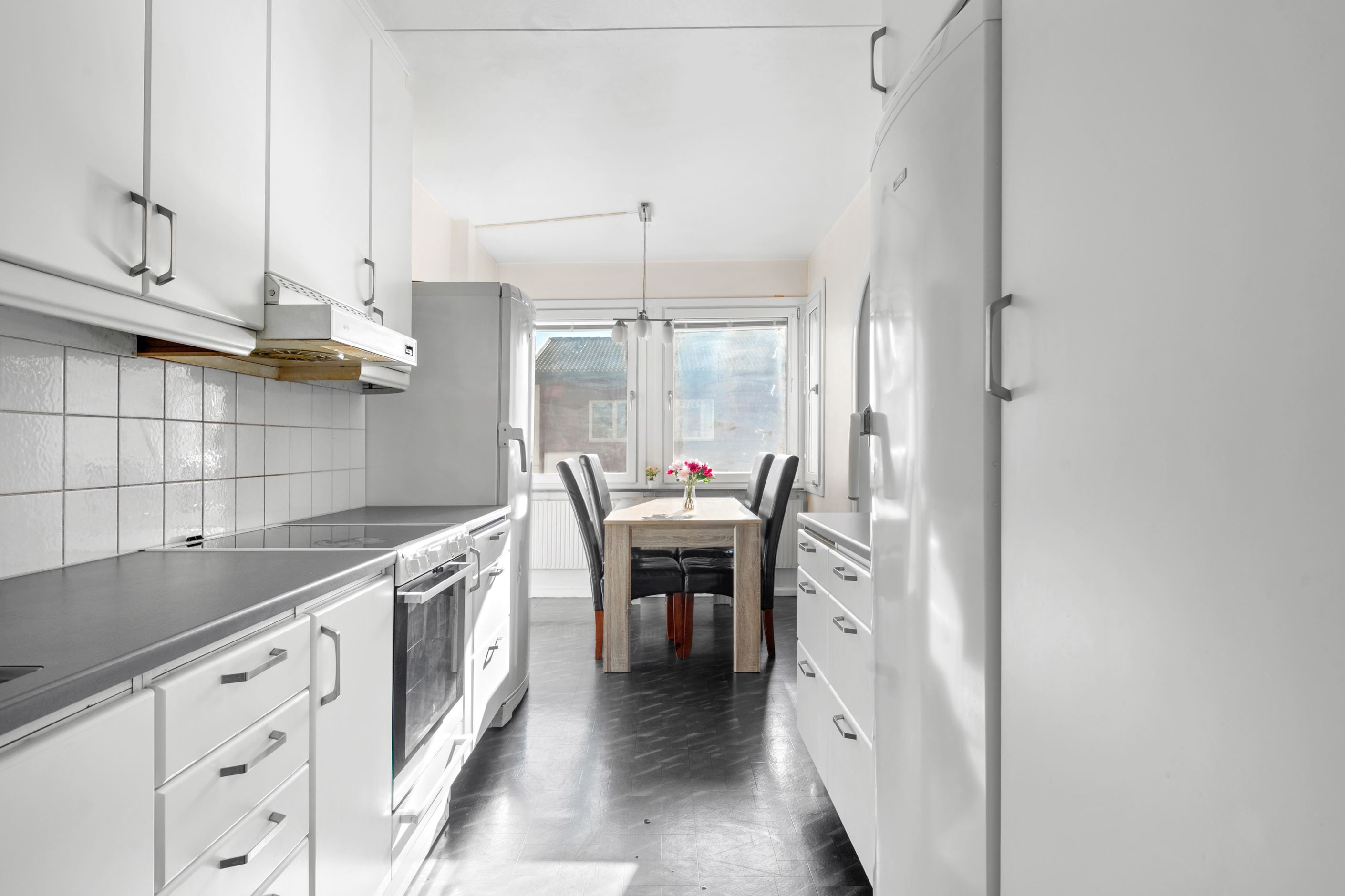 - En klassisk Porkala-3:a om ca 75 kvm med helkaklat badrum och fönster tack vare gavelläget! Populär planlösning med separat kök och vardagsrum. Möjigt att göra en öppen planlösning eller göra om bostaden till en 4:a för den som önskar. 2 stora sovrum med trägolv och ljusa väggar. Vitt kök med nya luckor från 2023 samt ny grå bänkskiva. Stor hall med säkerhetsdörr samt tillhörande klädkammare. Ljust vardagsrum med utgång till balkong i söderläge mot grönska! Badrum med ljusa helkaklade väggar samt klinkergolv och plats för tvättmaskin. Möjligt att bygga om matplatsen till ett sovrum för den som önskar. Källarförråd och tvättstuga finns i samma byggnad.