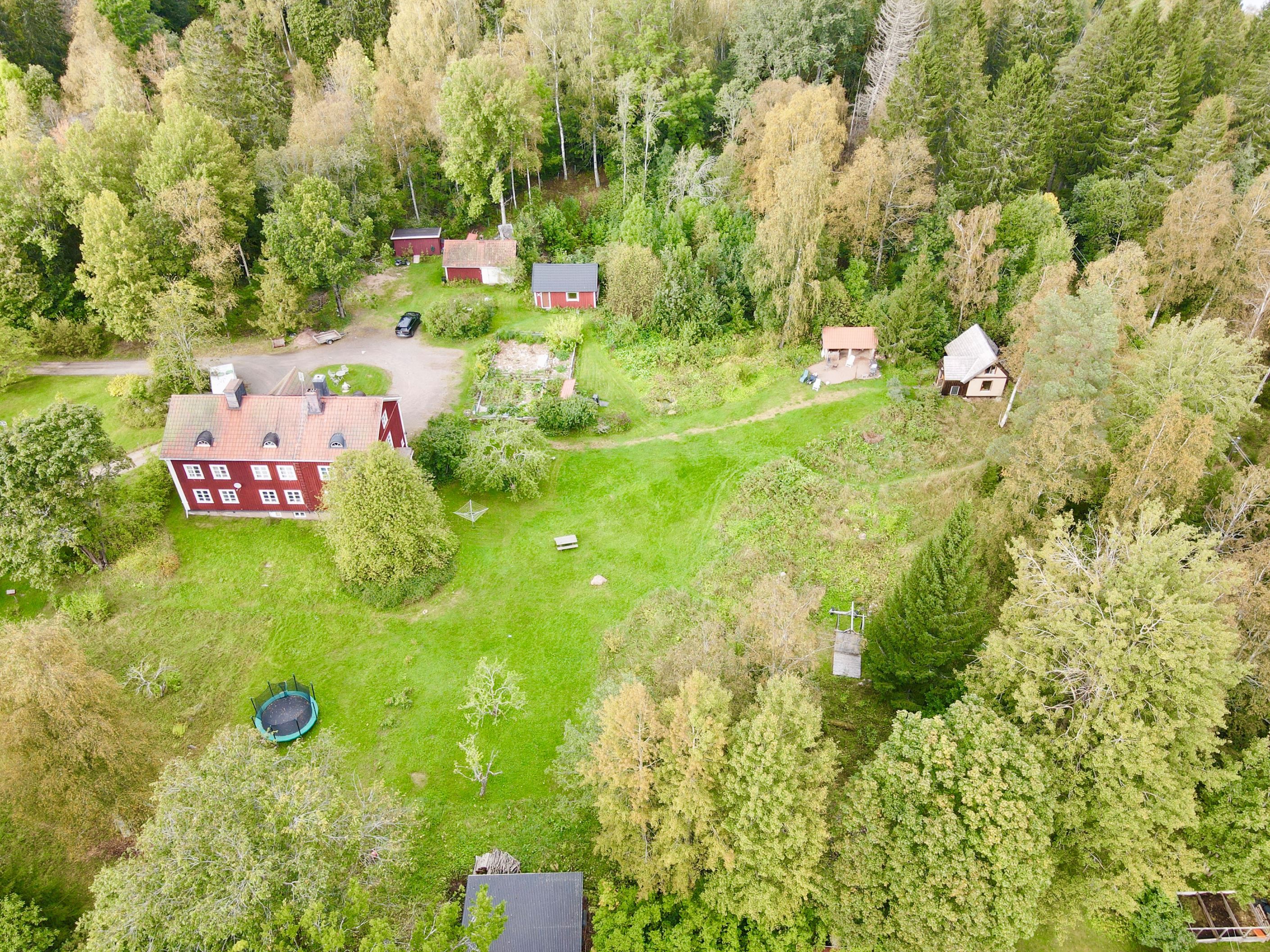 Utemiljön är minst sagt inbjudande: en stor trädgård med fruktträd, odlingsmöjligheter och plats för lek och avkoppling. Med närhet till flera sjöar erbjuds fantastiska möjligheter till bad, fiske och båtliv – året runt. Skidspår, vandringsleder och svampmarker finns alldeles runt knuten.