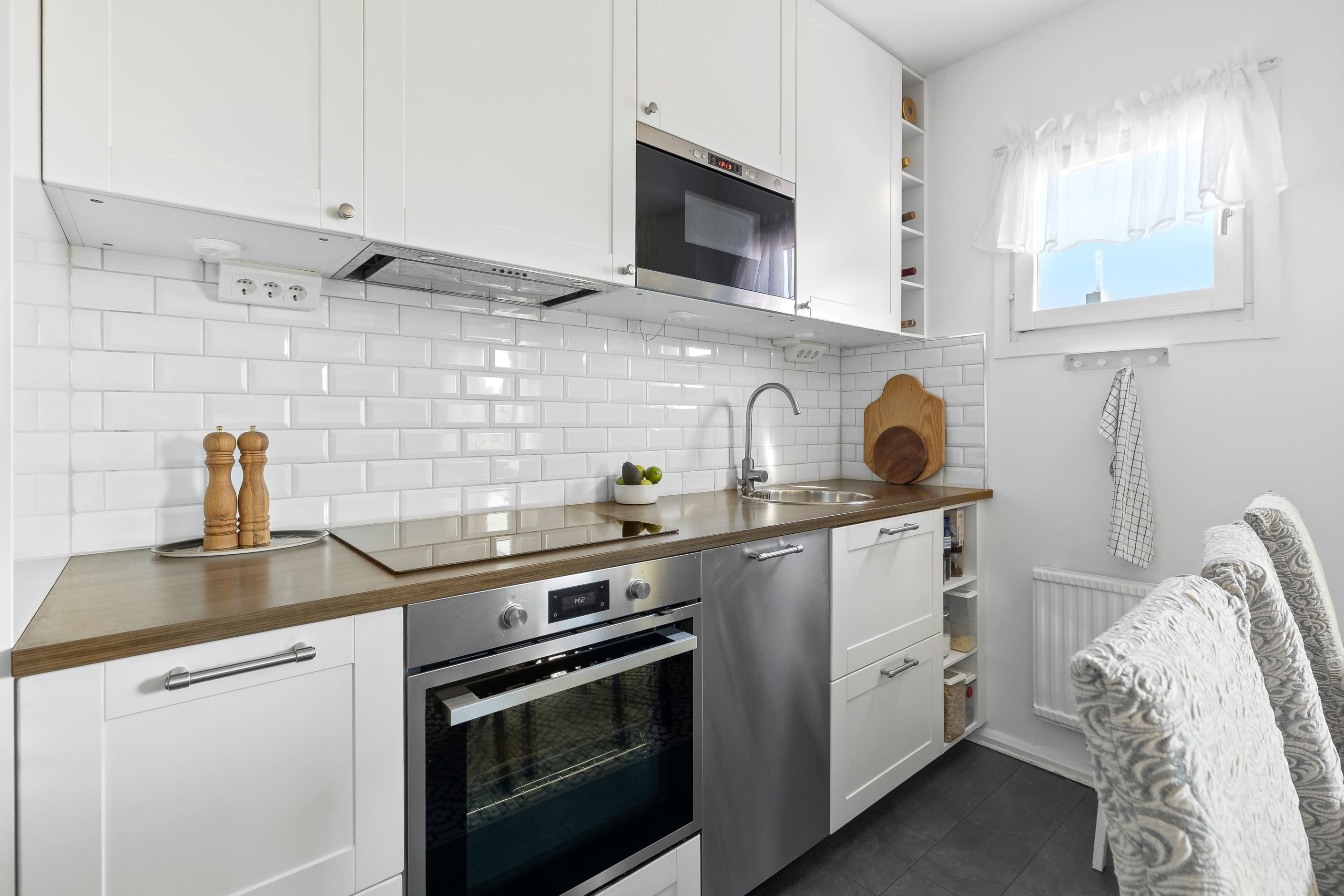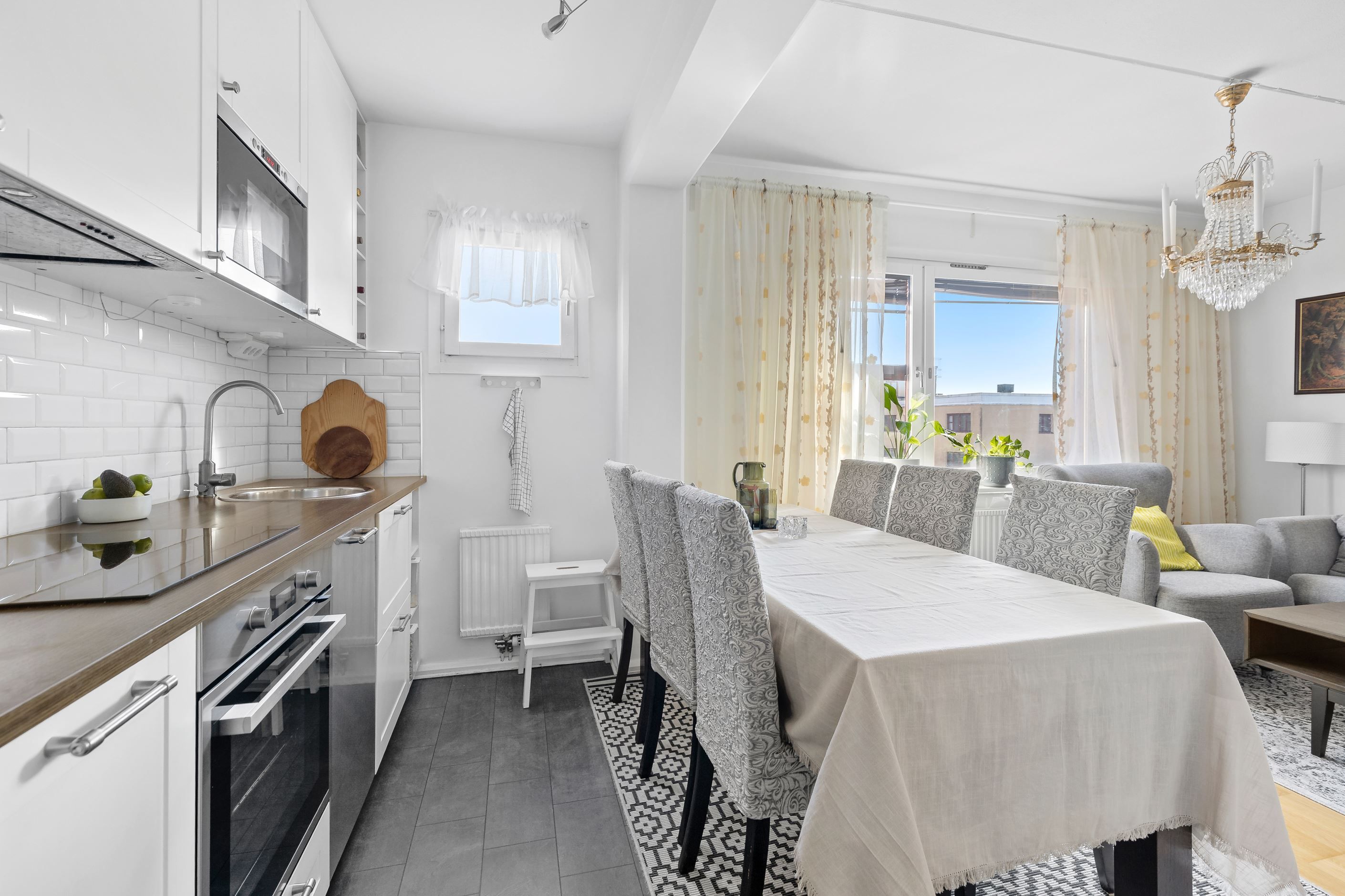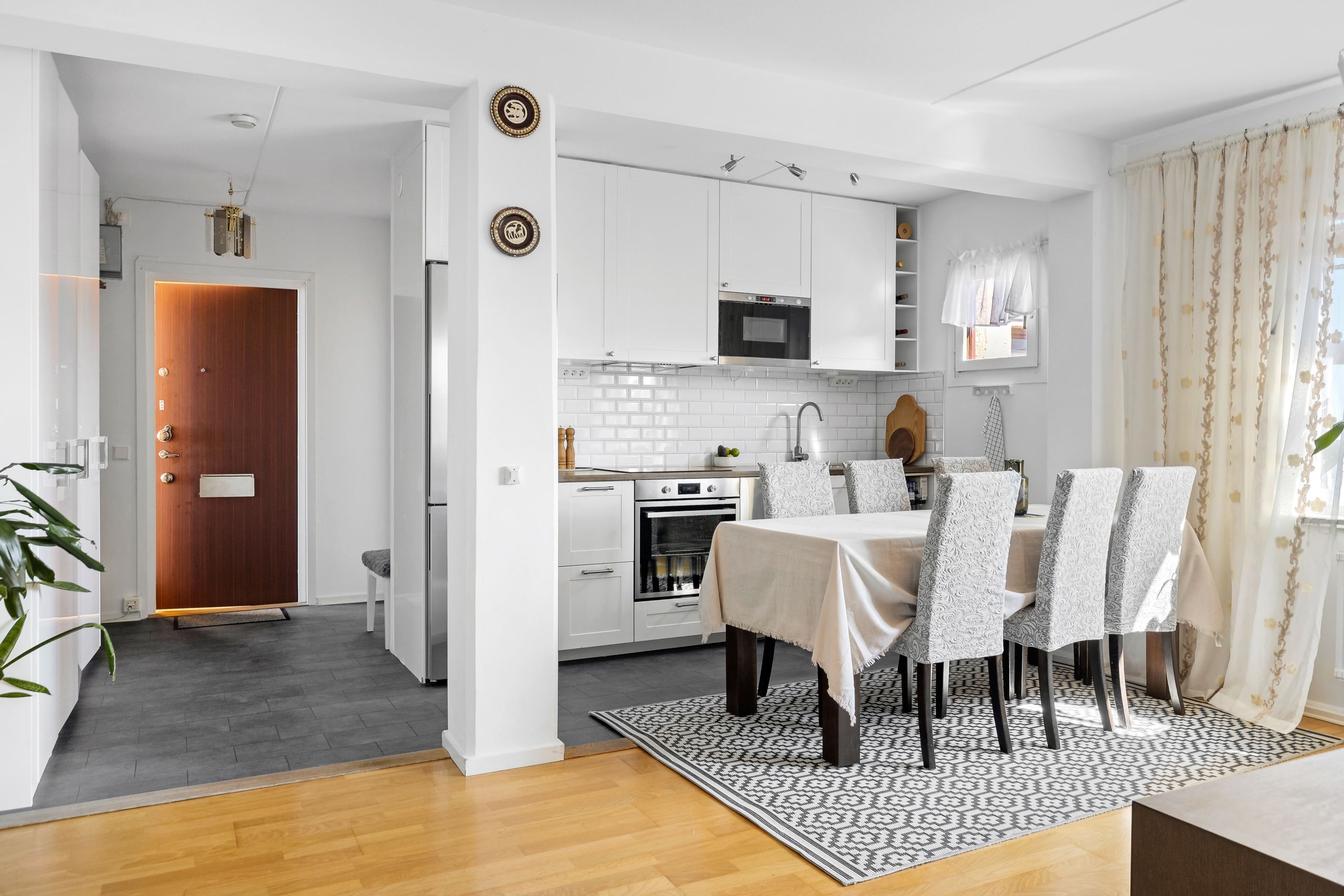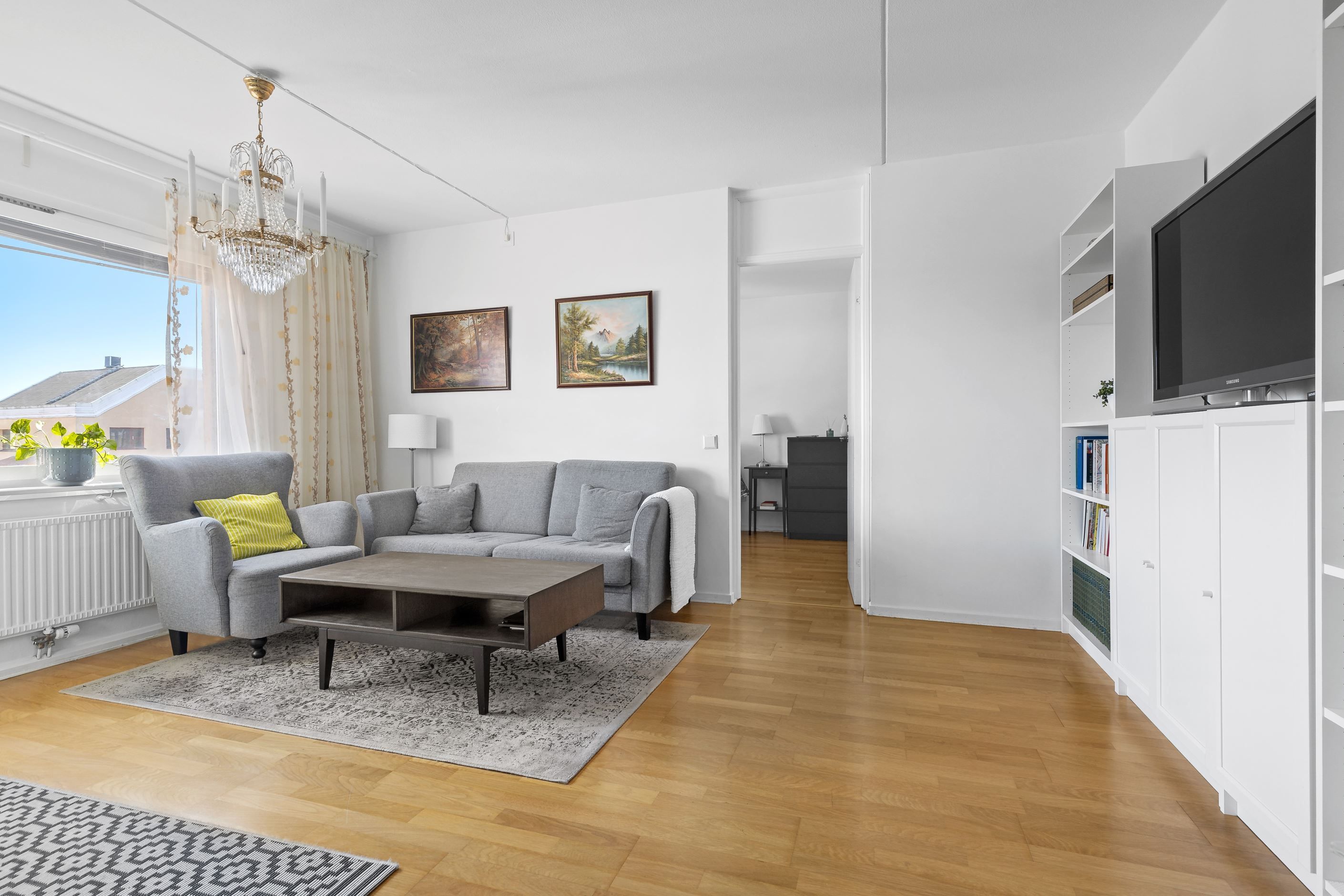 - Här får du en populär och öppen planlösning mellan kök, matplats och vardagsrum med ett snyggt golv och vitmålade väggar. Modernt renoverat kök med integrerade vitvaror och vita luckor. Den sociala planlösningen ger dig flertalet möbleringsalternativ. Högt läge med härlig utsikt och ingen insyn från vardagsrum och sovrum. Stort sovrum som rymmer dubbelsäng och tillhörande sängbord på vardera sida. Praktisk klädkammare som rymmer det mesta. Välkomnande hall med säkerhetsdörr, klinkergolv och flertalet vita garderober. Välbevarat äldre badrum med badkar, vädringsfönster samt plats för tvättmaskin.