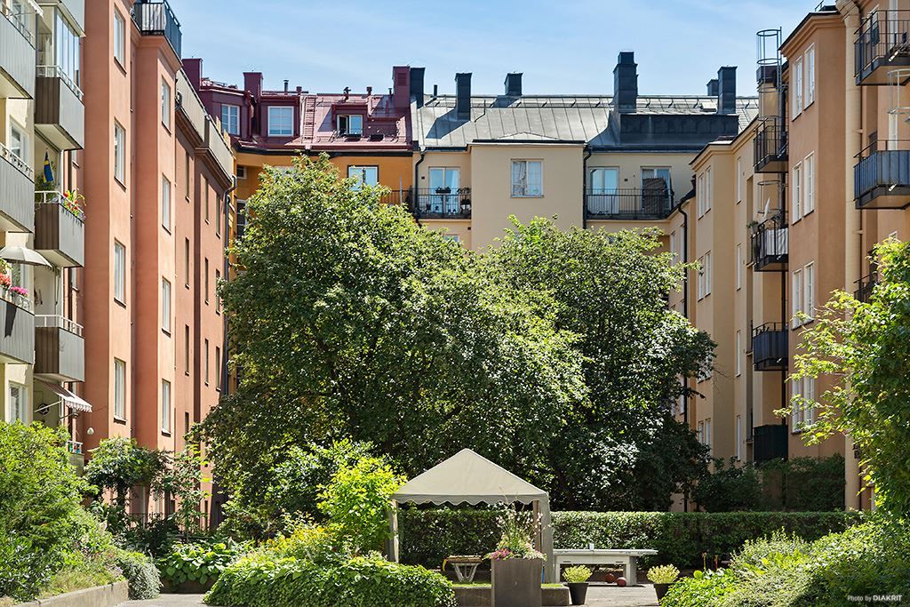 En av bostadens absoluta höjdpunkter är den egna uteplatsen mot den lugna innergården – en riktig Söderpärla där du kan njuta av eftermiddagskaffe, sommarkvällar och grönskan under sommarhalvåret.
