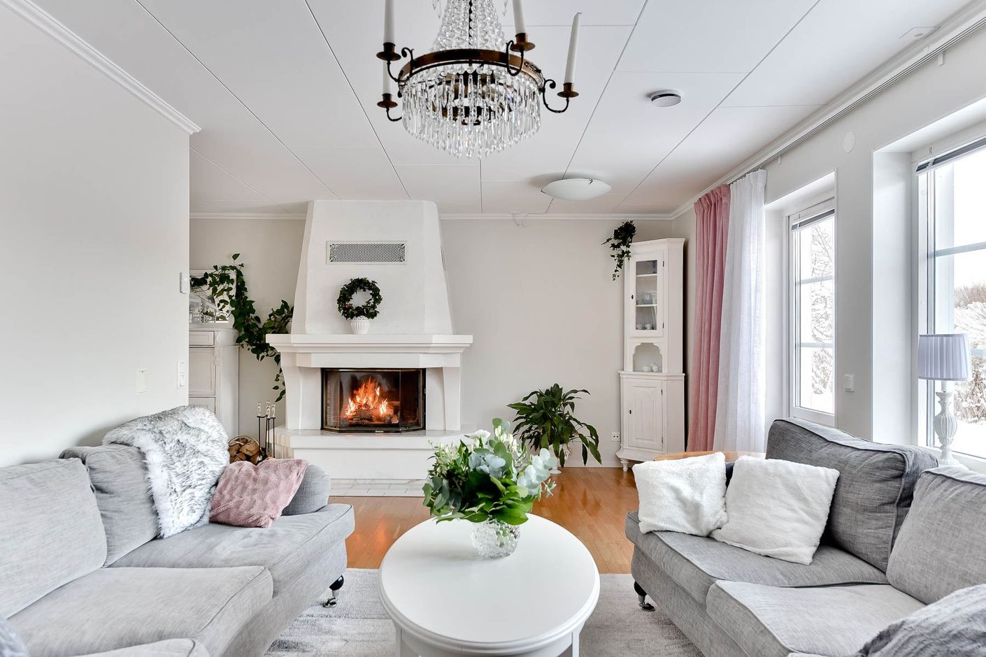 Huset är byggt 1992 i en plan med en bra planlösning med vattenburen golvvärme i hela huset som disponeras genom sociala ytor som kök och vardagsrum i mitten av bostaden. Fyra väl tilltagna sovrum, klädkammare och badrum till höger om entrén med hall och avhängningsmöjligheter. Till höger om köket ligger groventrén med tvätt avdelning, toalett med dusch och bastu samt garage och förråd. På uppfarten finns carport med förrådsutrymme samt med plats för två bilar.