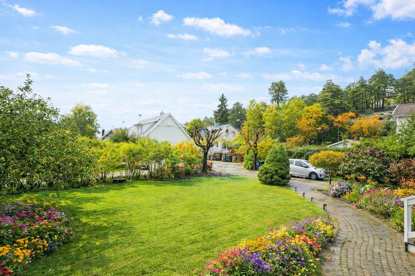 Fastigheten ligger på en stor, solig och grönskande tomt med gott om utrymme för både lek och avkoppling. Här finns plats för barnens spring och bus, samtidigt som du kan anlägga egna odlingar med grönsaker, bär och kryddväxter.