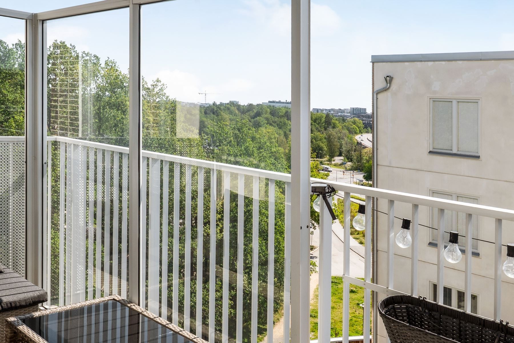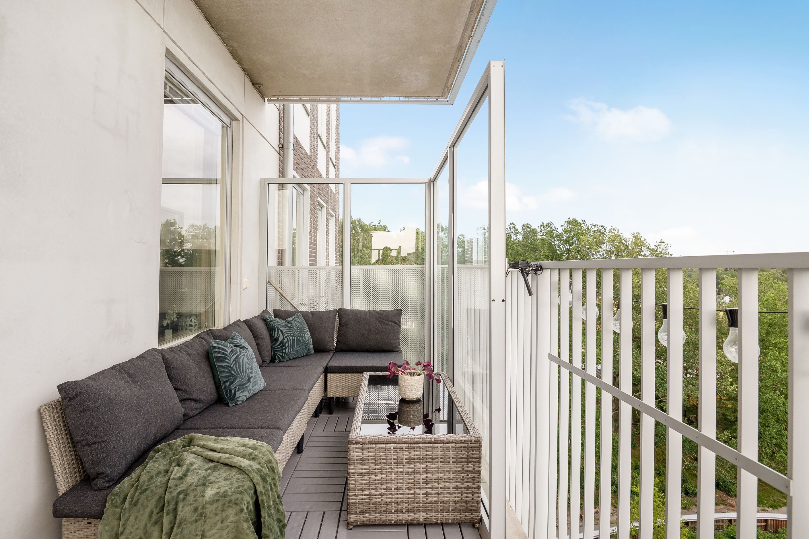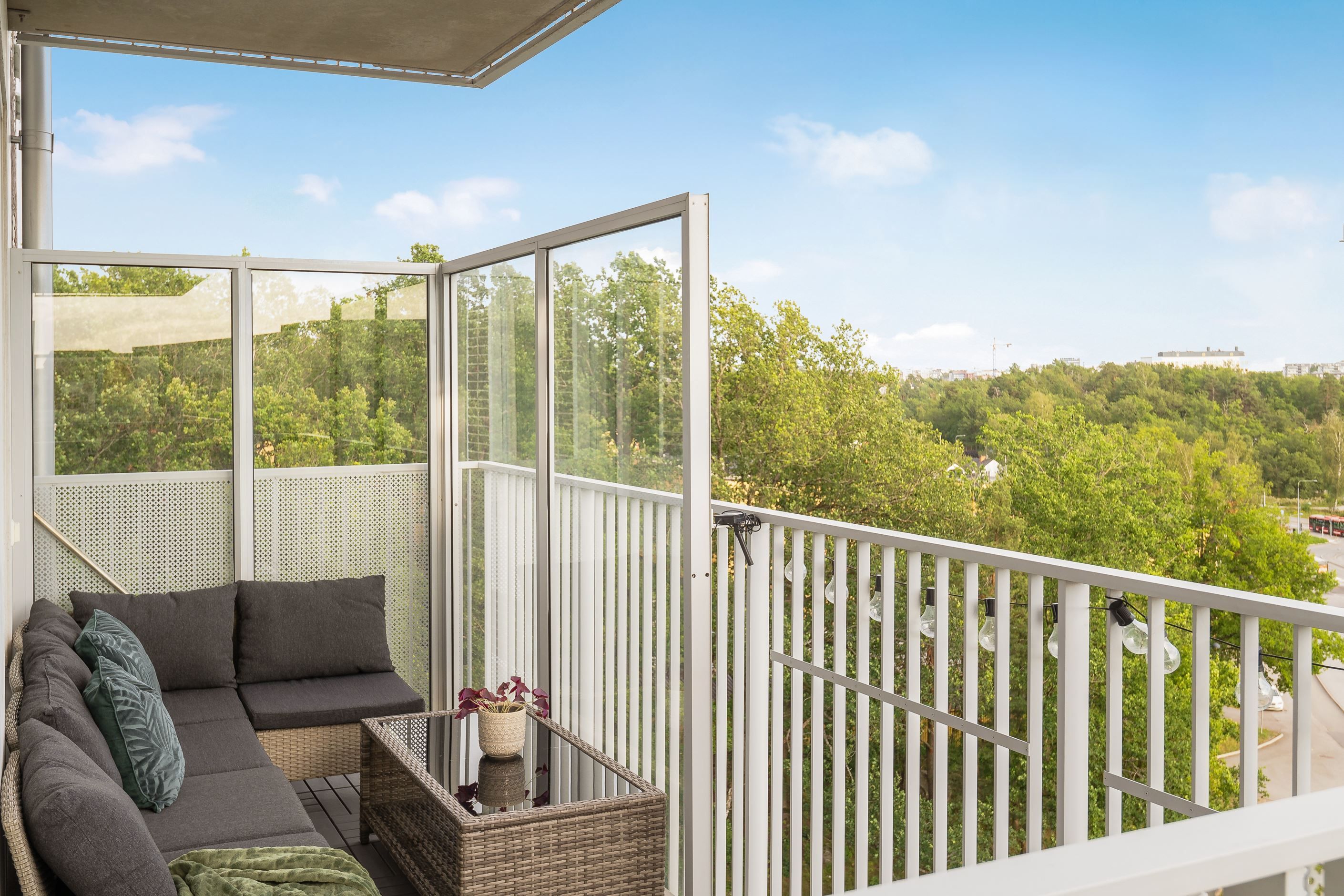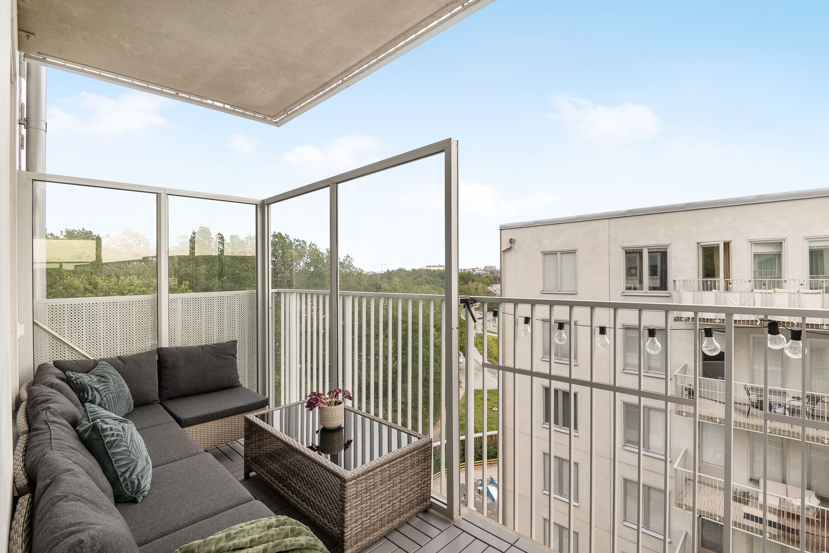 Bostaden håller genomgående hög standard med omsorgsfullt utvalda material. Den härliga balkongen i högt läge bjuder på fin utsikt och soligt söderläge. När kvällen kommer är det bara att tända gasolgrillen och njuta – perfekt för dig som vill leva livet fullt ut!