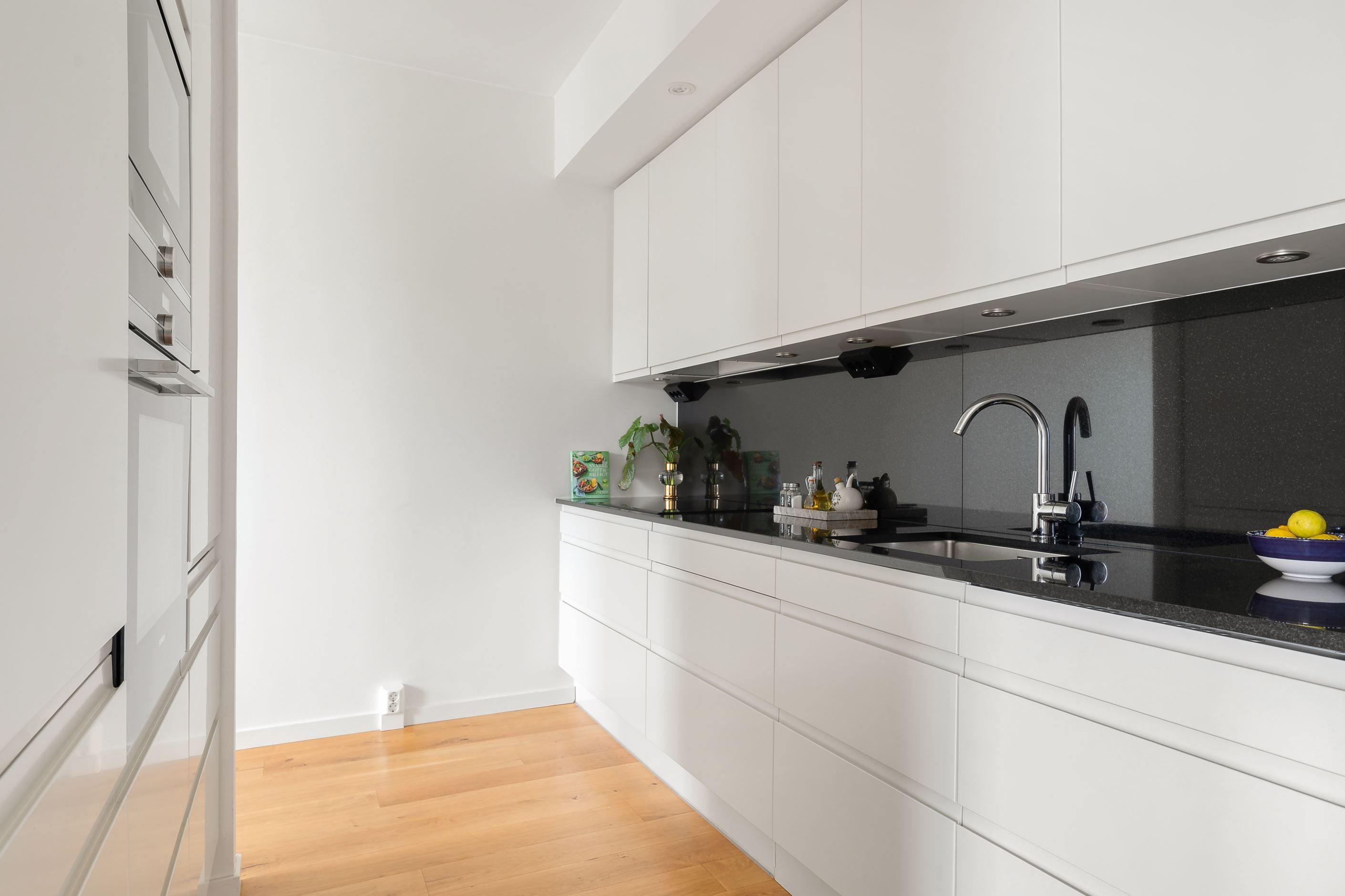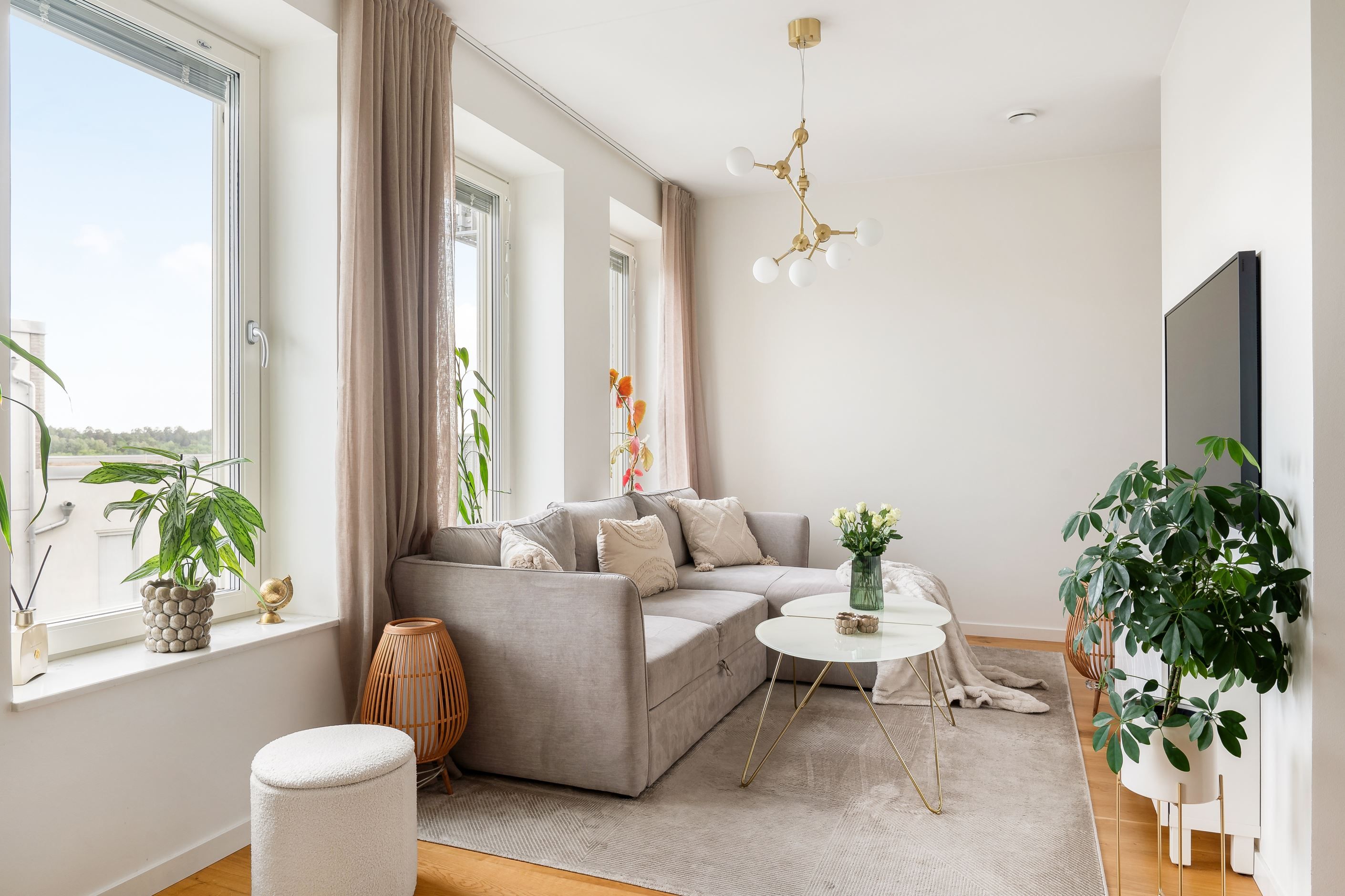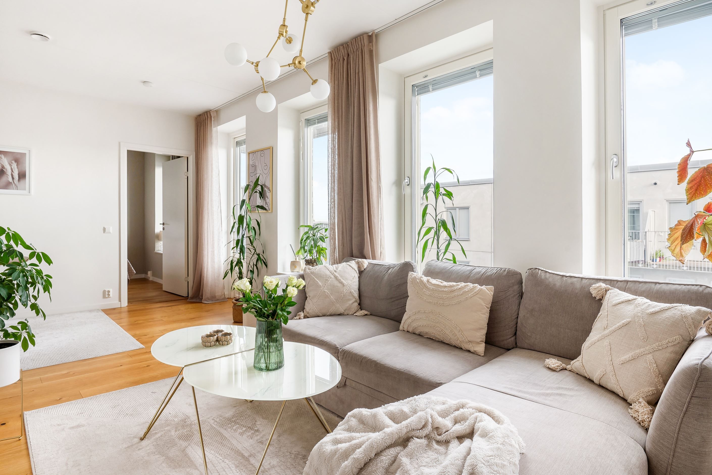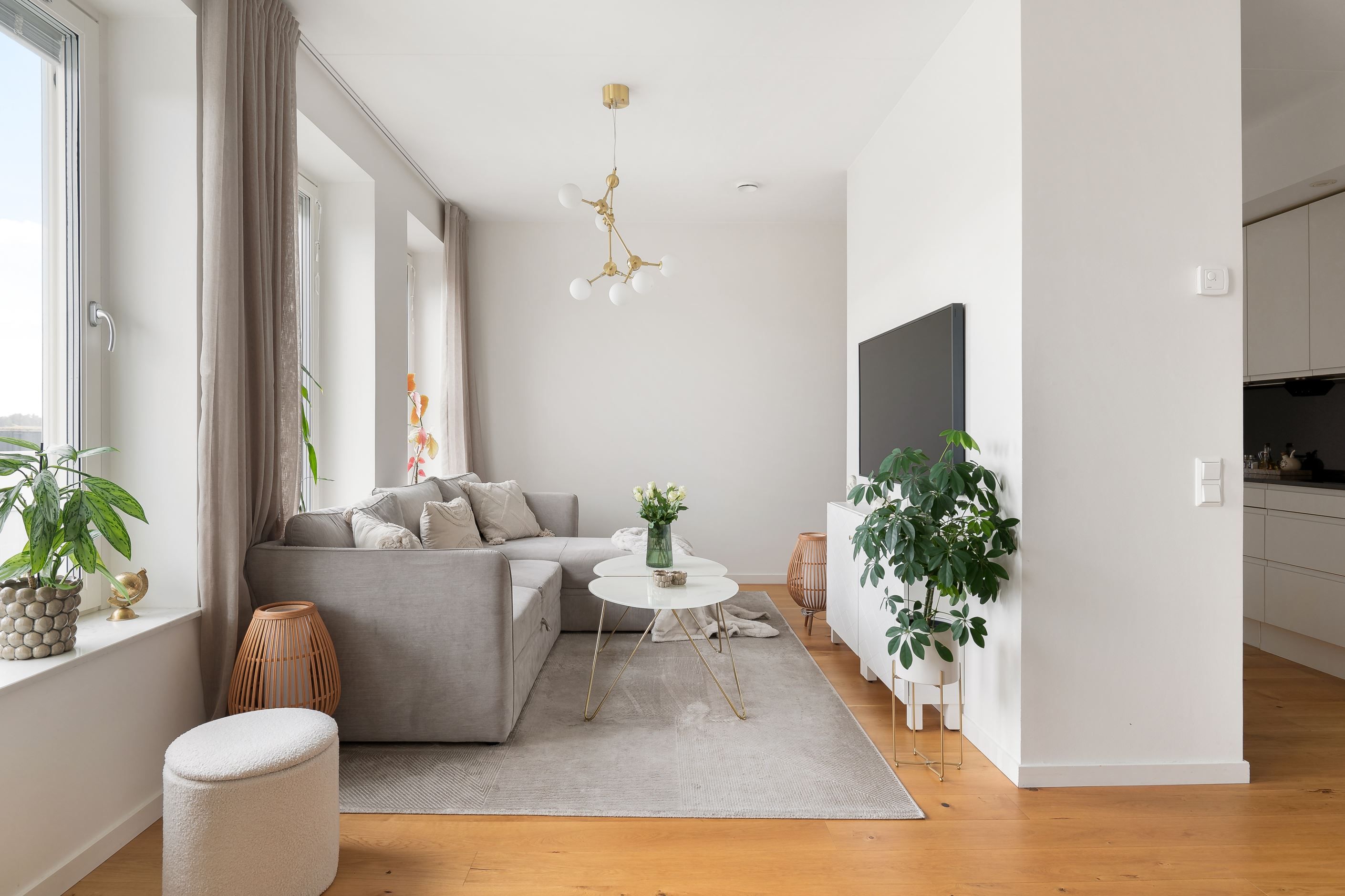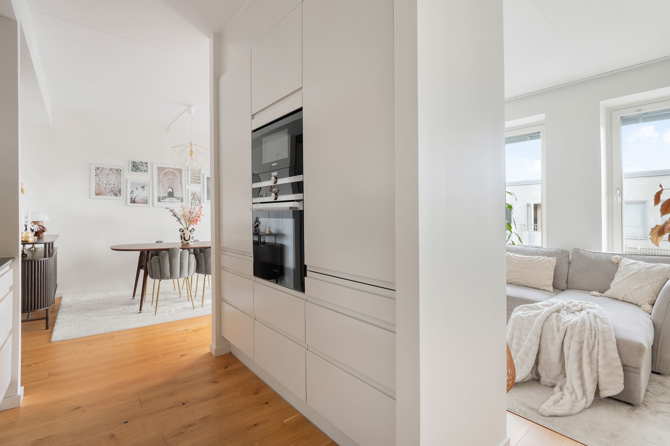 Bostaden håller genomgående hög standard med omsorgsfullt utvalda material. Den härliga balkongen i högt läge bjuder på fin utsikt och soligt söderläge. När kvällen kommer är det bara att tända gasolgrillen och njuta – perfekt för dig som vill leva livet fullt ut!