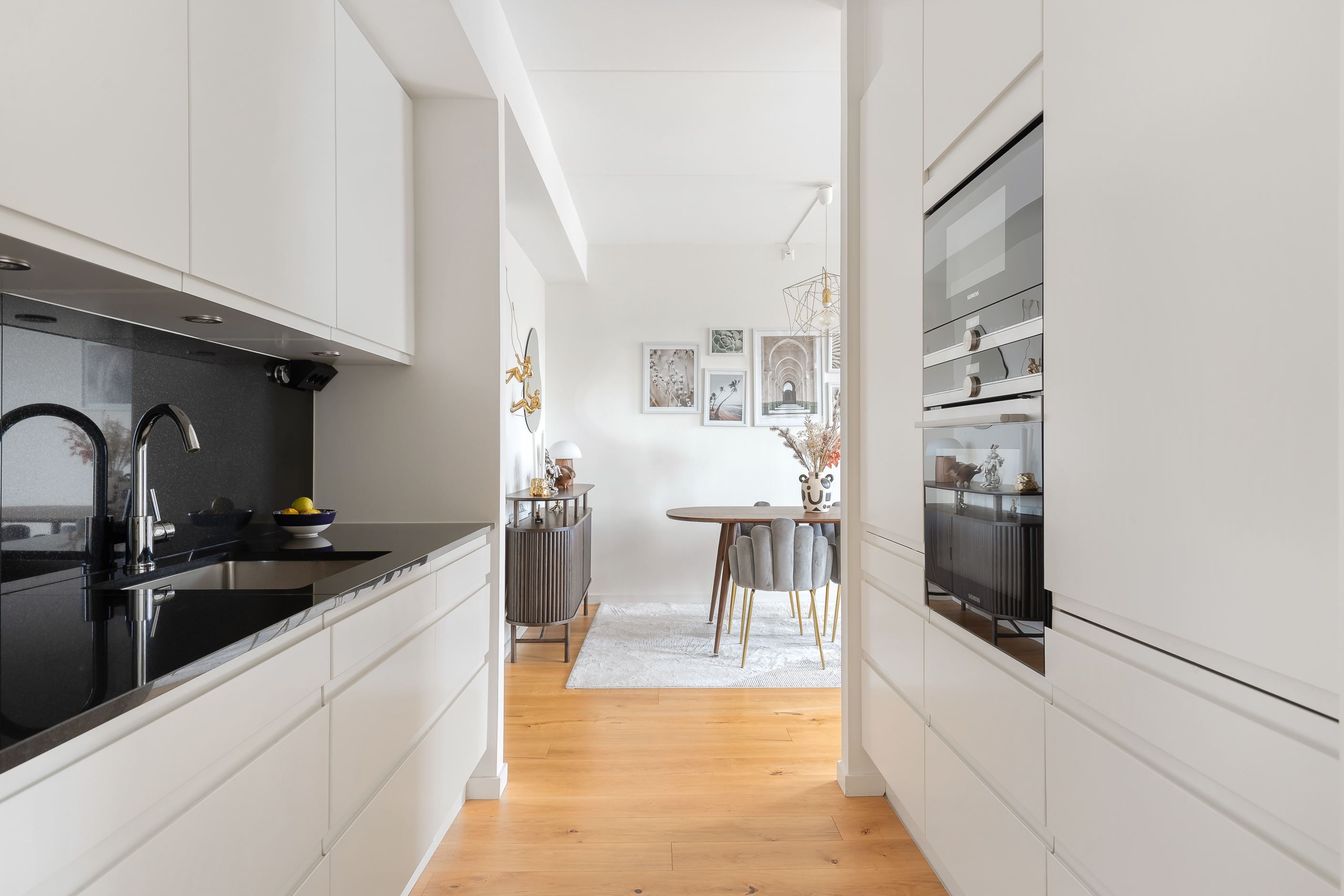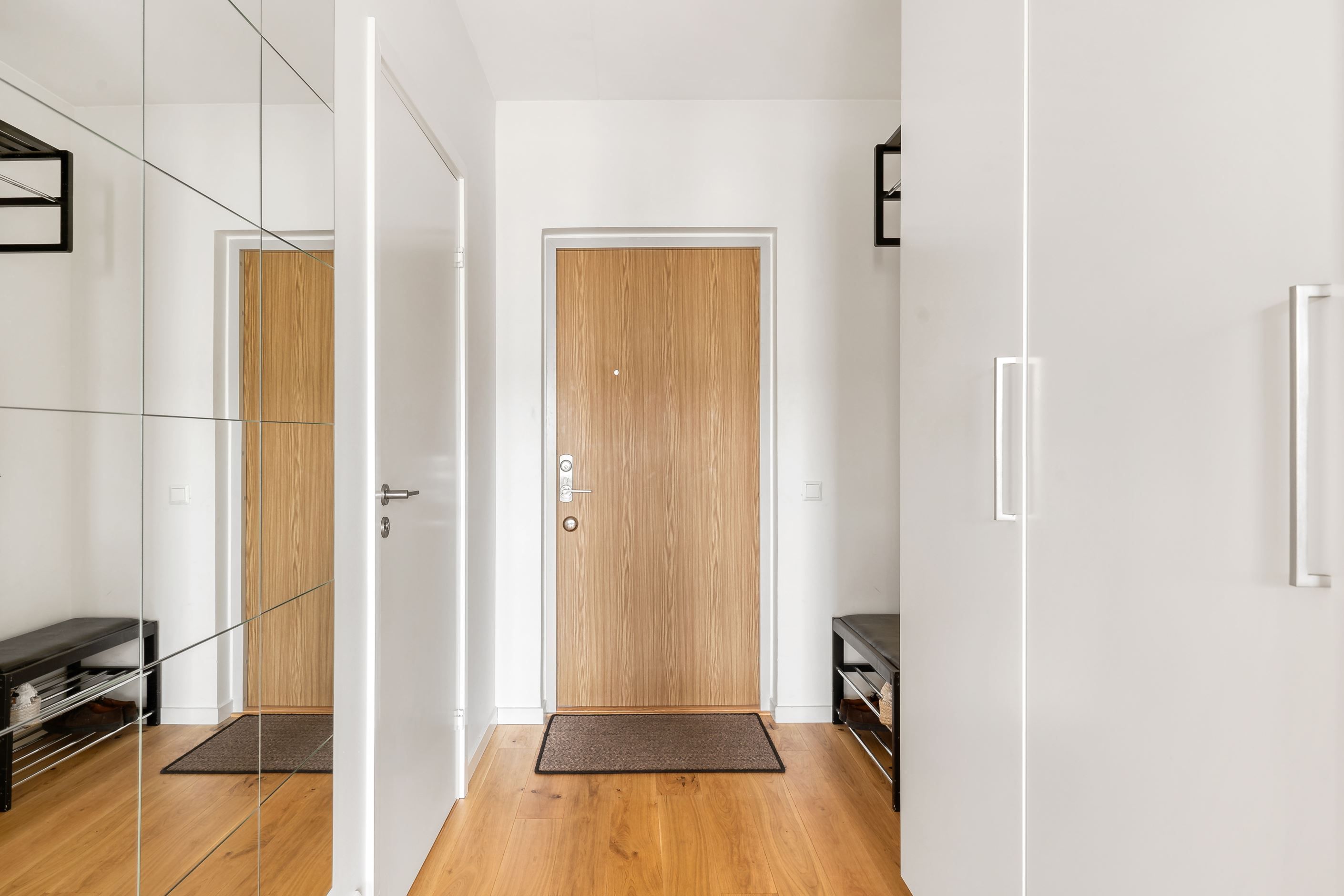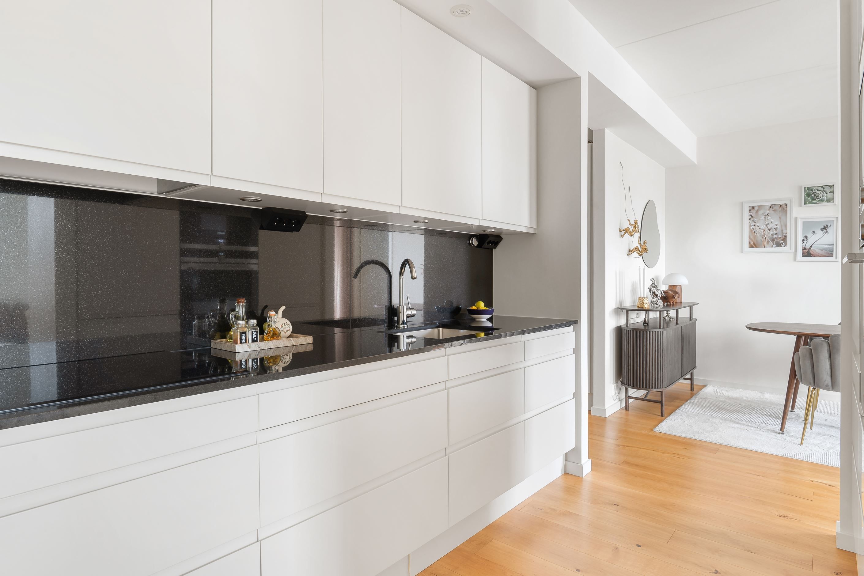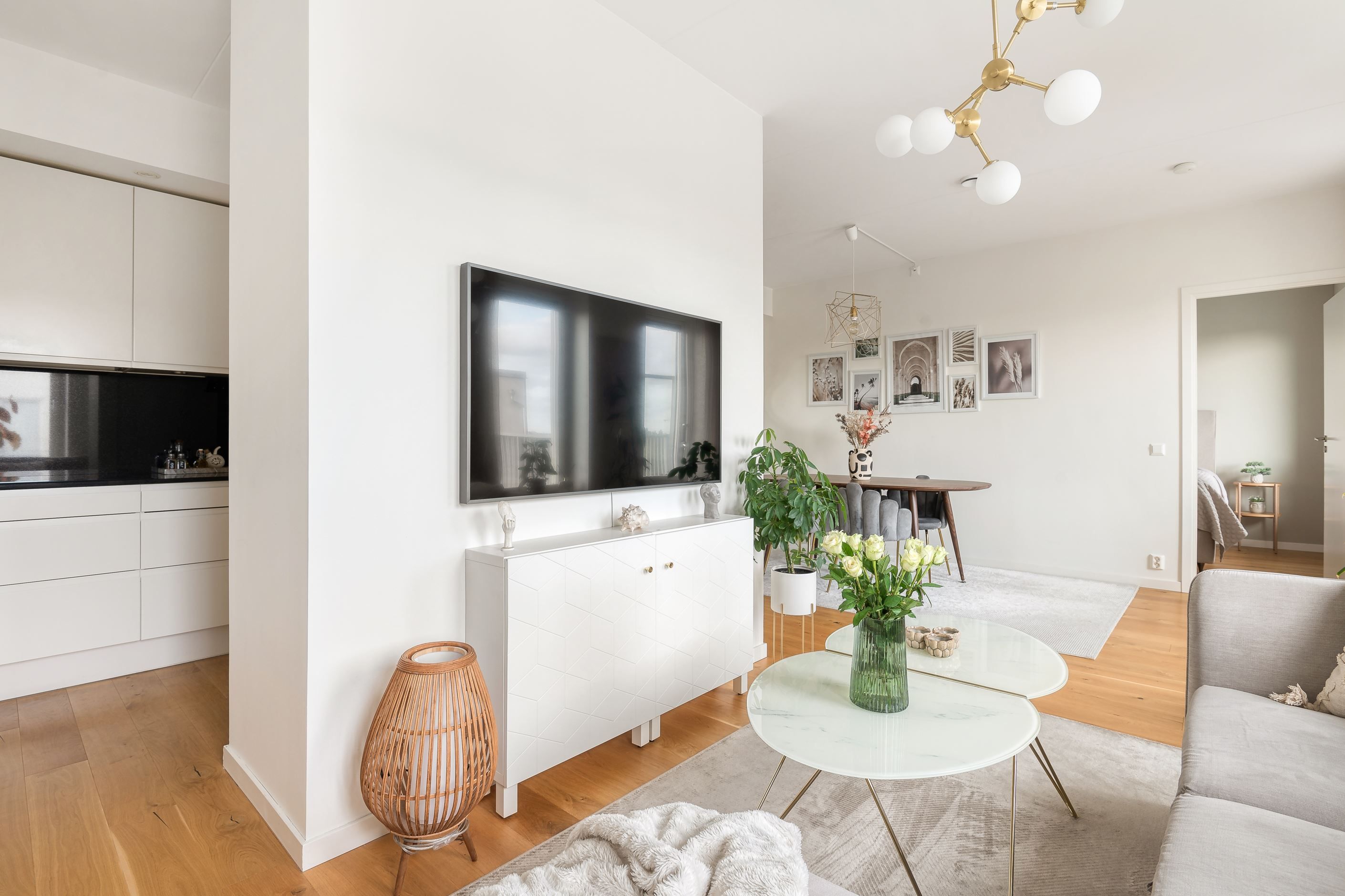 Bostaden håller genomgående hög standard med omsorgsfullt utvalda material. Den härliga balkongen i högt läge bjuder på fin utsikt och soligt söderläge. När kvällen kommer är det bara att tända gasolgrillen och njuta – perfekt för dig som vill leva livet fullt ut!
