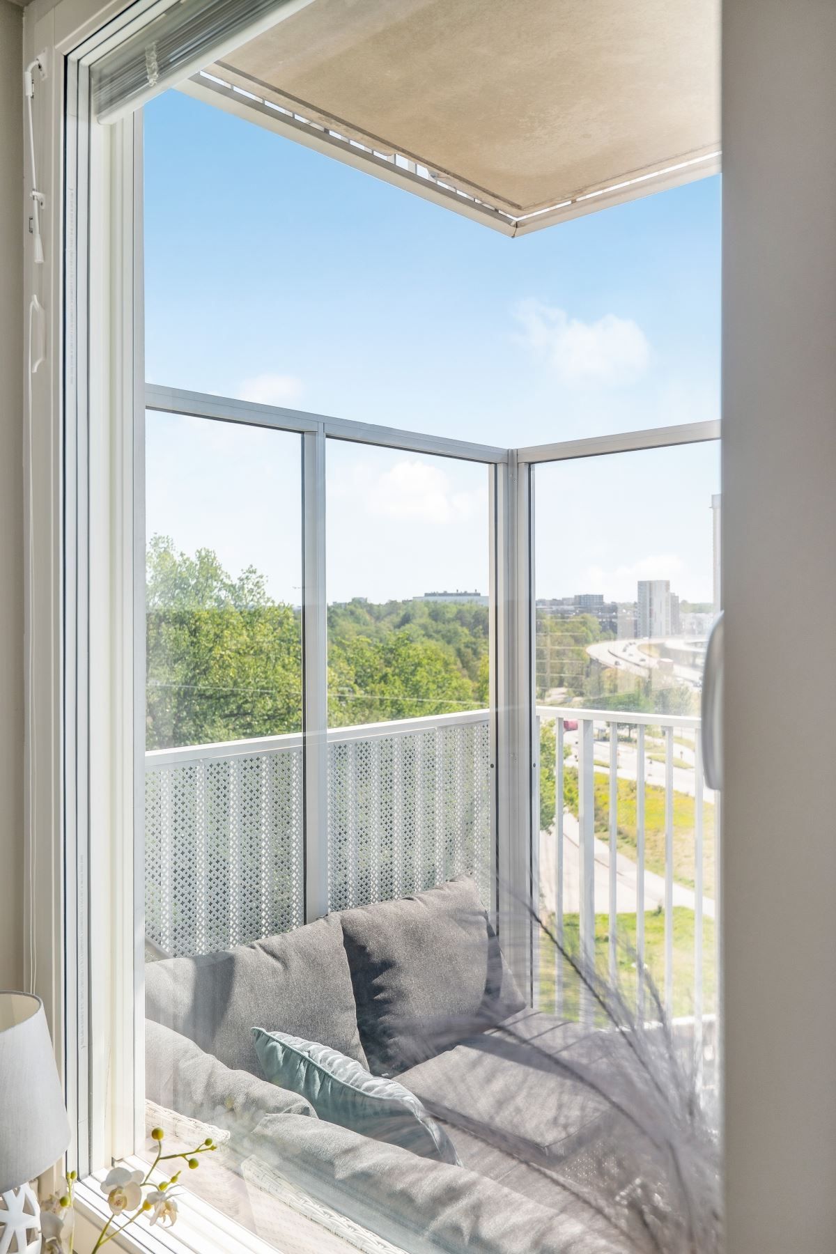 Bostaden håller genomgående hög standard med omsorgsfullt utvalda material. Den härliga balkongen i högt läge bjuder på fin utsikt och soligt söderläge. När kvällen kommer är det bara att tända gasolgrillen och njuta – perfekt för dig som vill leva livet fullt ut!