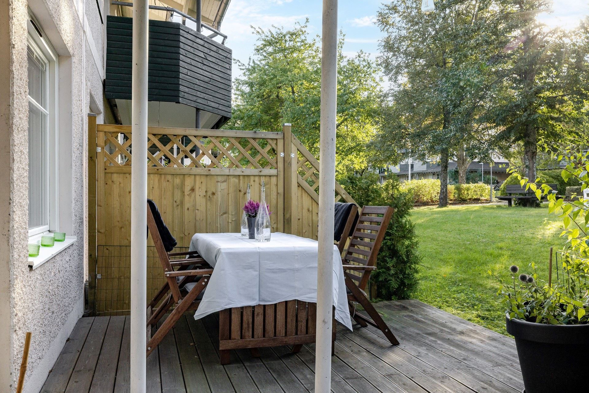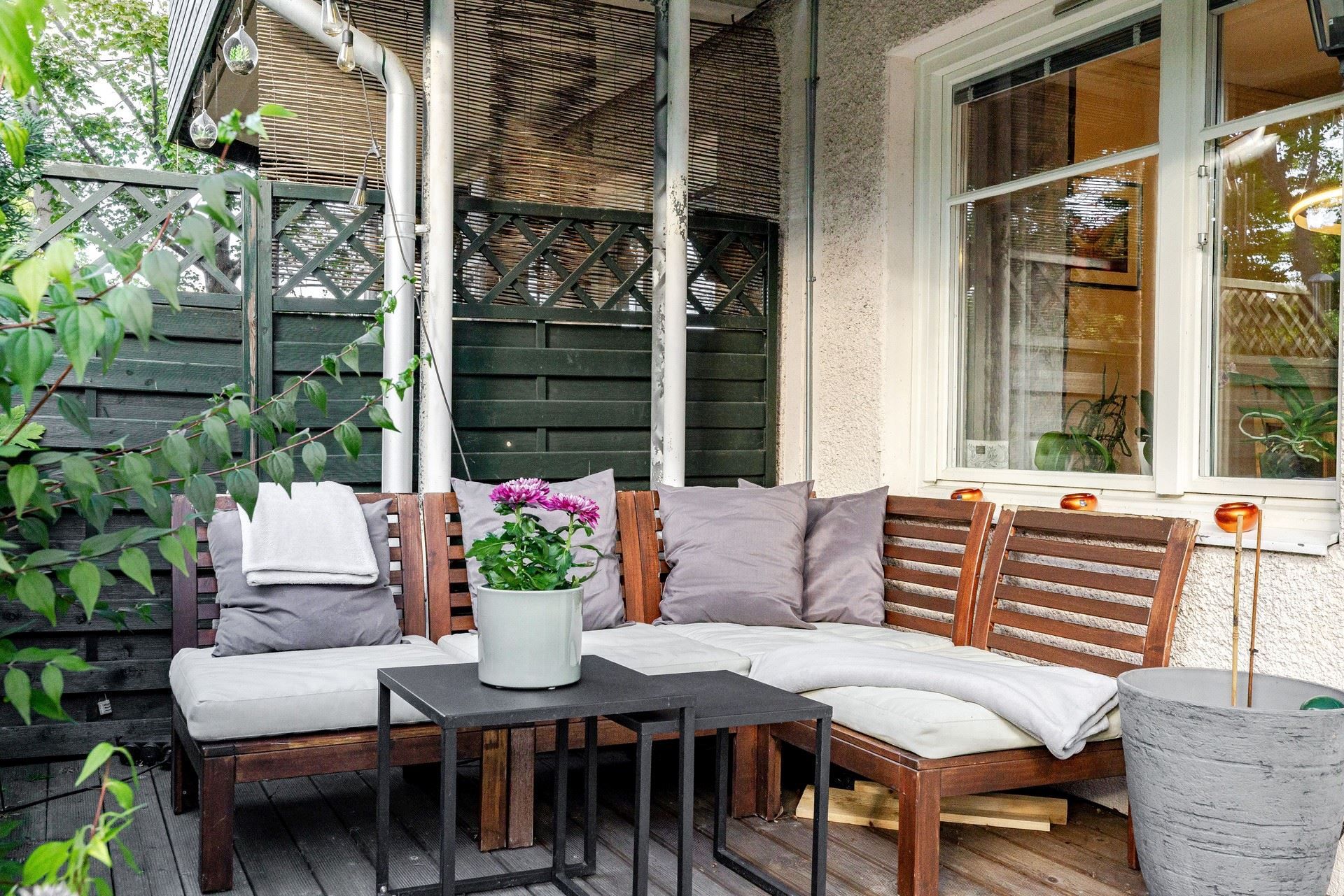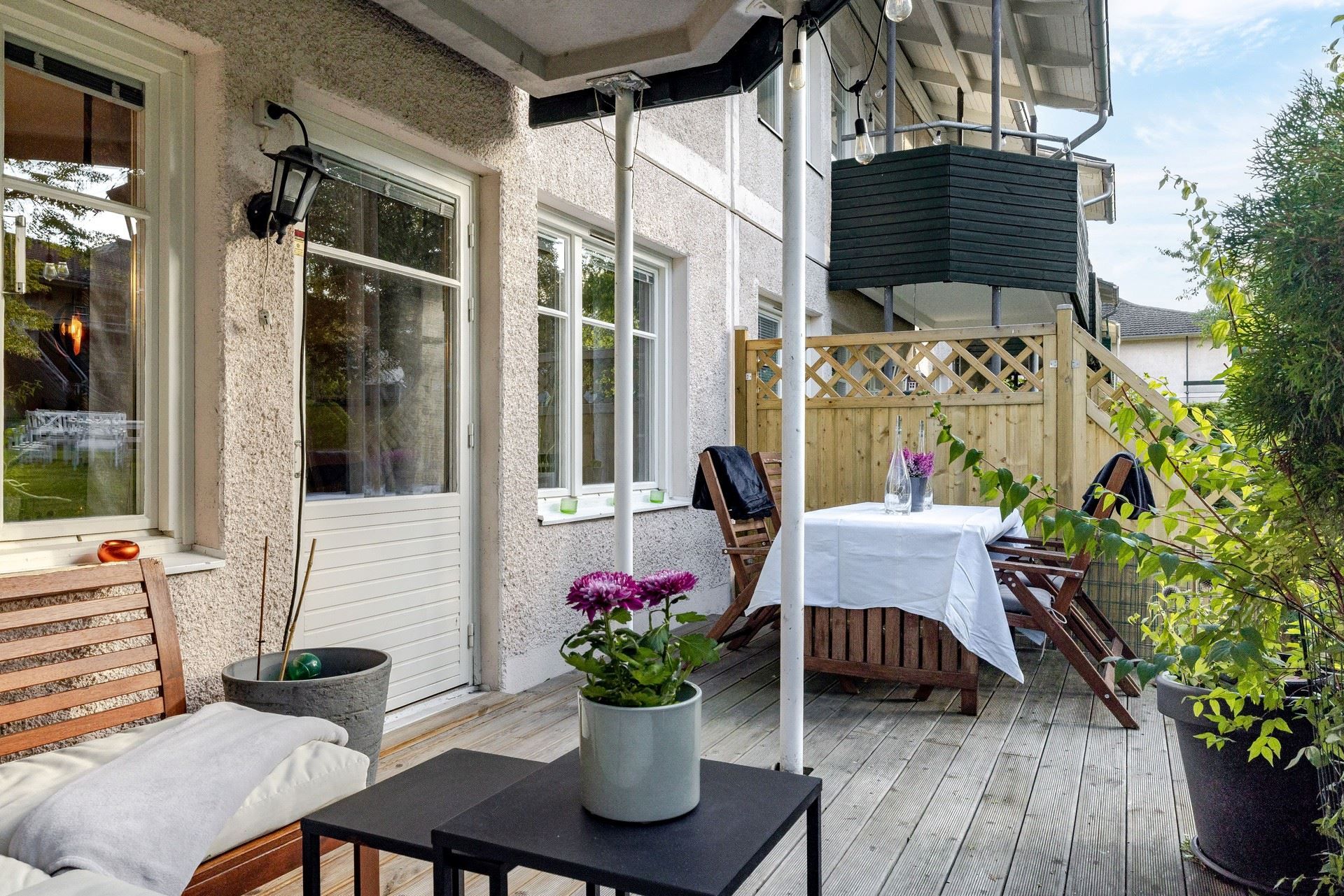 Varmt välkommen till en välrenoverad 2:a på markplan med egen entré och två stora uteplatser. Här erbjuds en social öppen planlösning mellan kök, matplats och vardagsrum. Från vardagsrummet ansluter en väl tilltagen altan i perfekt västerläge med utrymme för både soffgrupp och matplats. I anslutning till entrén finns även en stenlagd uteplats och ett kallförråd.