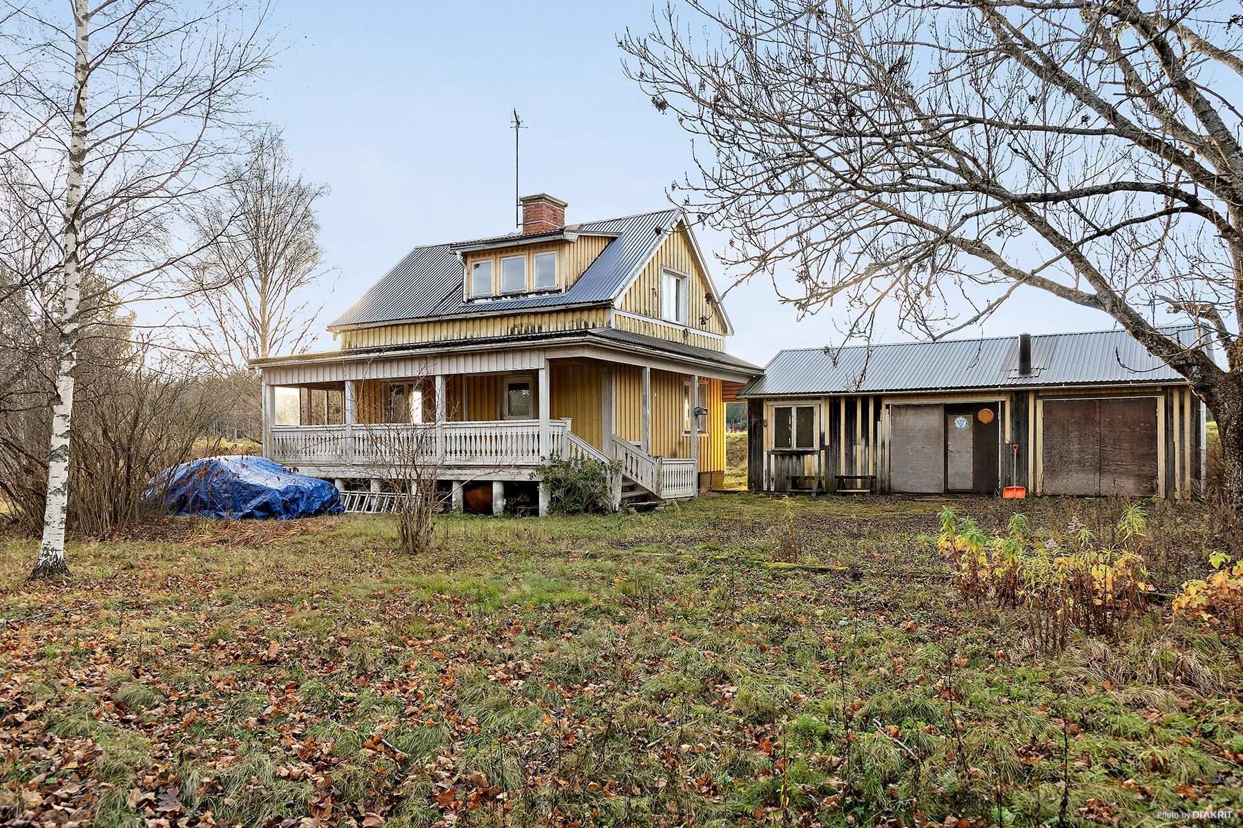 Här finns även ett praktiskt dubbelgarage med goda arbetsytor. I garaget finns virke och färg som kommer att räcka till stora delar av fasaden.