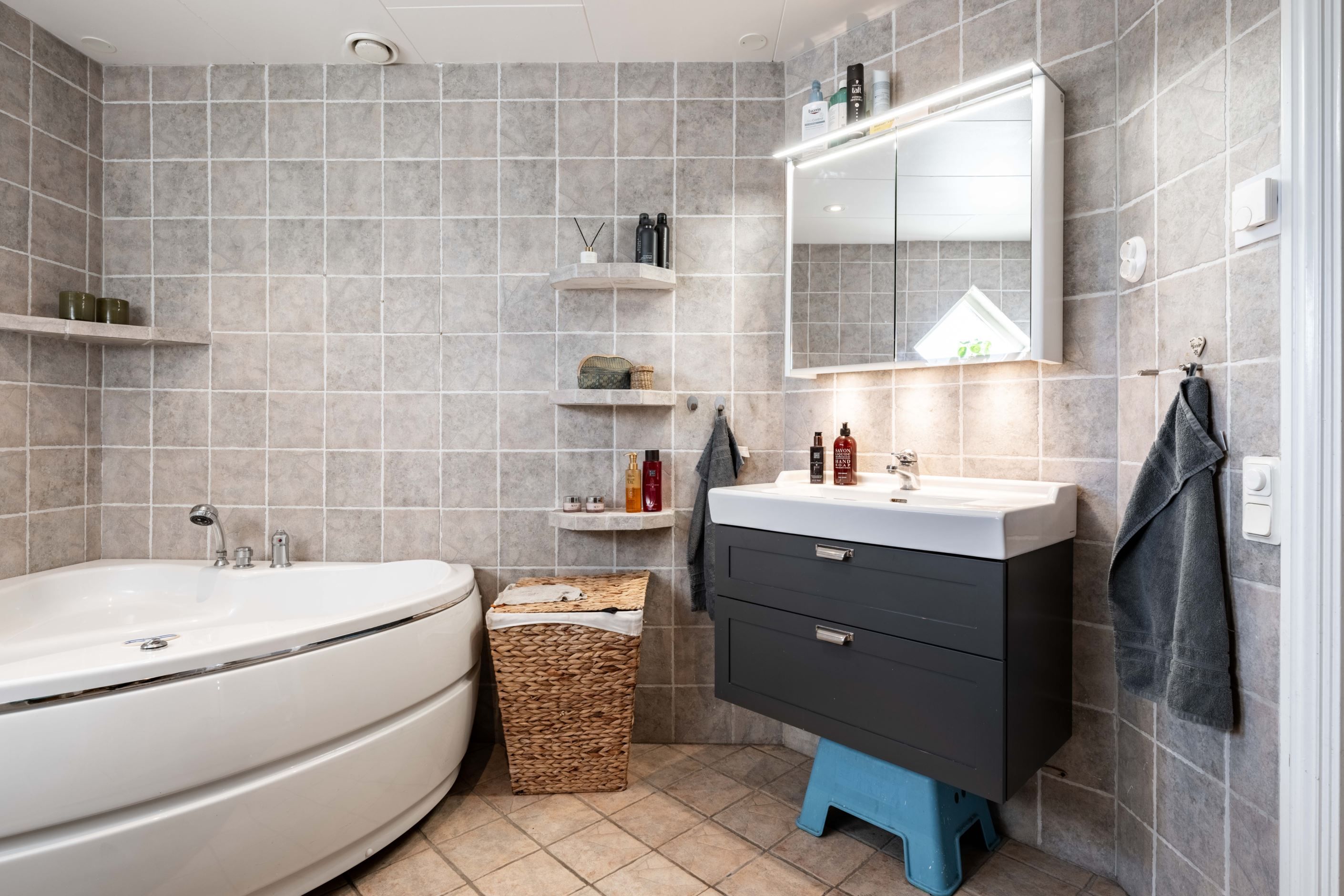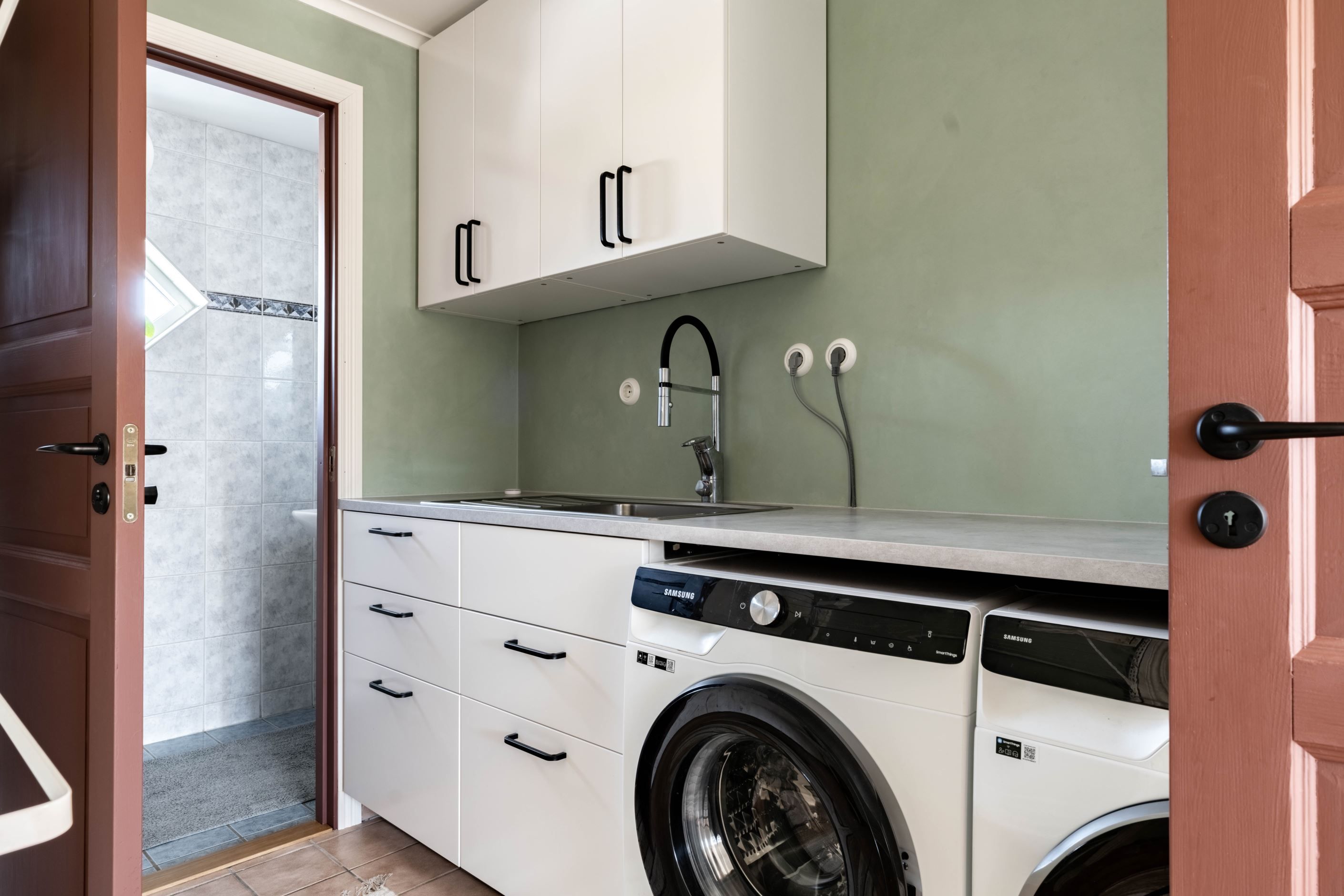 Tvättstugan är renoverad med nya maskiner och som en extra bonus byttes frånluftsvärmepumpen så sent som 2023.