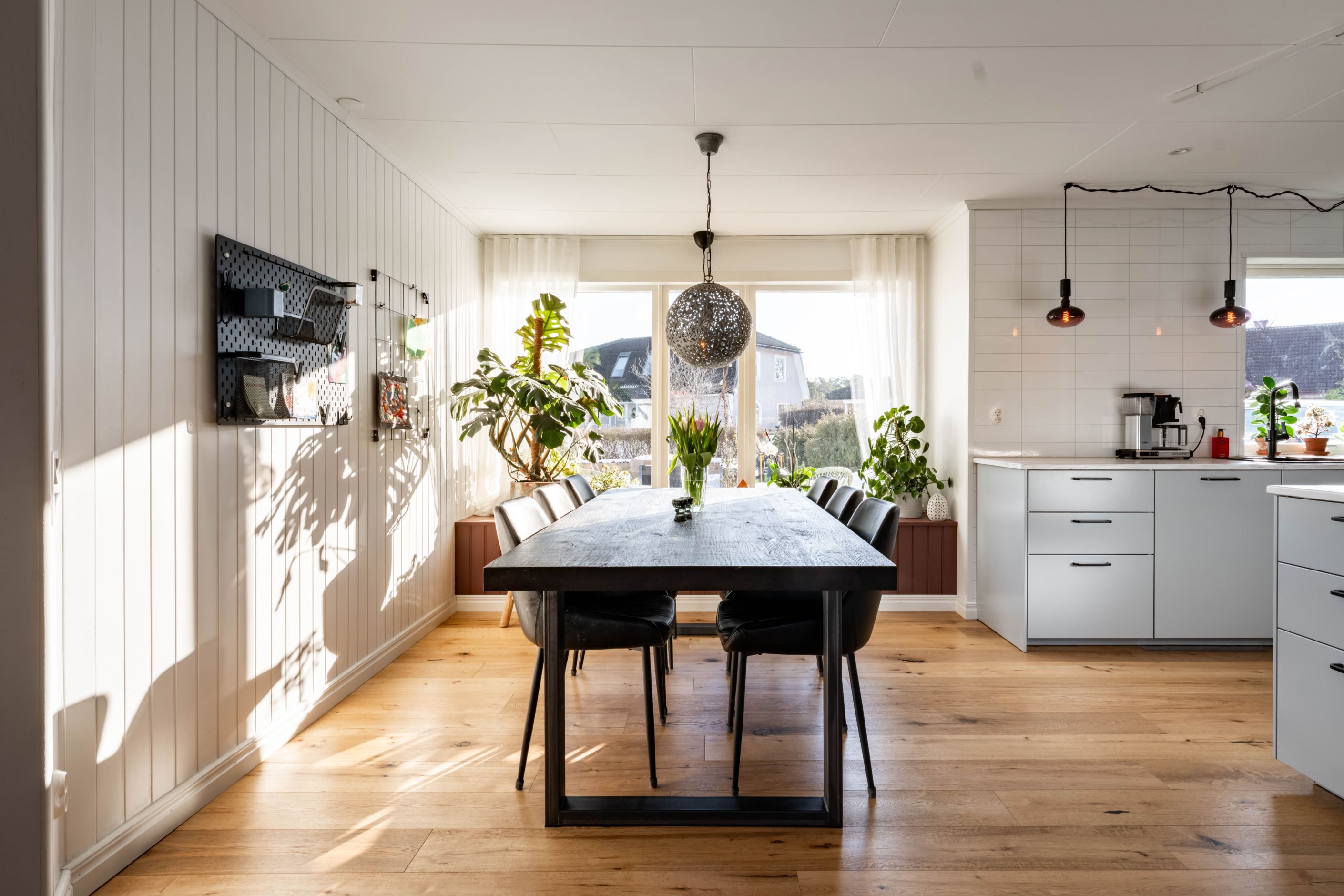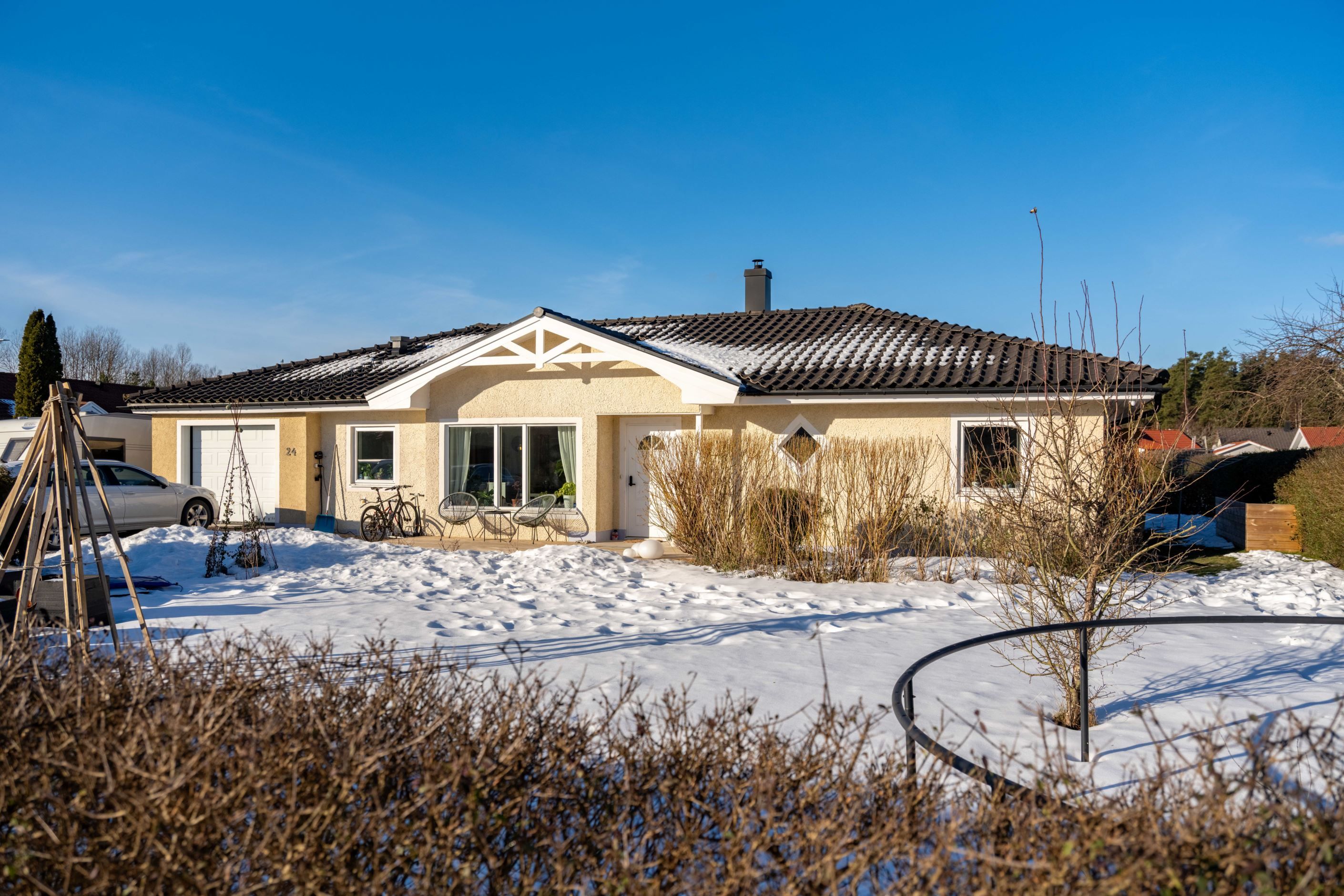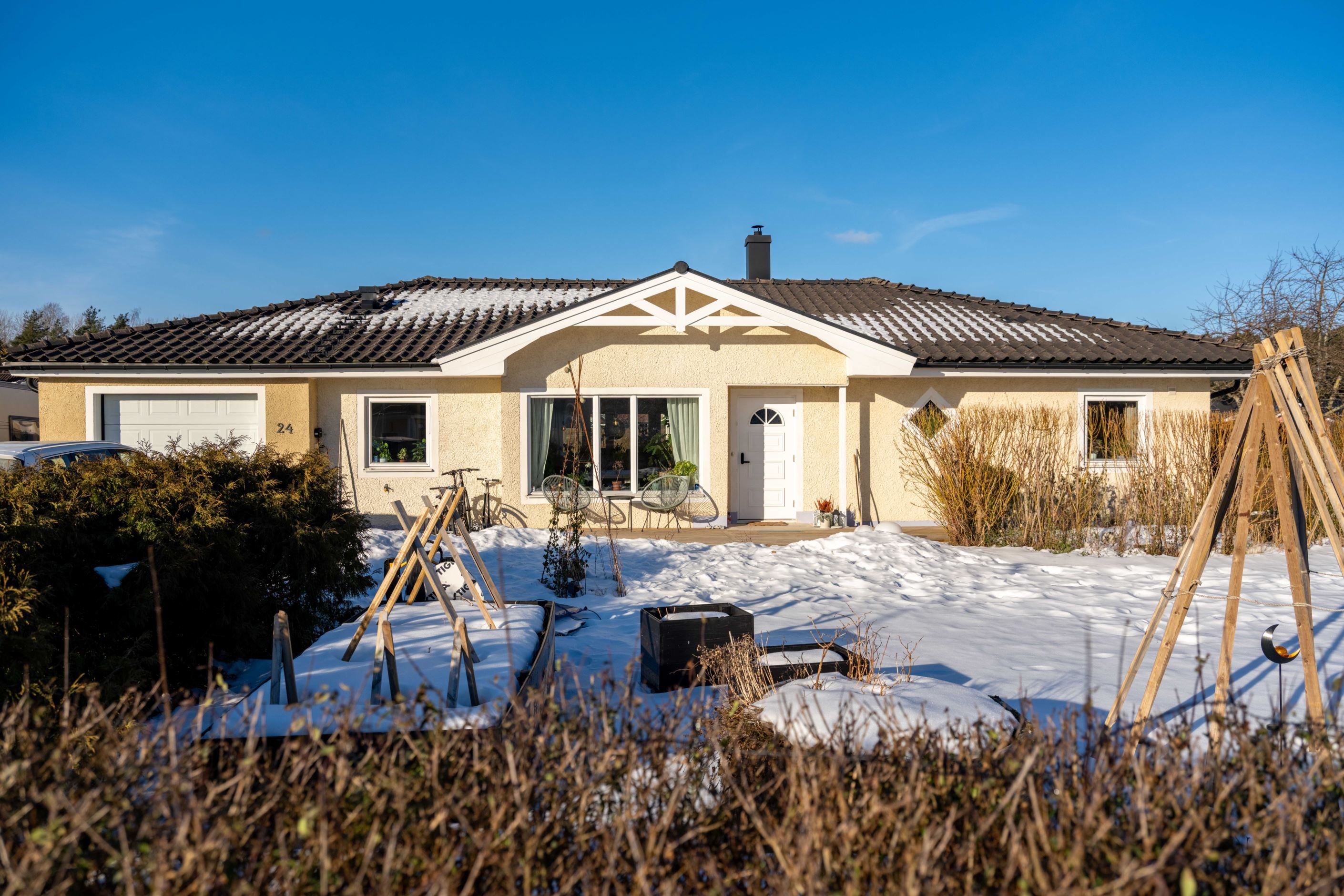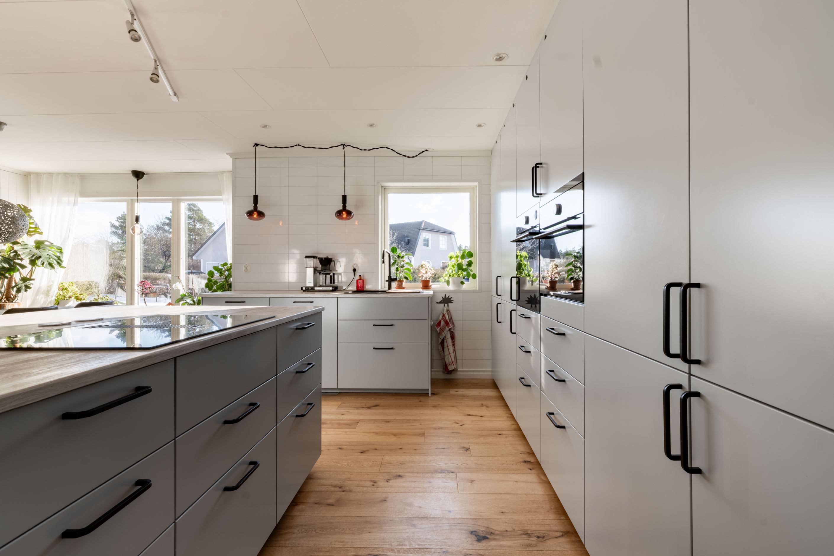 Denna härliga enplansvilla har under de senaste två åren genomgått en omfattande renovering där helheten stått i fokus. Planlösningen har öppnats upp för att skapa ljus, rymd och fina ytor att vara på. Ett helt nytt kök har byggts – modernt, mycket förvaring och snyggt – med en generös köksö som har bred häll med inbyggd fläkt. Vid fönstret finns en platsbyggd kökssoffa som både rymmer smart förvaring och som kan bli en självklar favoritplats för morgonkaffet.