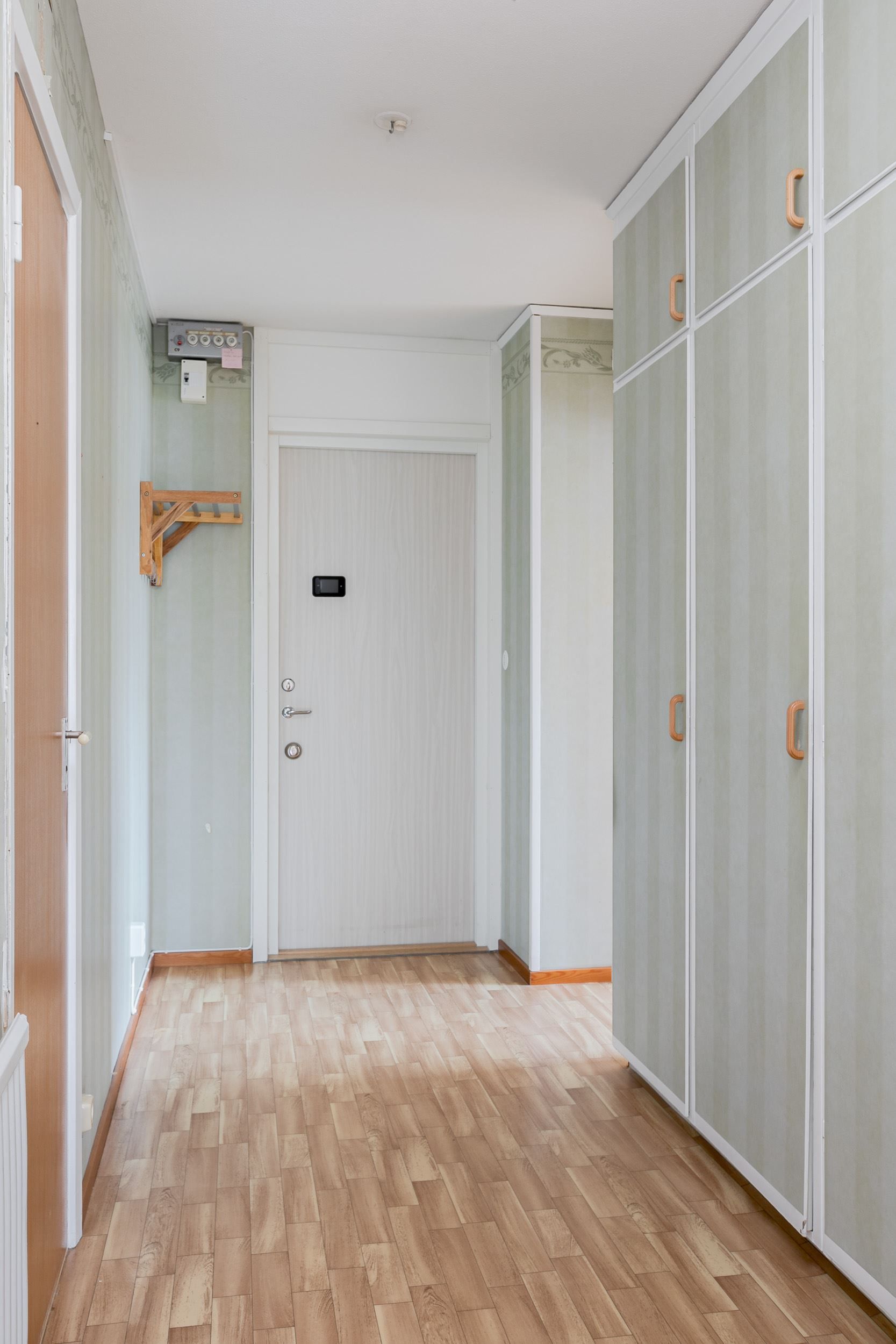 Här möts ni av en genomtänkt planlösning med två rymliga sovrum, ett generöst vardagsrum, idag med två platsbyggda garderober som fungerar som rumsavdelare men de går att ta bort beroende på hur man vill nyttja lägenheten. Ett fullstort och funktionellt kök med en precis nyinköpt spis samt ett stilrent helkaklat badrum plus en inglasad större balkong på den populära sidan mot innergården som blir betydligt svalare sommartid än balkongerna på baksidan.