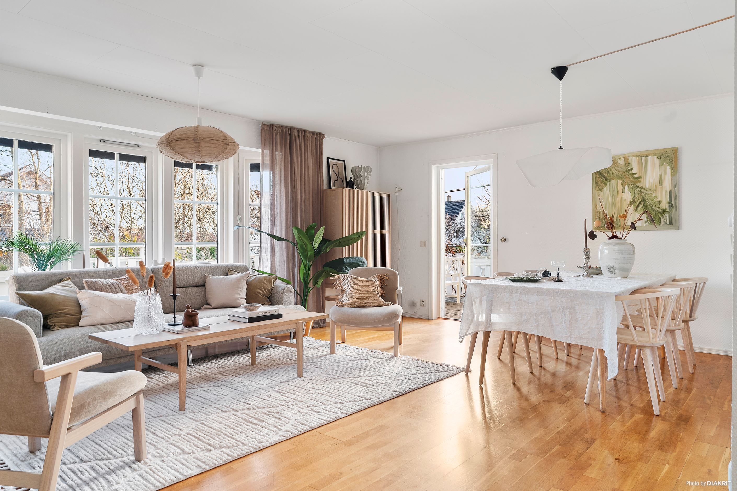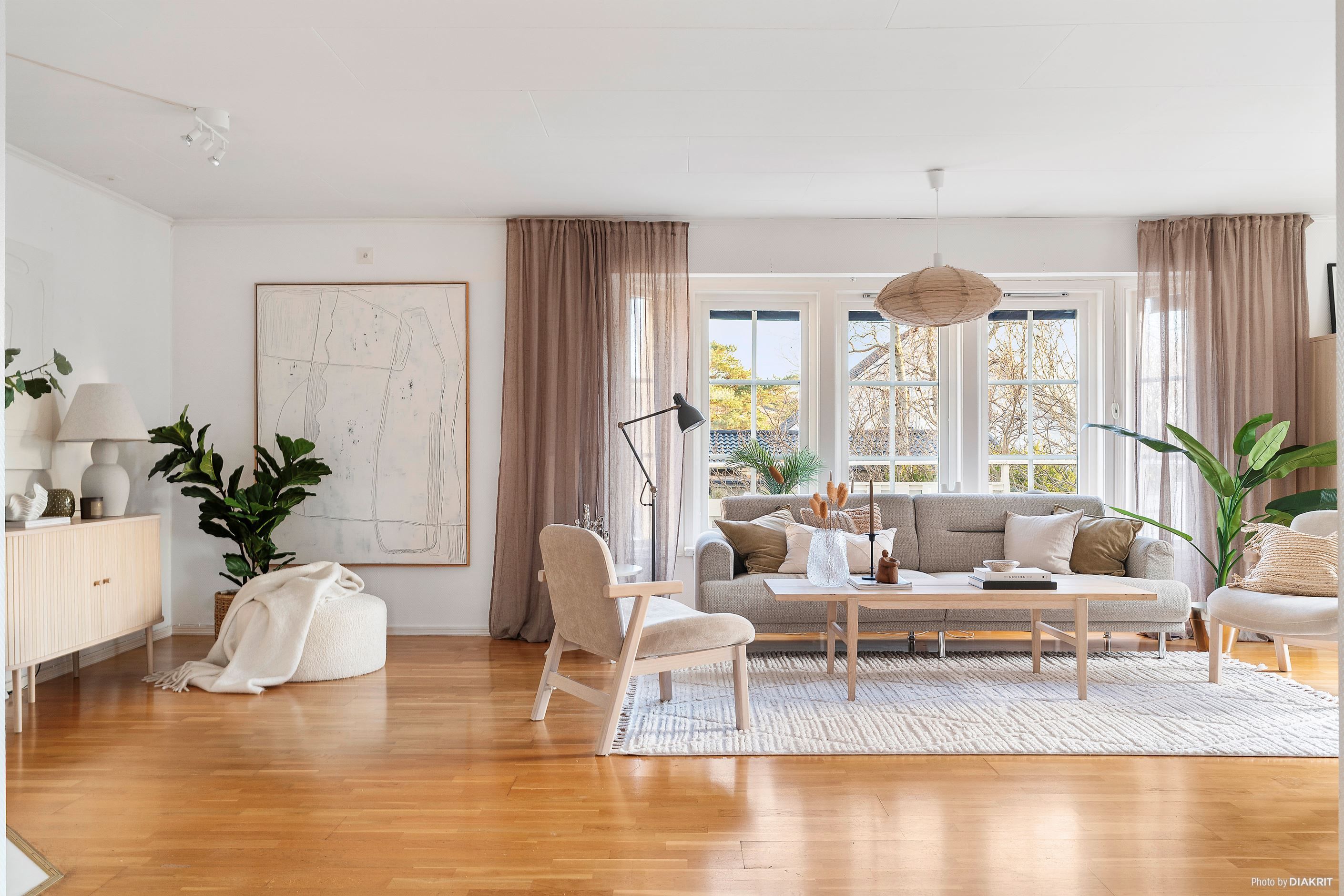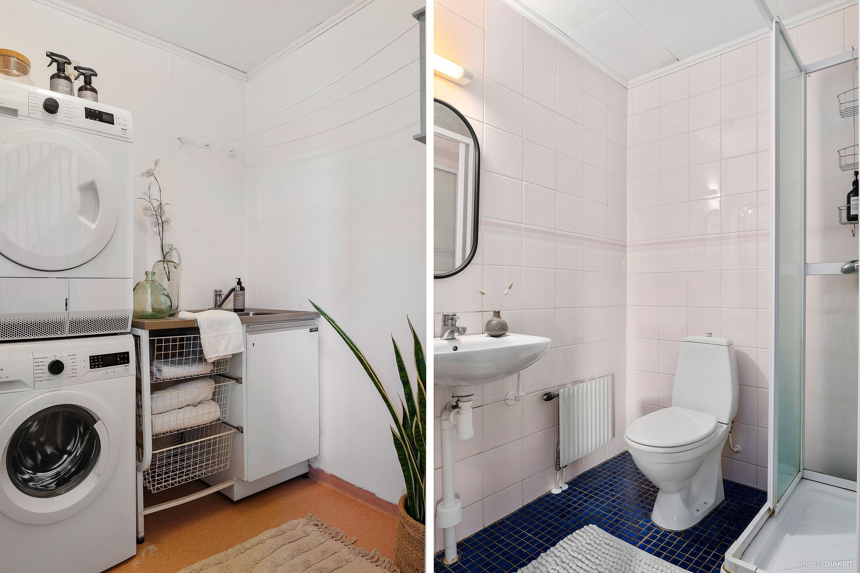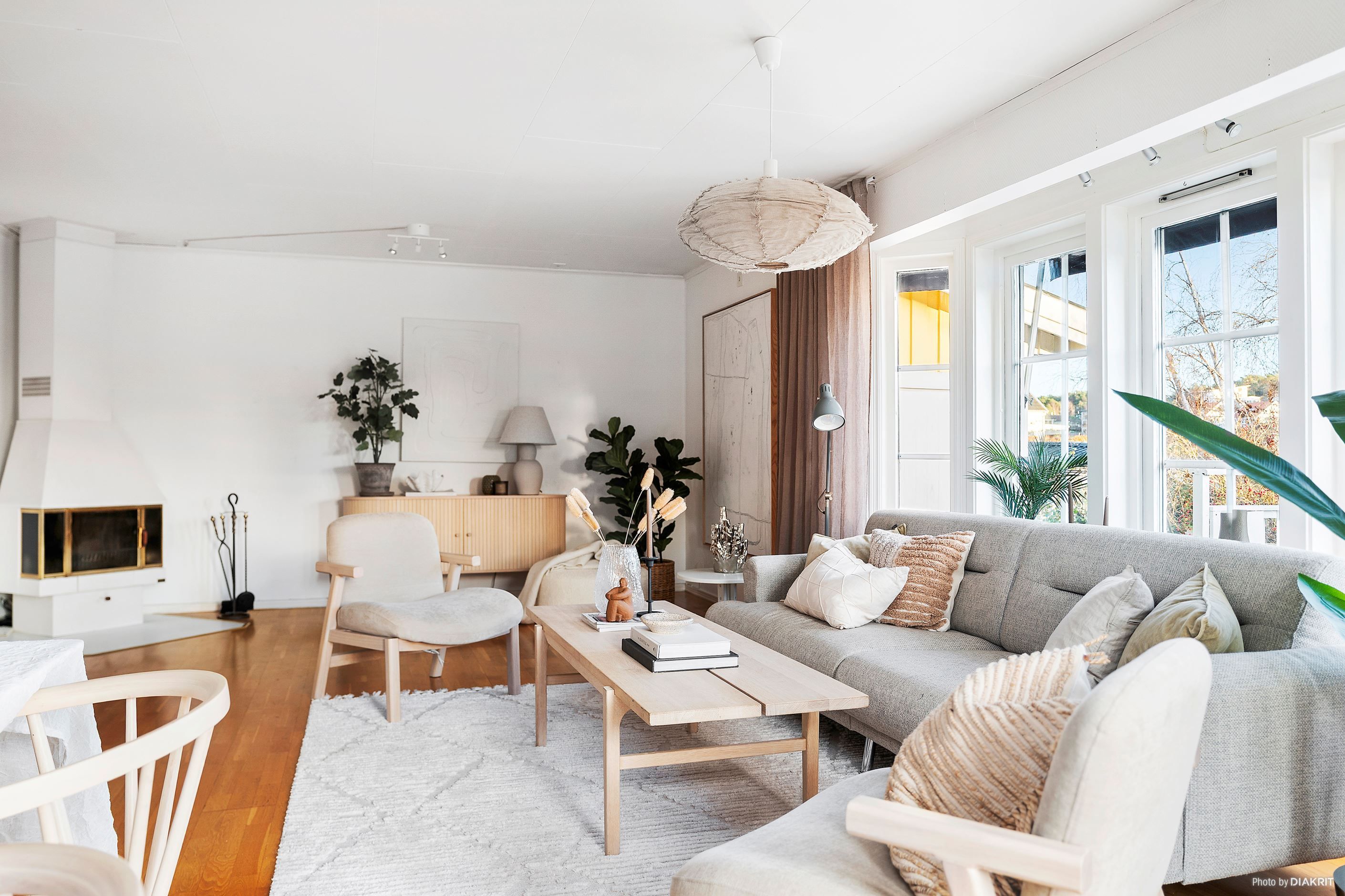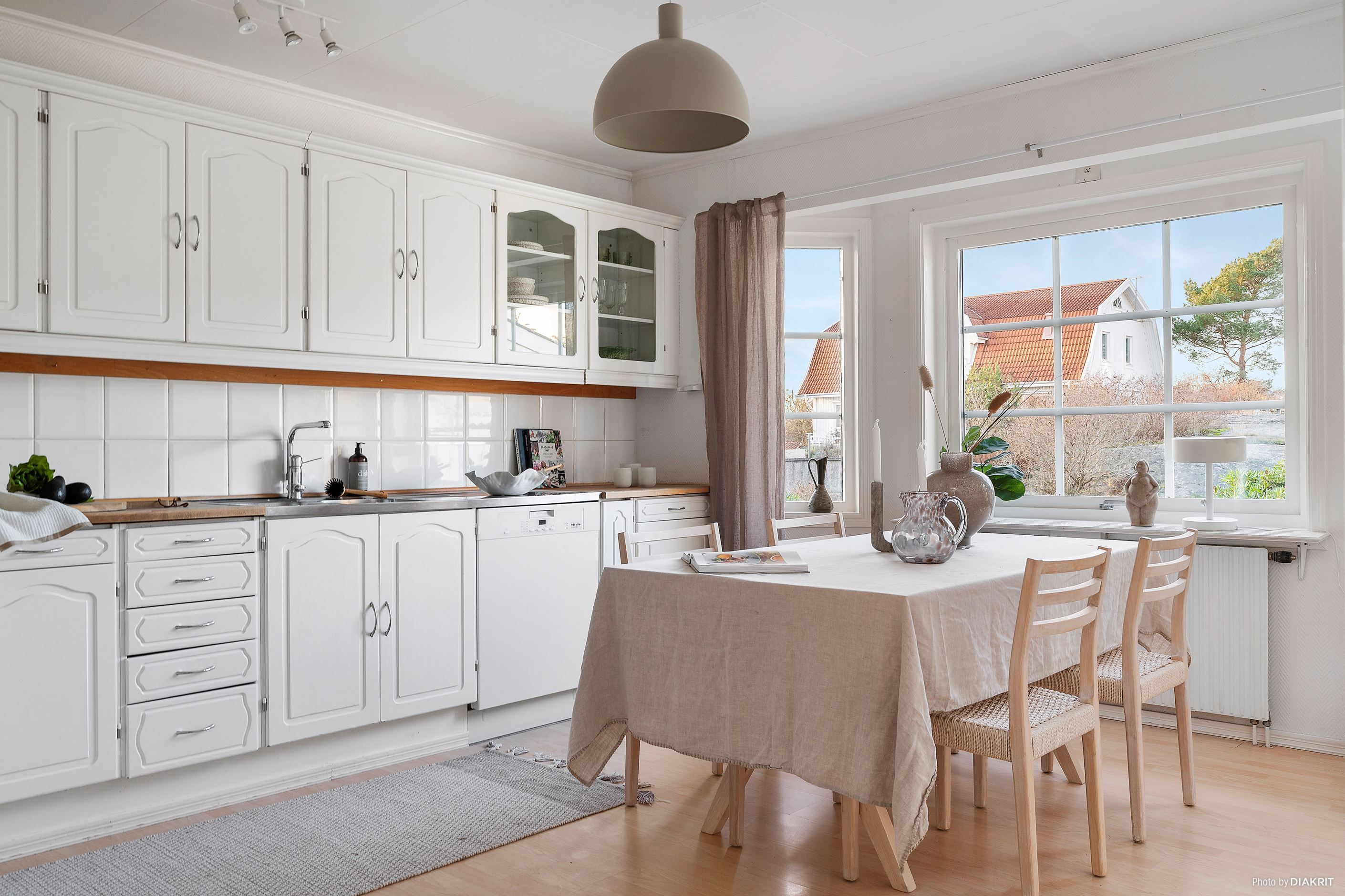Invändigt erbjuds ni sällskapsytor på entréplanet med vardagsrum och kök. Från vardagsrummet ligger utgången till baksidans soliga altan. Köket är ljust med plats för ett matbord. På entréplan har ni även ett helkaklat badrum med dusch, en separat tvättstuga, en praktisk hall.