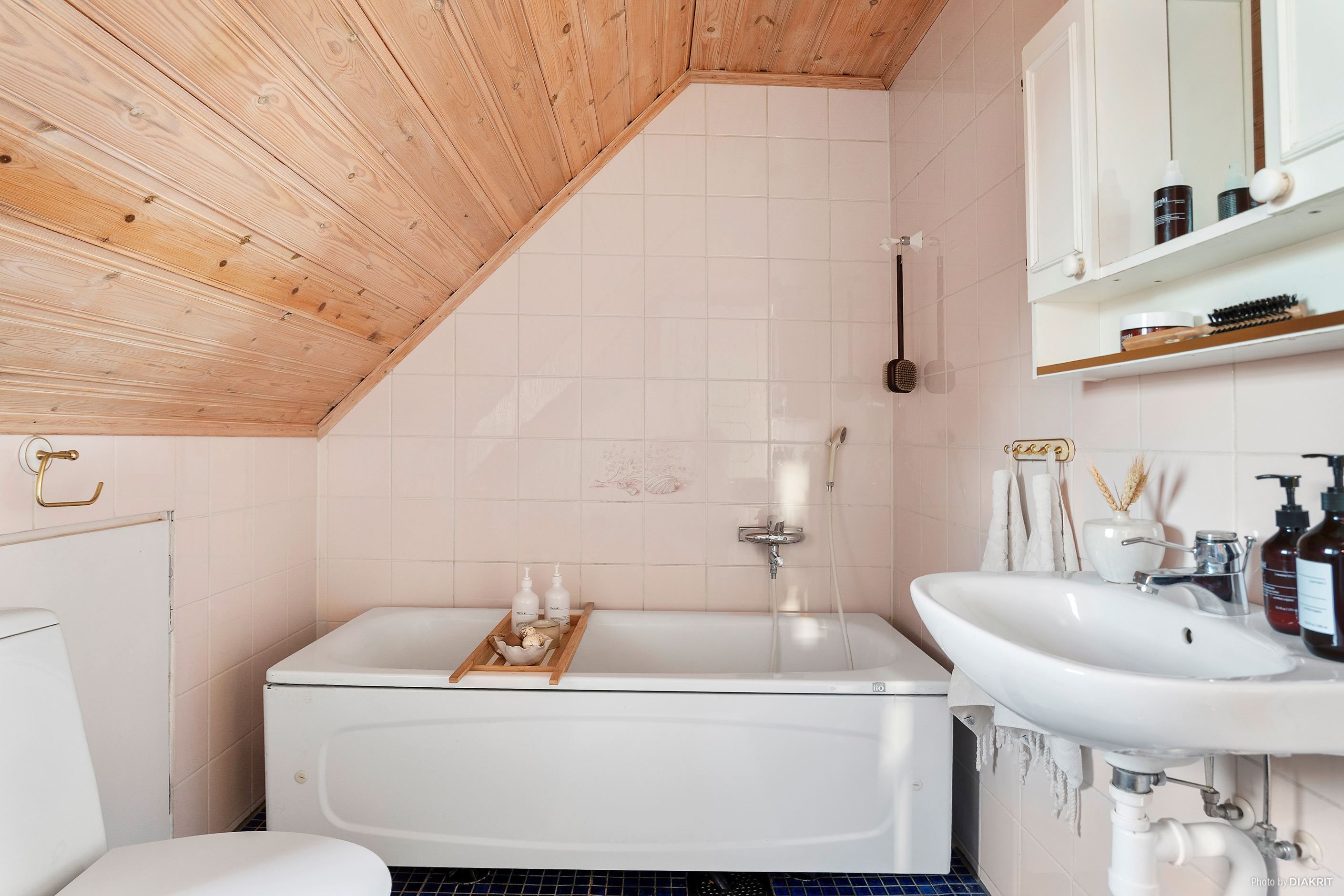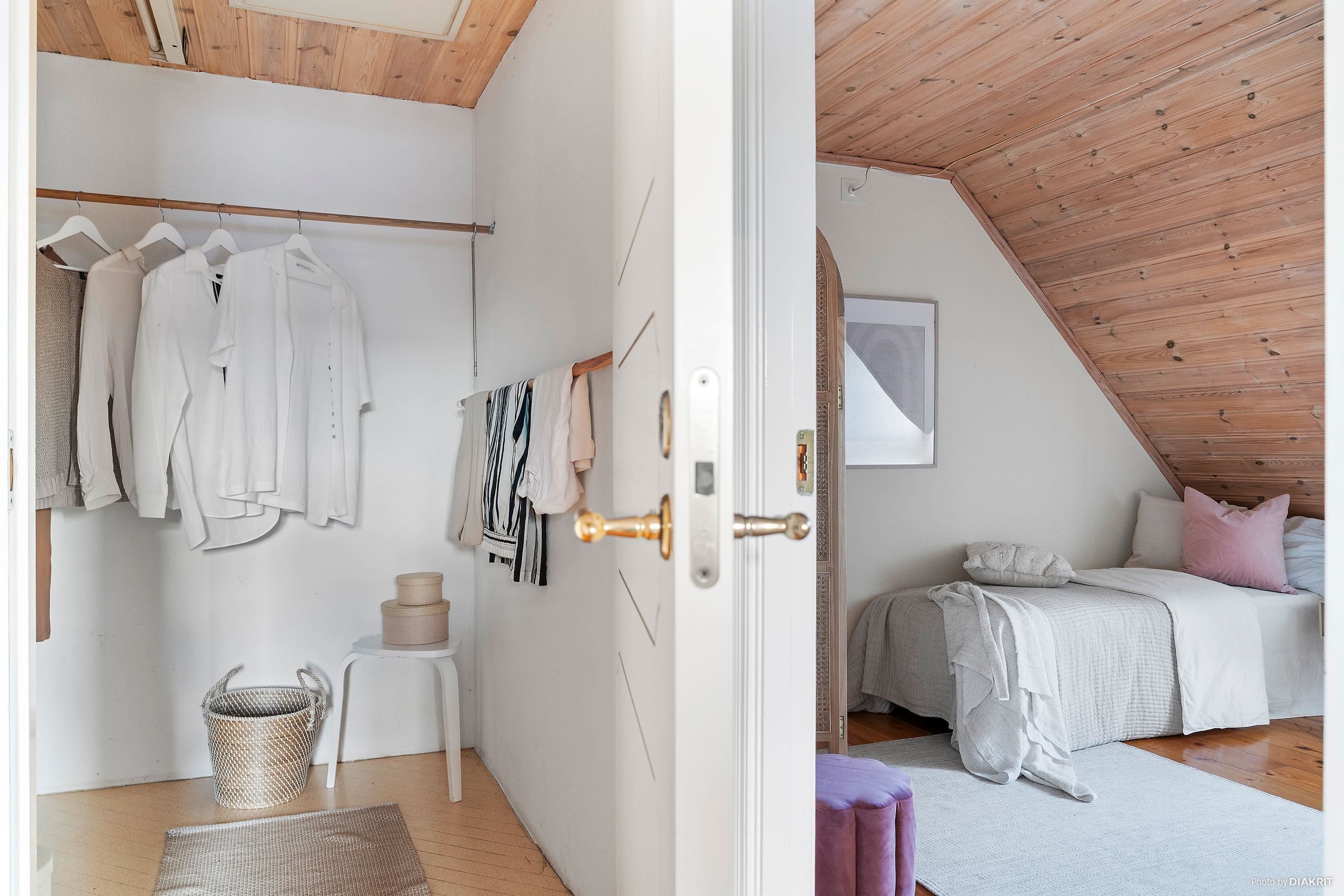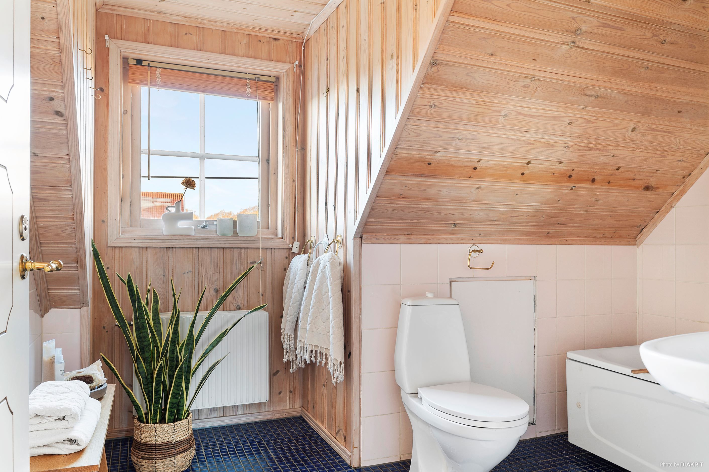 På övre plan har ni sovrumsavdelningen med två bra sovrum, ett allrum som enkelt kan bli ett stort sovrum till, samt ytterligare ett helkaklat badrum. Inredningsbar vind för ytterligare ett sovrum.