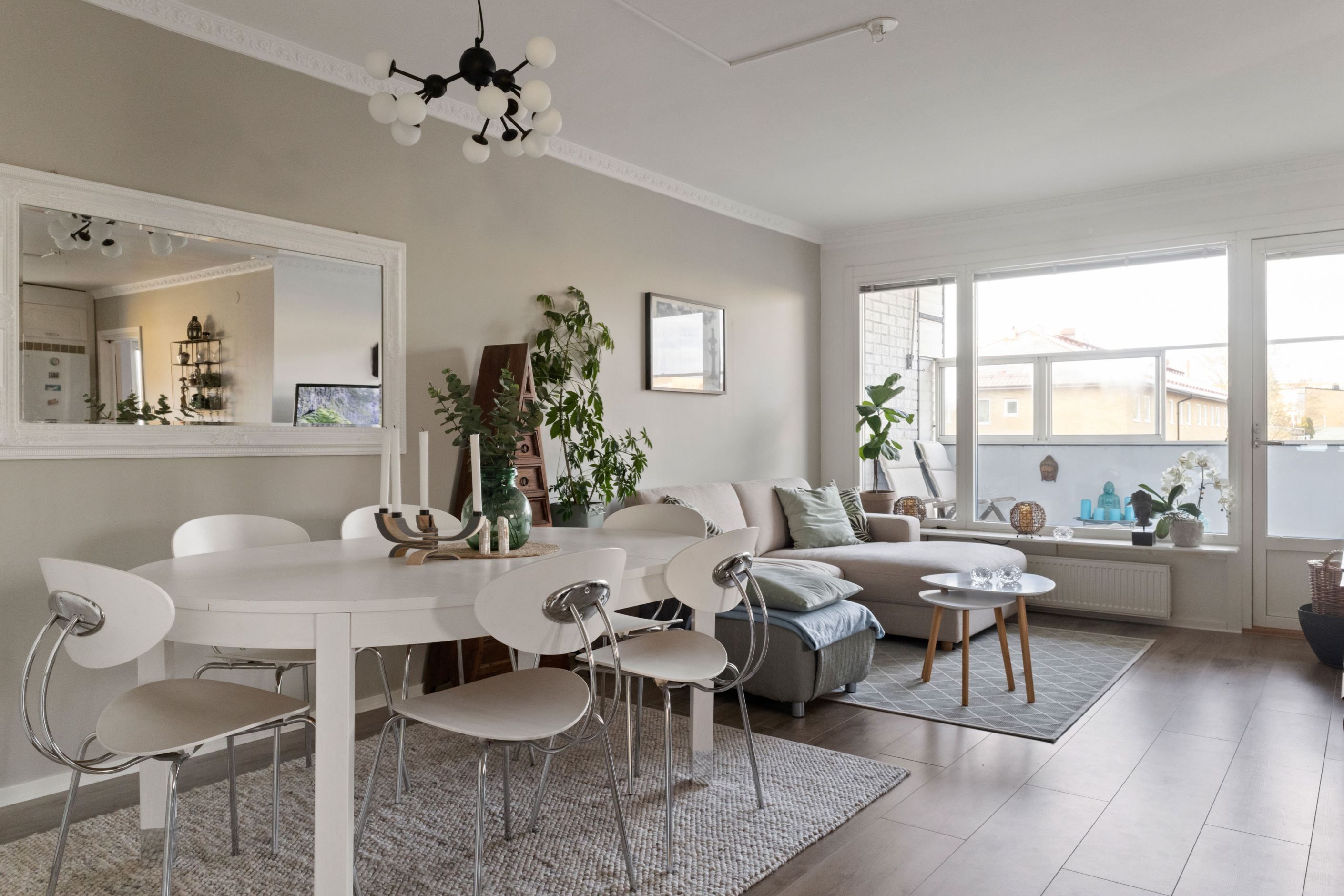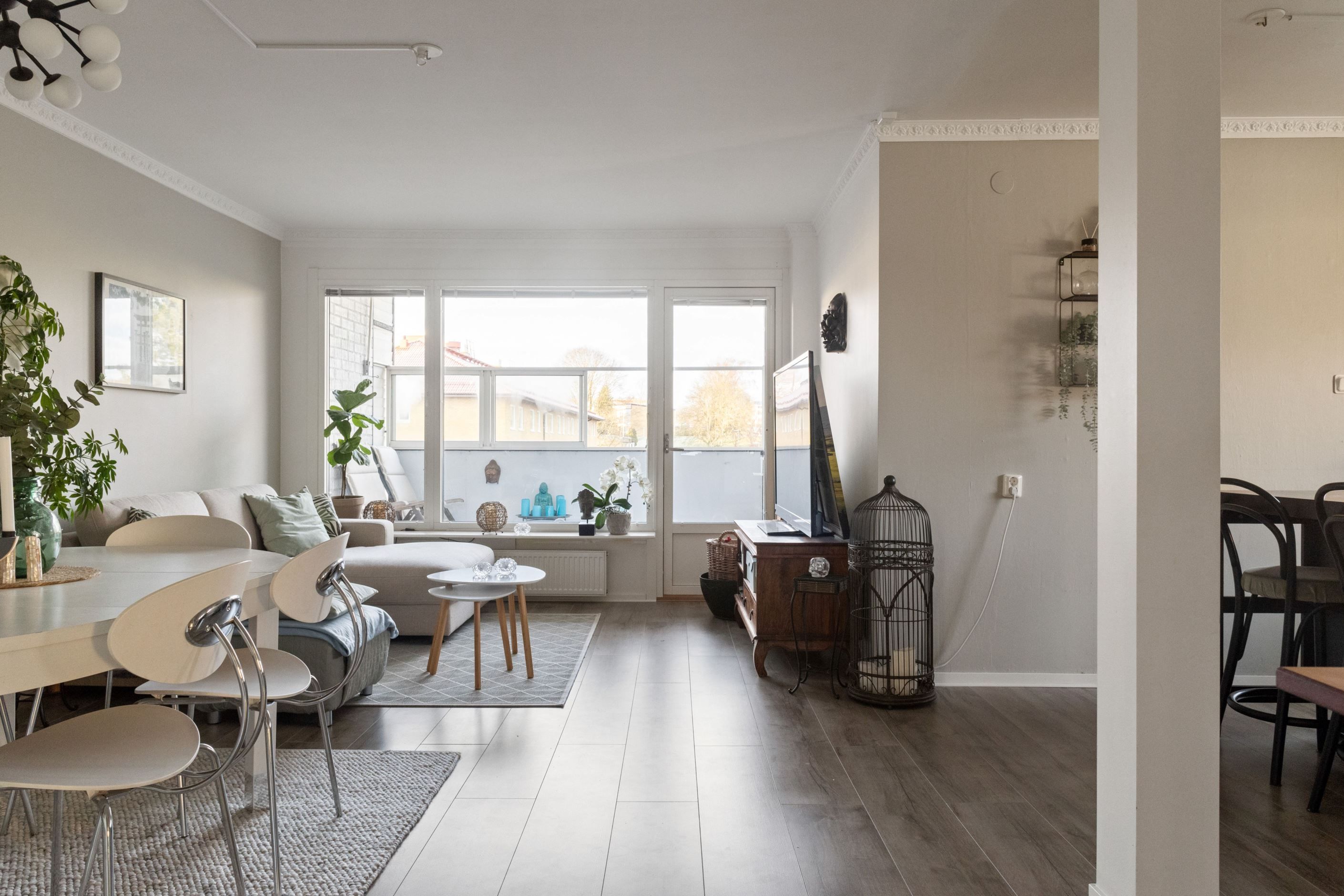 Lägenhetens balkong i västerläge är en riktig pärla, perfekt för att njuta av solnedgångar och varma sommarkvällar. Här finns gott om plats för både familj och gäster – en bostad som bjuder in till både vardagsmys och festliga tillställningar.
