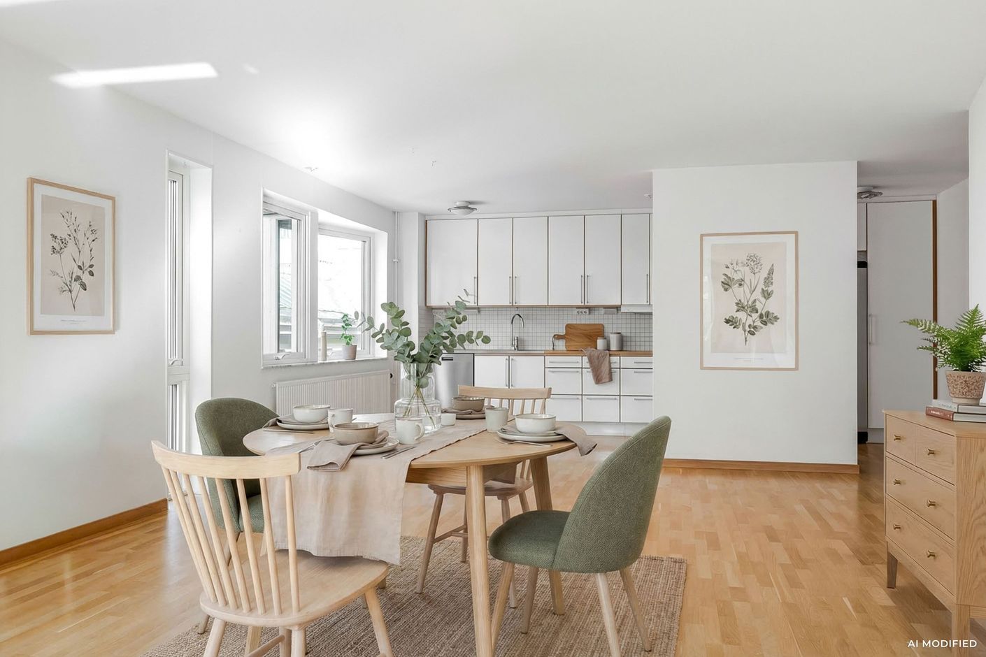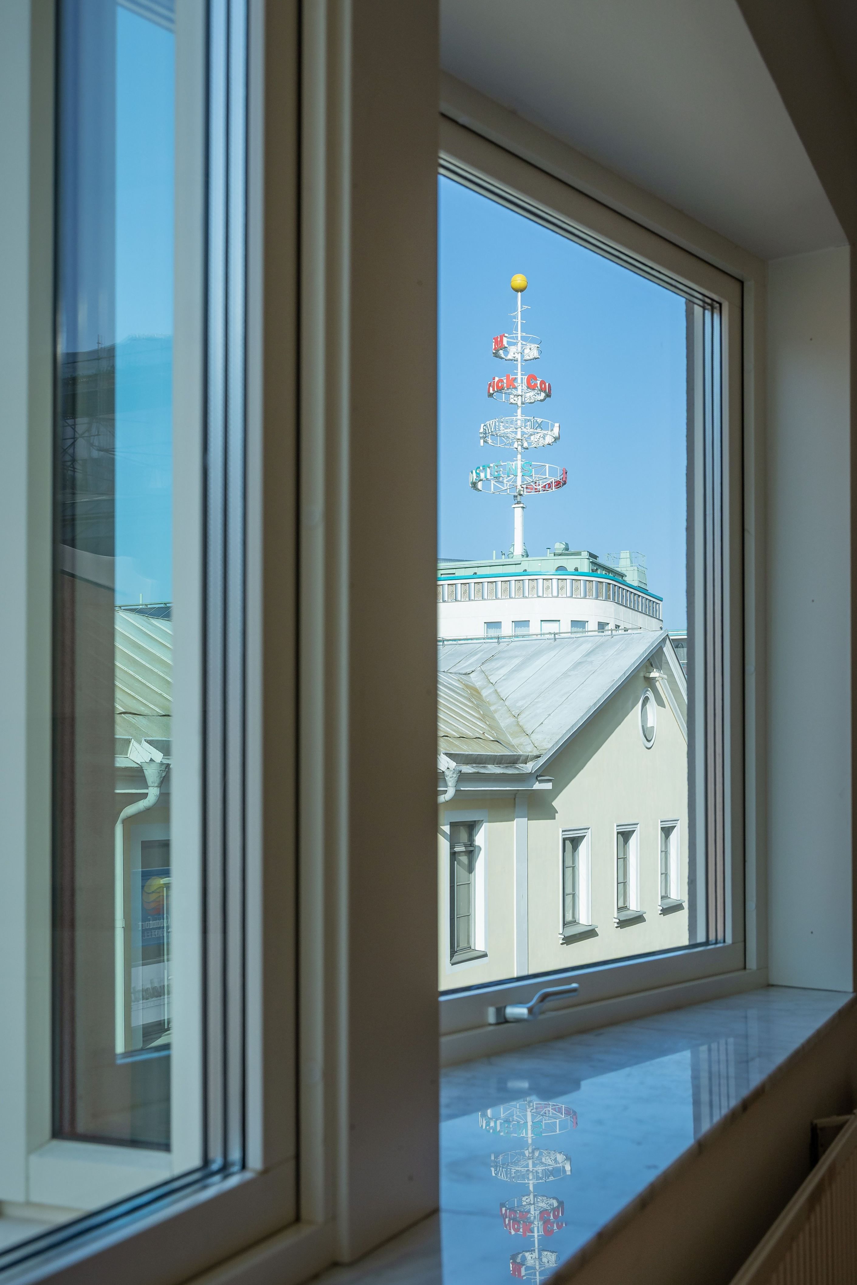Stort vardagsrum och kök med härlig fönstersättning och burspråk. Här kan ni se ut över Domkyrkan och citys gator. Här finns plats för bl.a. matsalsbord, soffhörna och gott om plats för vitrinskåp och bokhyllor.