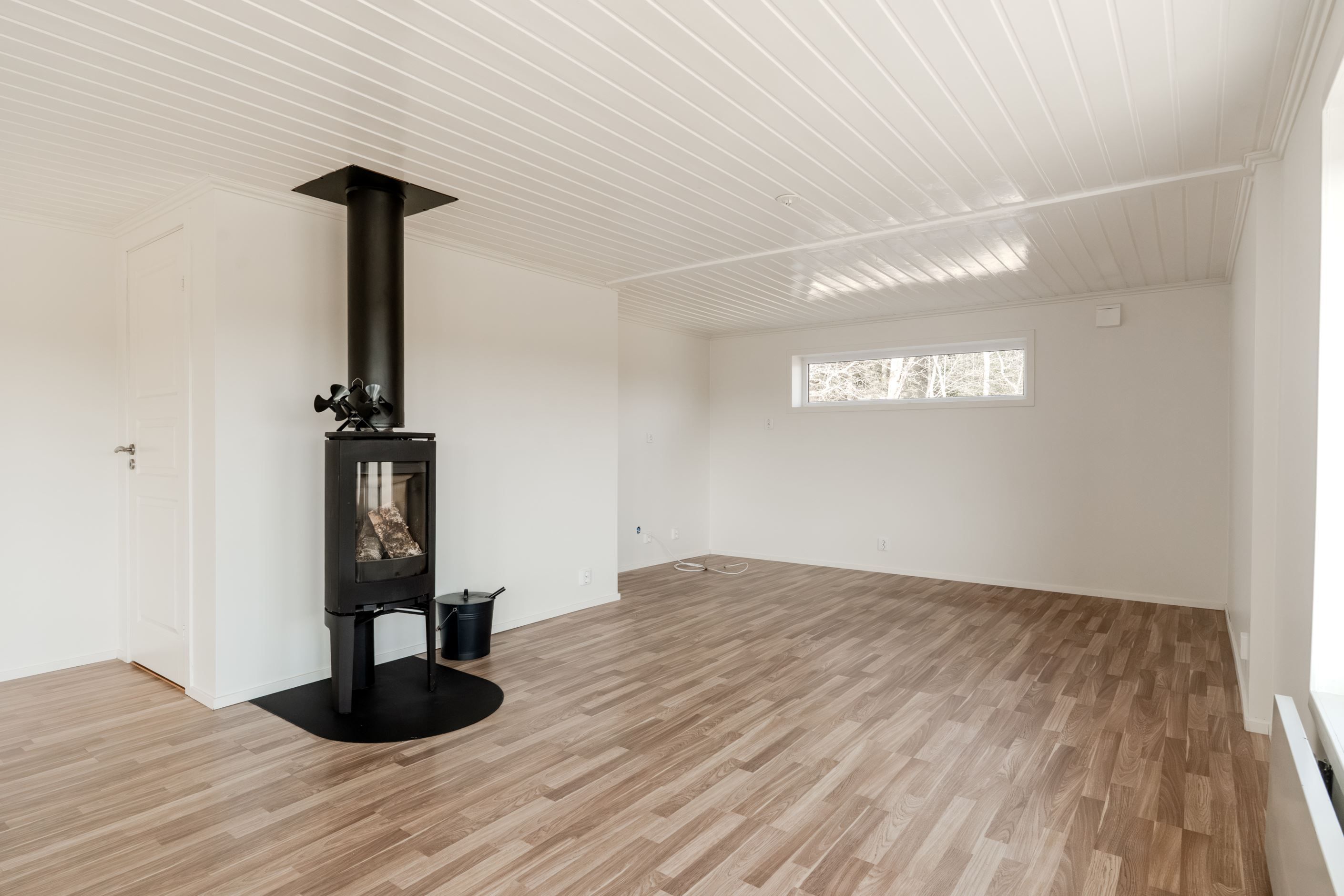 Allrum med kamin och utgång till den rymliga altanen i söderläge