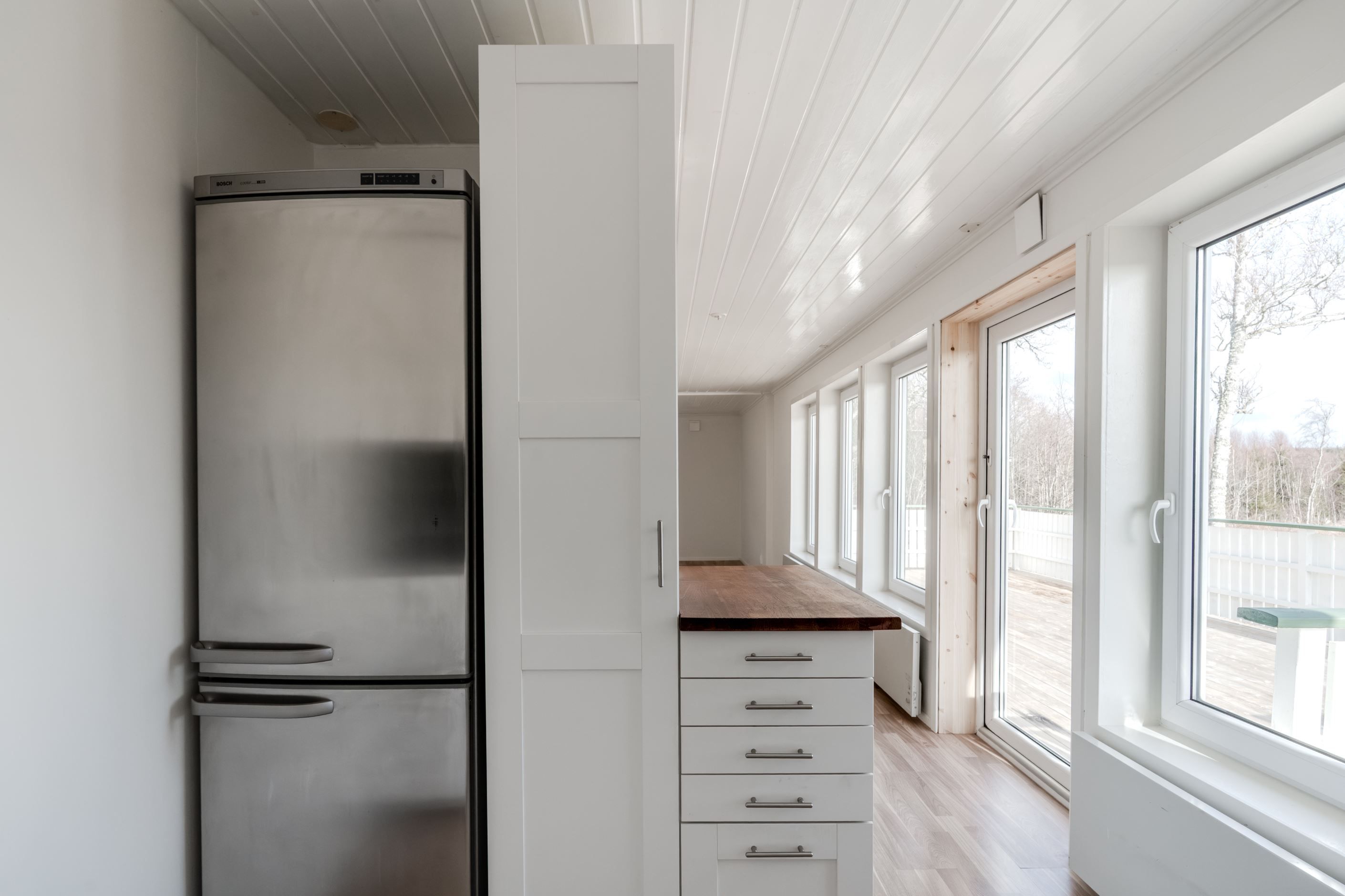 Invändigt möts du av ljusa och trivsamma ytor där renoveringarna skapar en modern och enhetlig känsla. I vardagsrummet bidrar en kamin till både värme och atmosfär. Från bostaden nås även en altan i söderläge, perfekt för soliga dagar och avkoppling i lugn miljö.