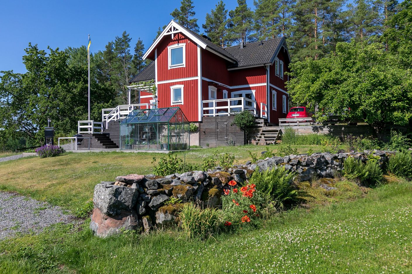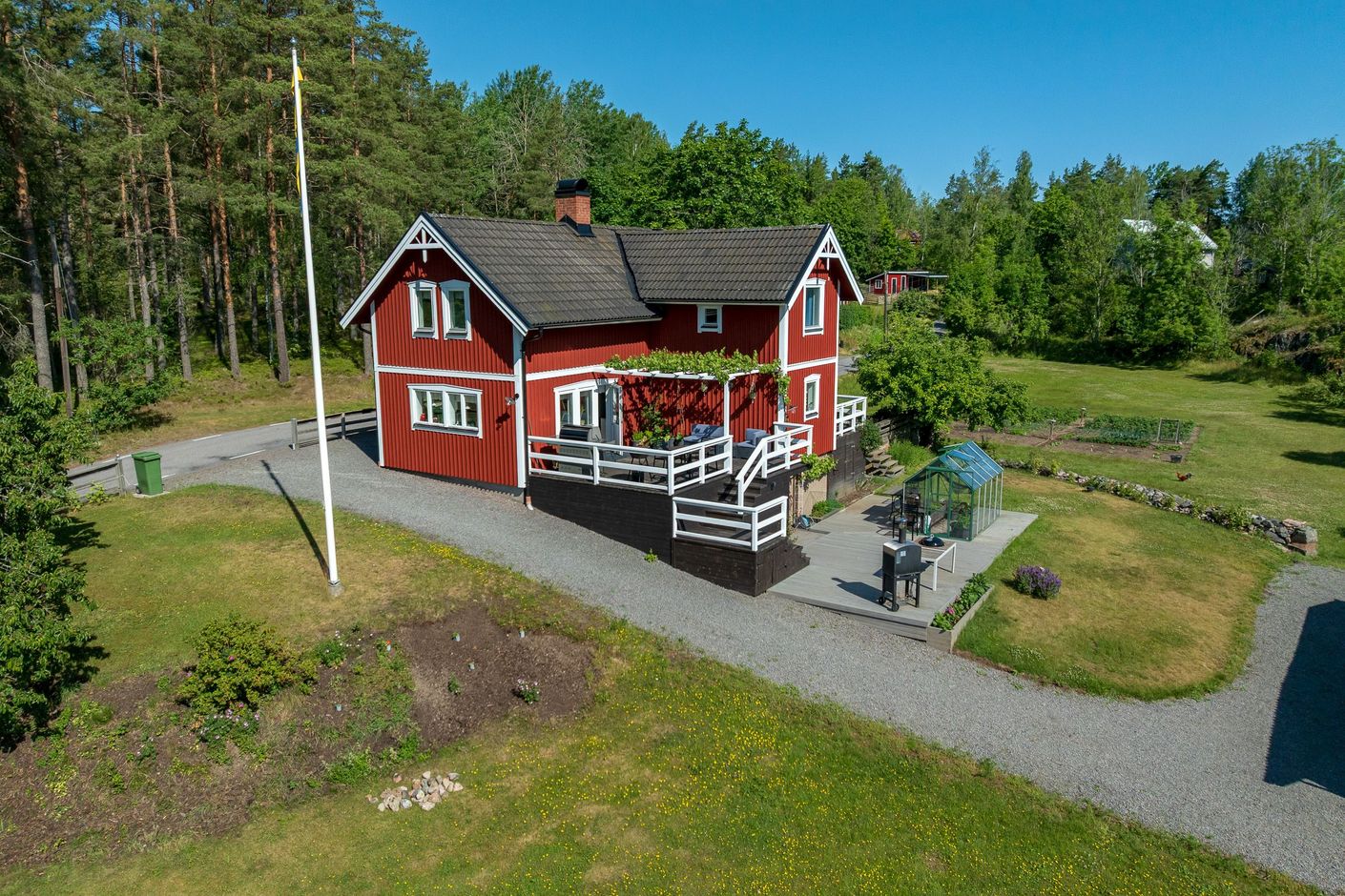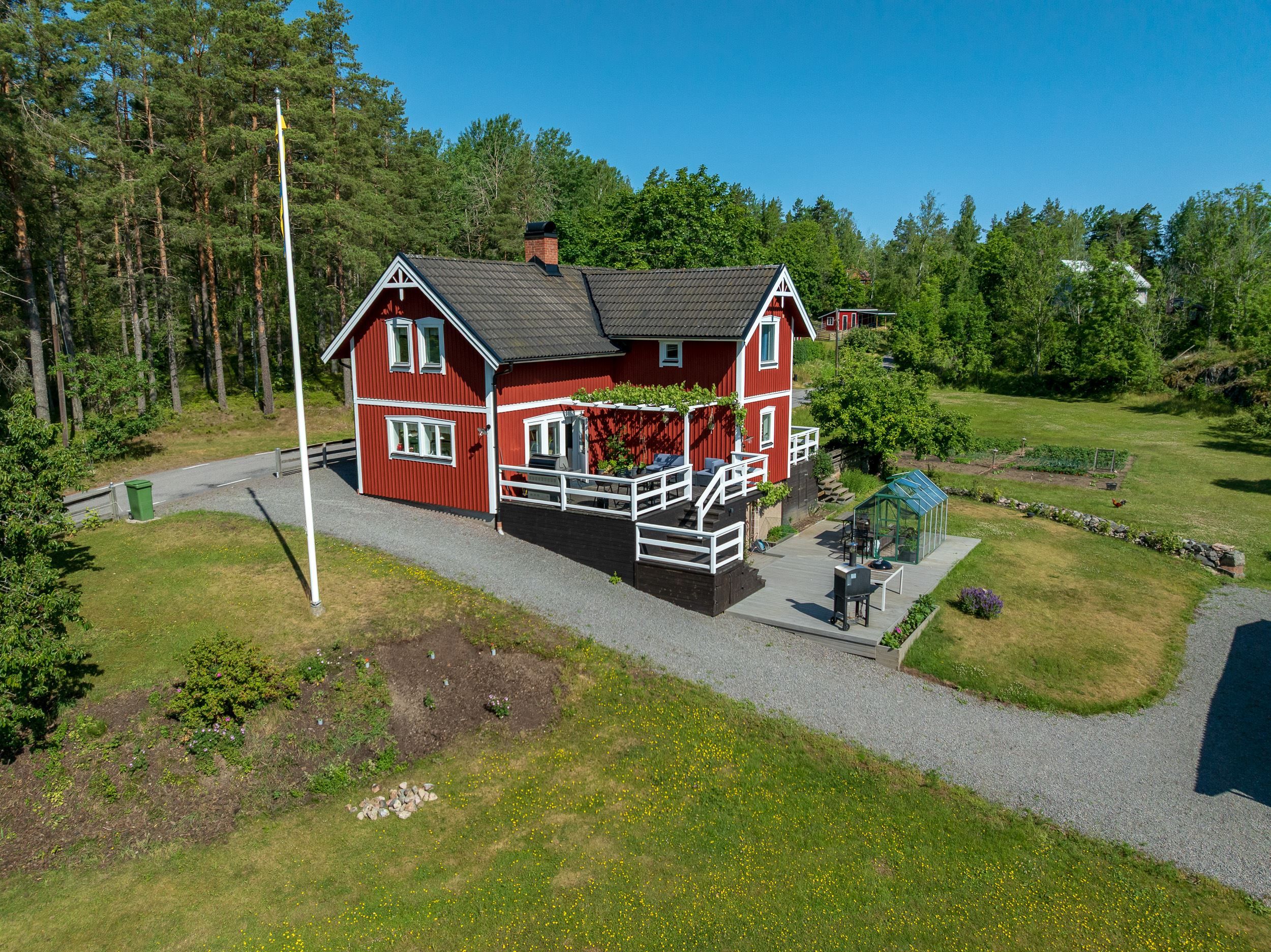 Detta charmiga rödvita hus är inte bara en bostad; det är en plats där minnen kan skapas, familjer kan samlas och långa sommarkvällar kan avnjutas. Med dess ideala läge, stora tomt och fantastiska faciliteter, är detta ett hem som du kan njuta av i många år framöver.
