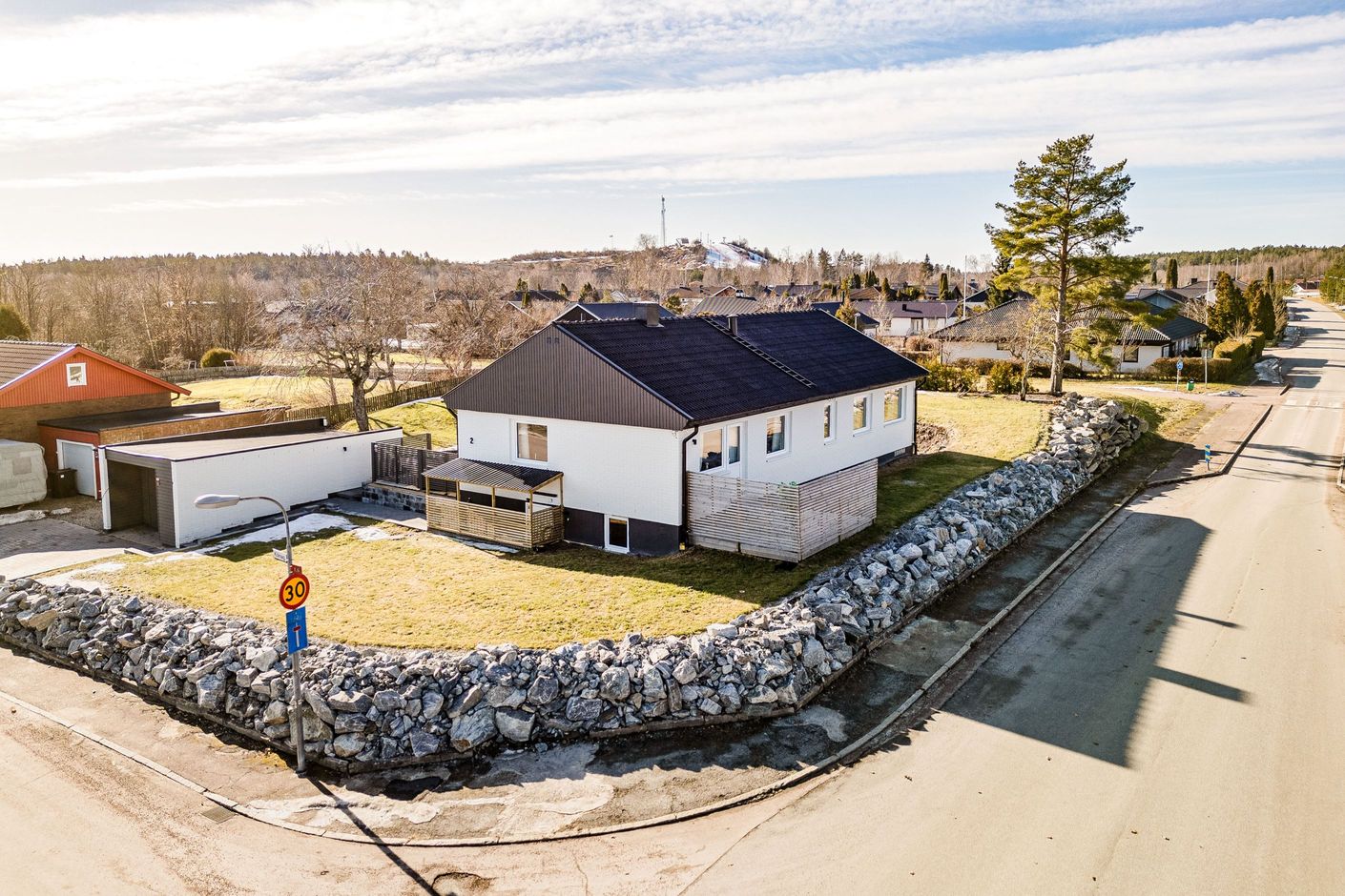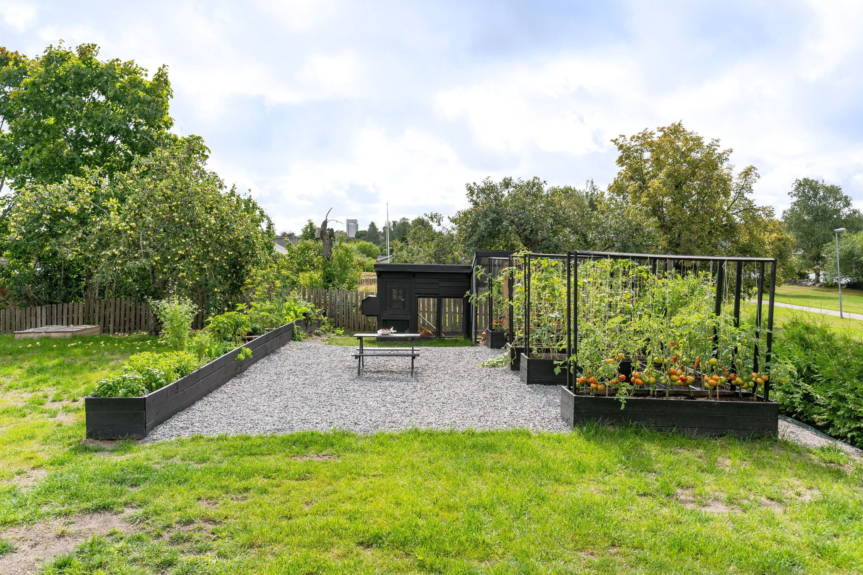 Till huset hör även ett garage som ger praktisk plats för både parkering och förvaring. Tomten omges av en vacker stenmur som ger ett inbjudande och välskött intryck. Här finns också flertalet odlingslådor för den odlingsintresserade samt en trivsam uteplats i söderläge som bjuder in till sköna stunder i solen.