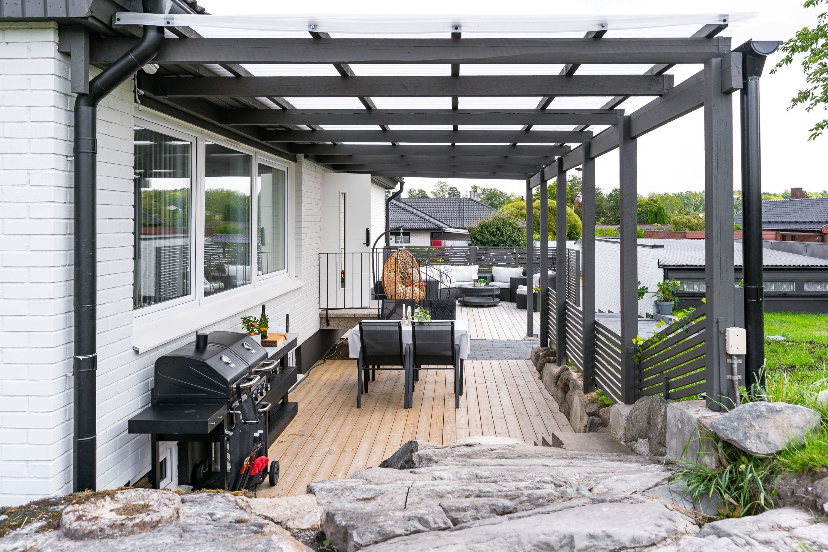 Ett enplanshus med källare som har genomgått en omfattande totalrenovering under 2023 samt 2025. Här har varje aspekt planerats med omsorg – varje detalj är noggrant genomtänkt och huset har förvandlats till en modern och stilren bostad där komfort och funktion står i fokus.