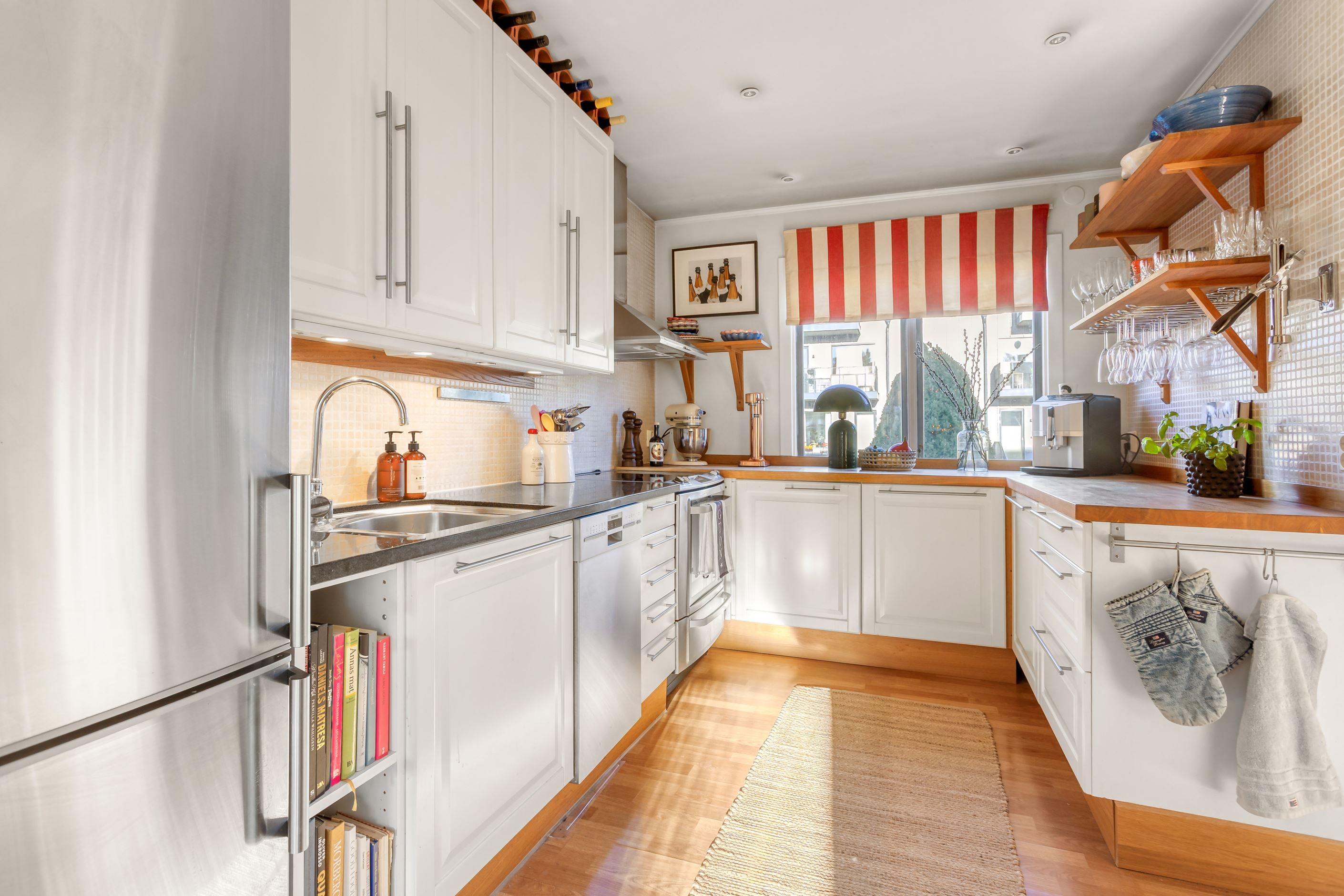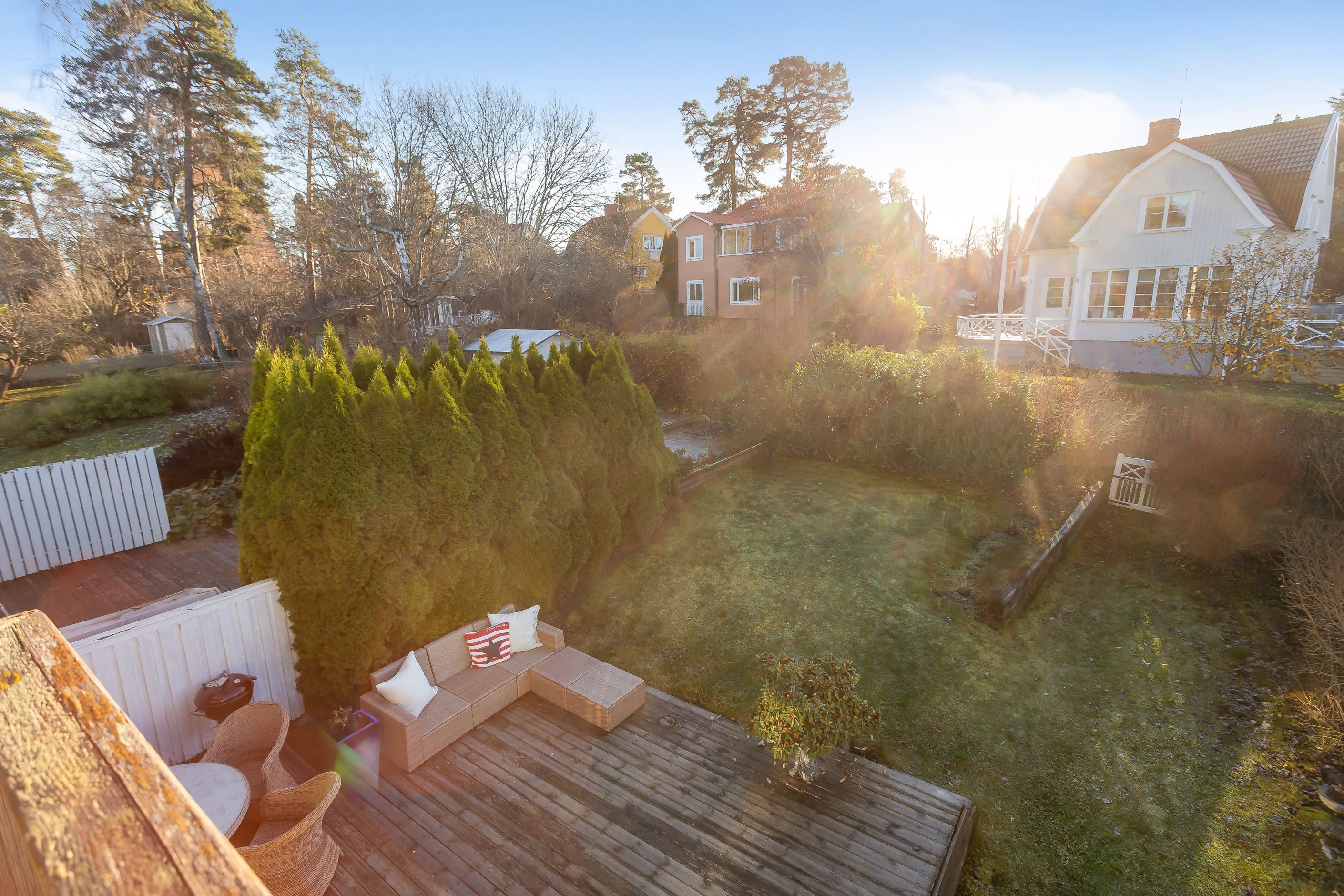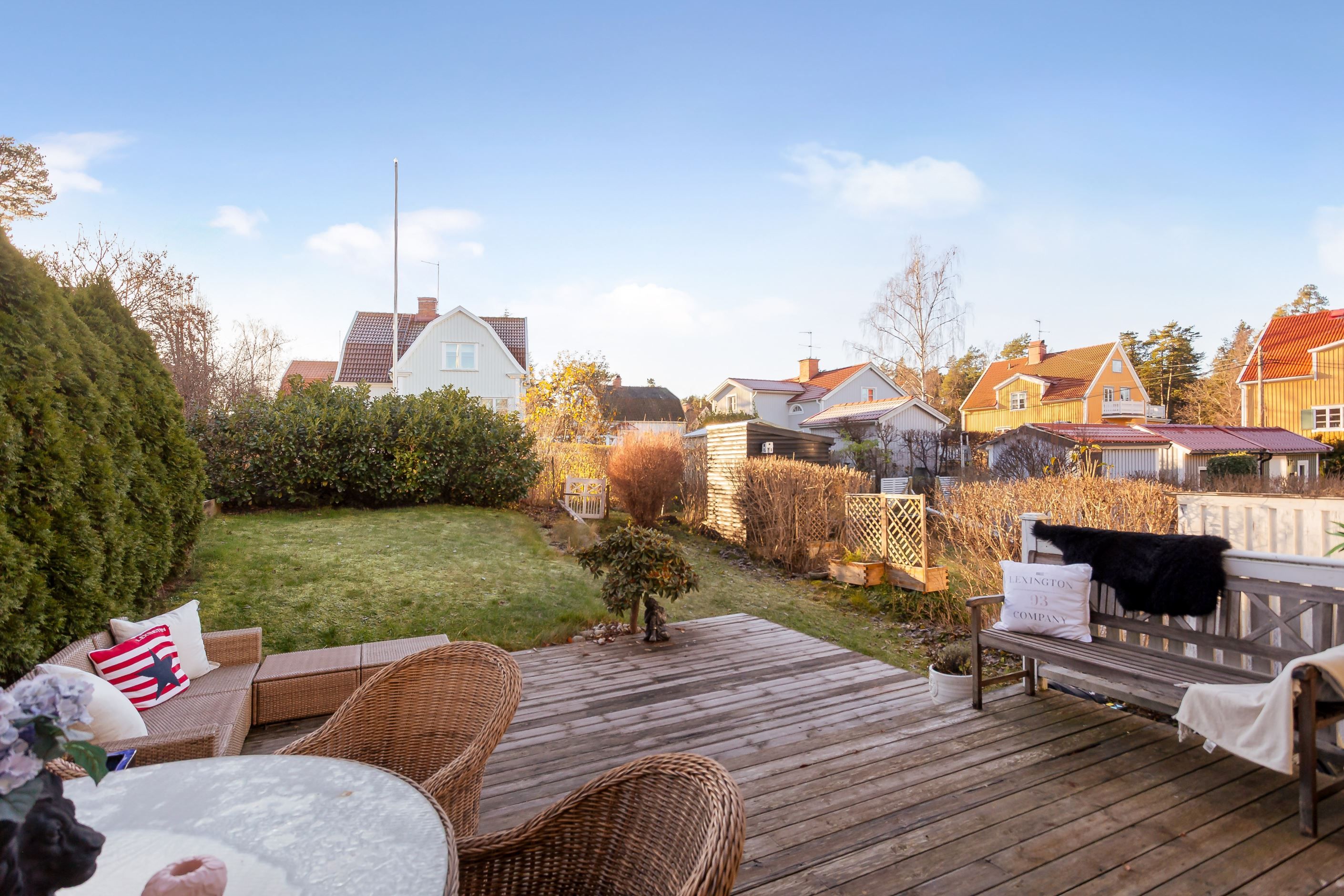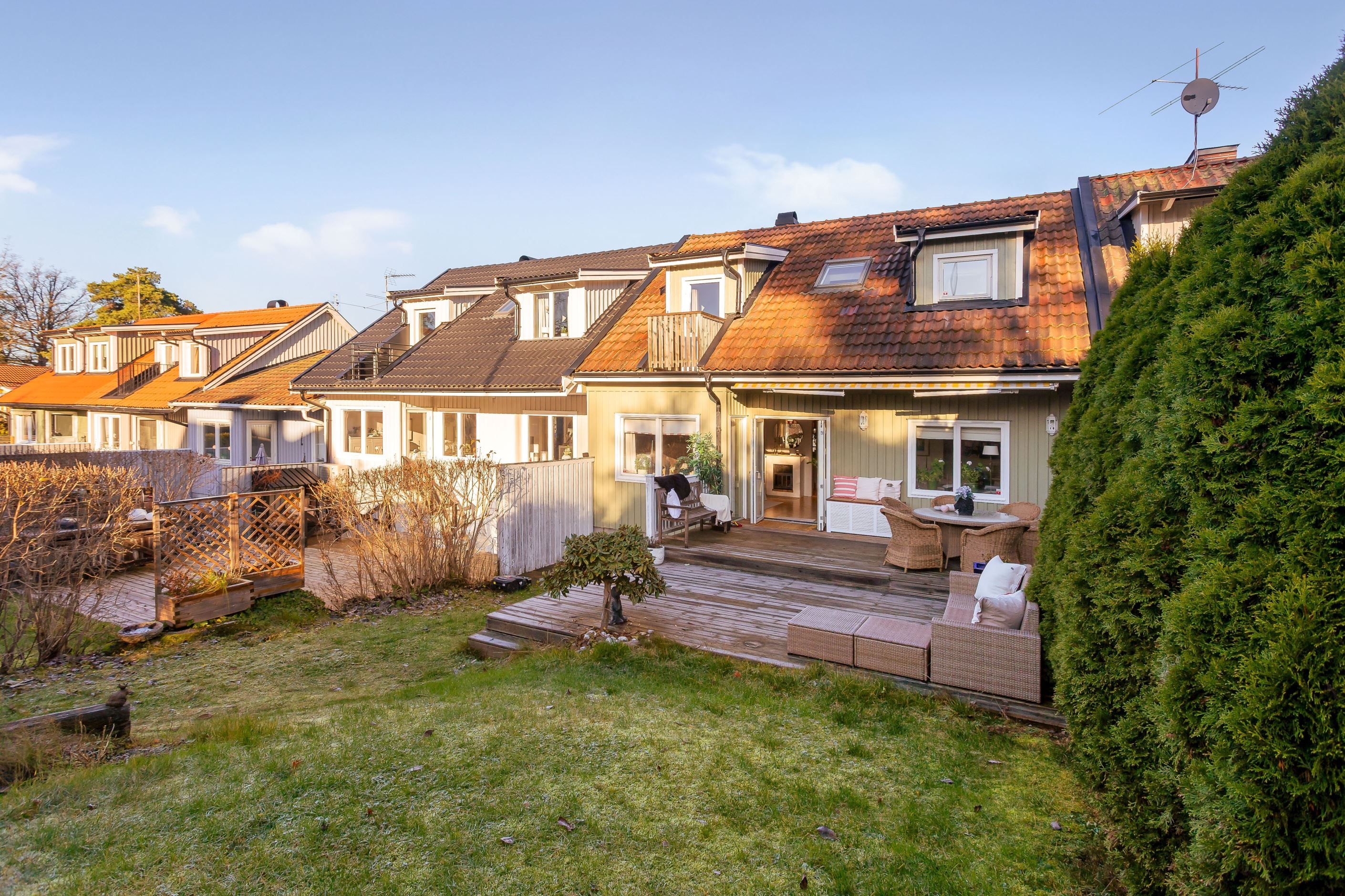 En skyddad och barnvänlig tomt, perfekt för lek och bus. Förstklassiga skolor och butiker samt friidrottsanläggning med bollplaner och ishall i närområdet. Kort gångavstånd ner till Stora Mossens T-banestation samt även Alviks Torg och Ålstens Torg, med kommunikation och förstklassiga butiker. En genuin idyll på en lugn liten gata endast några minuters bilväg från City och på ca 15 minuters pendelavstånd för den som åker kommunalt eller cyklar.