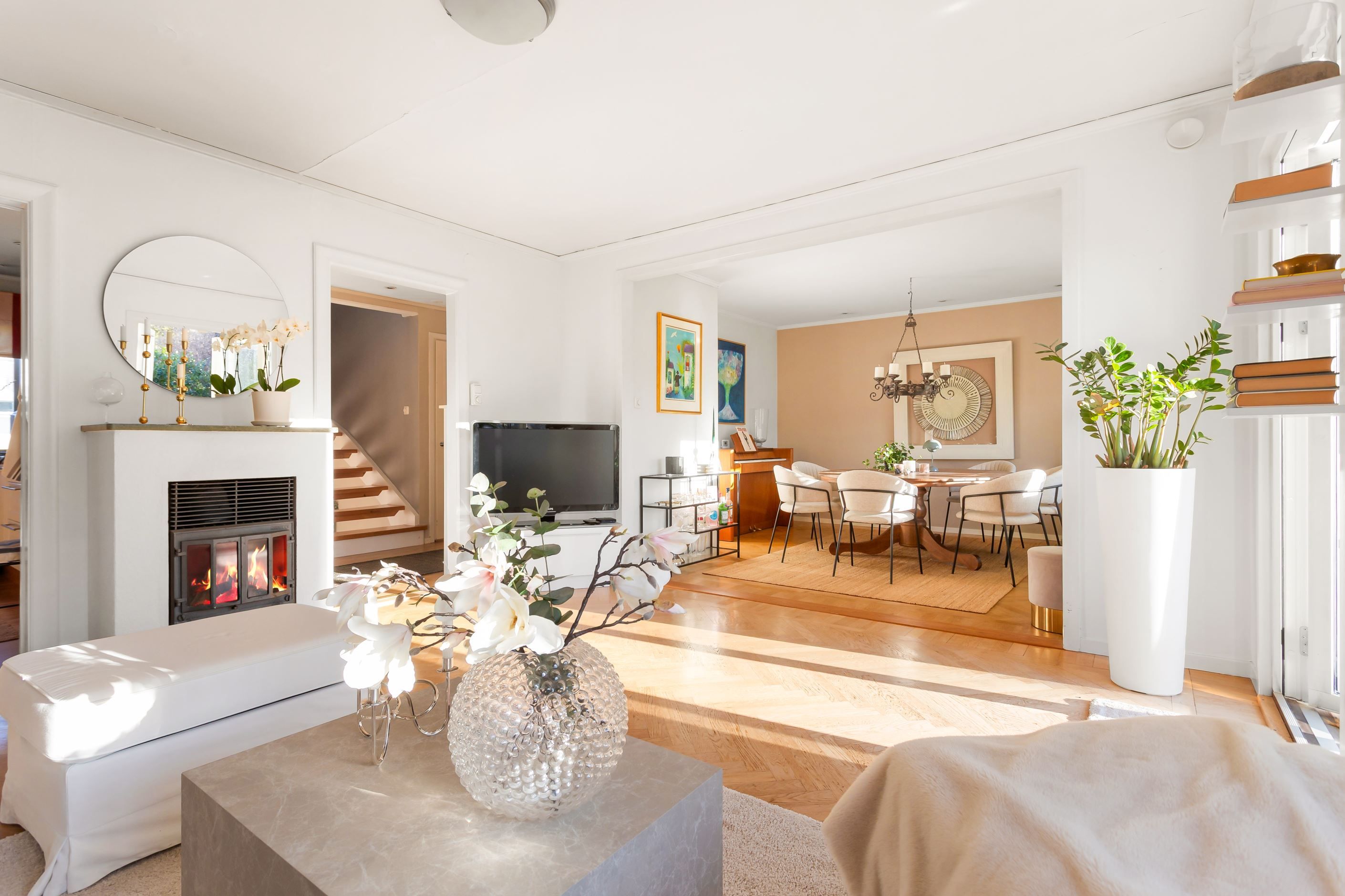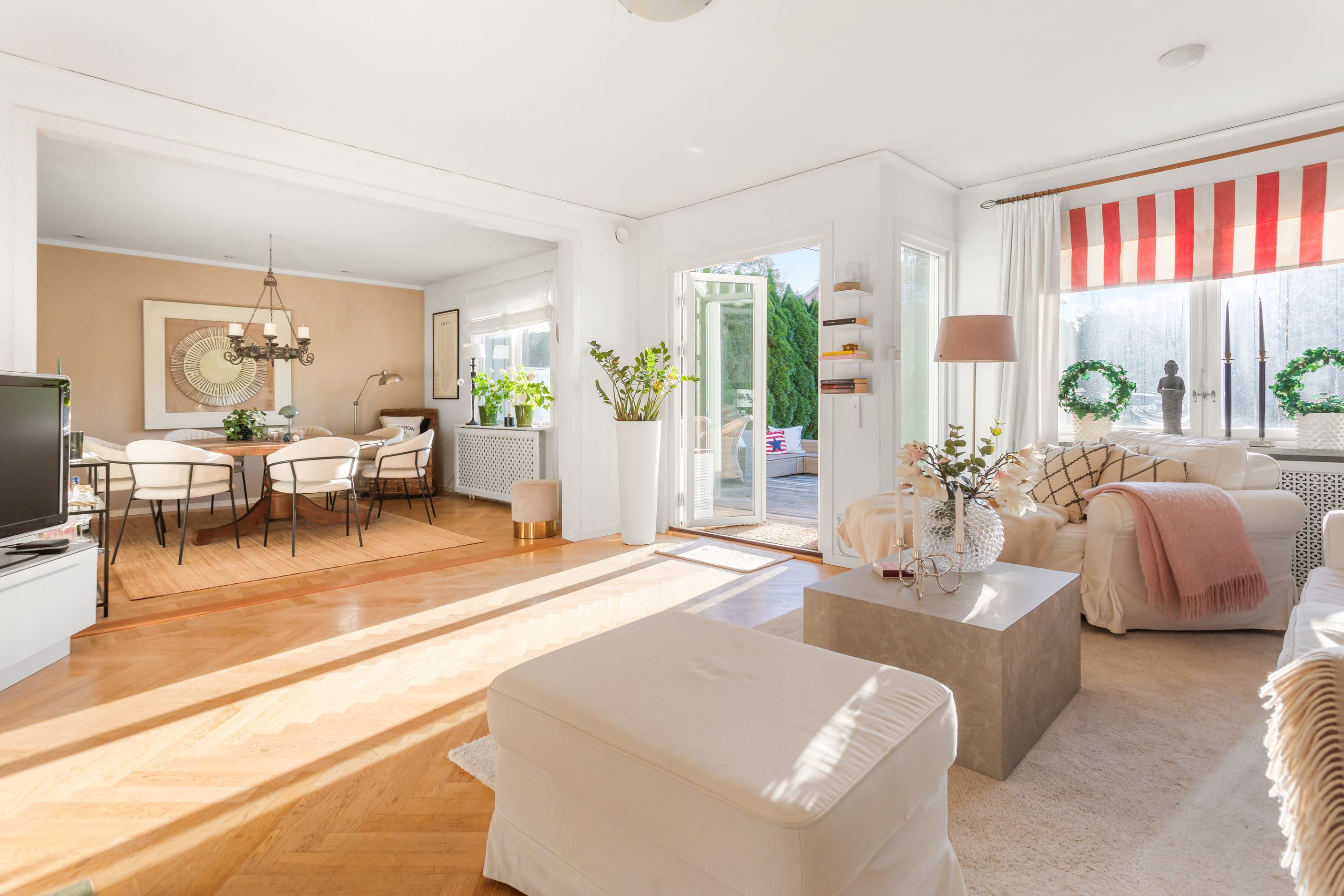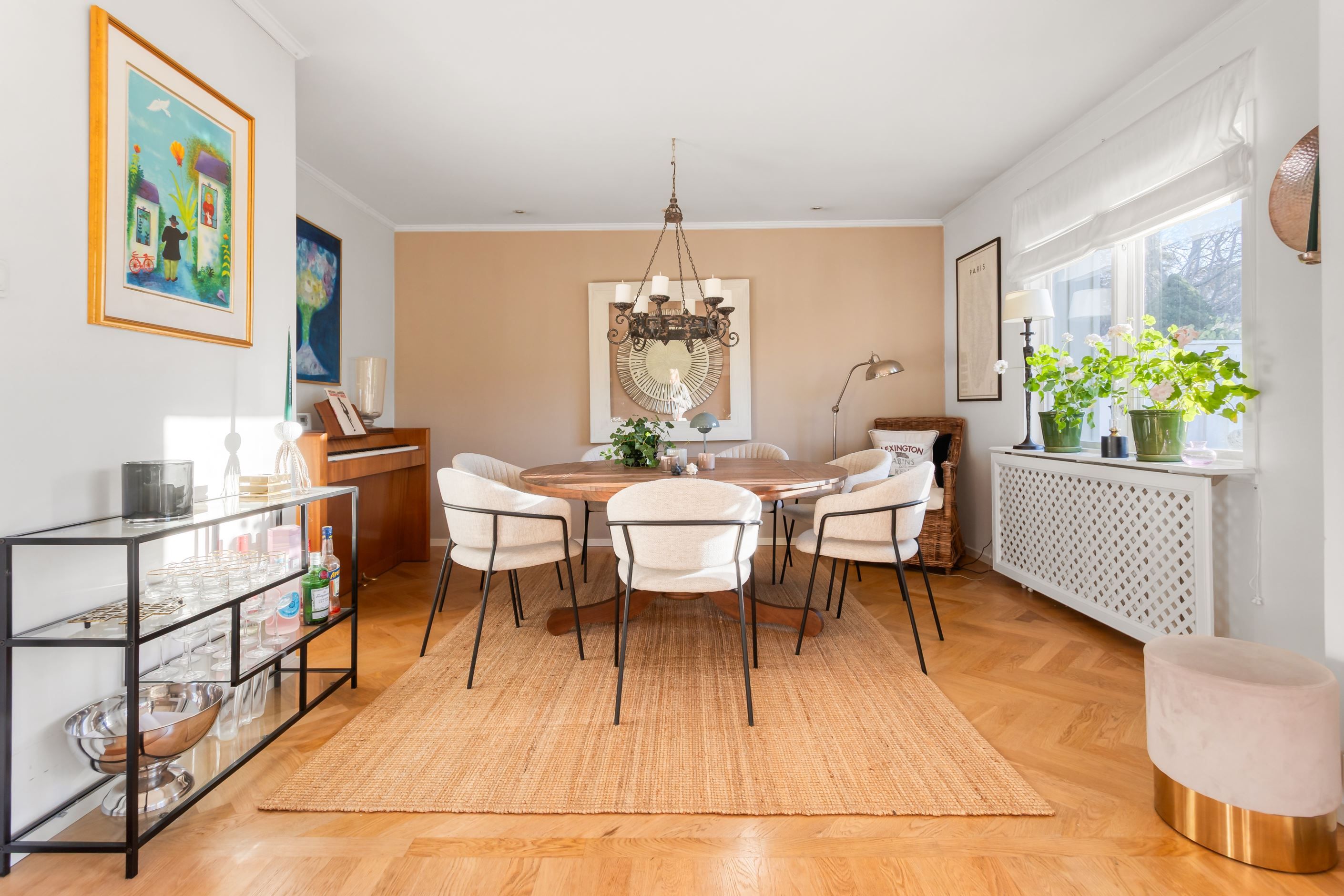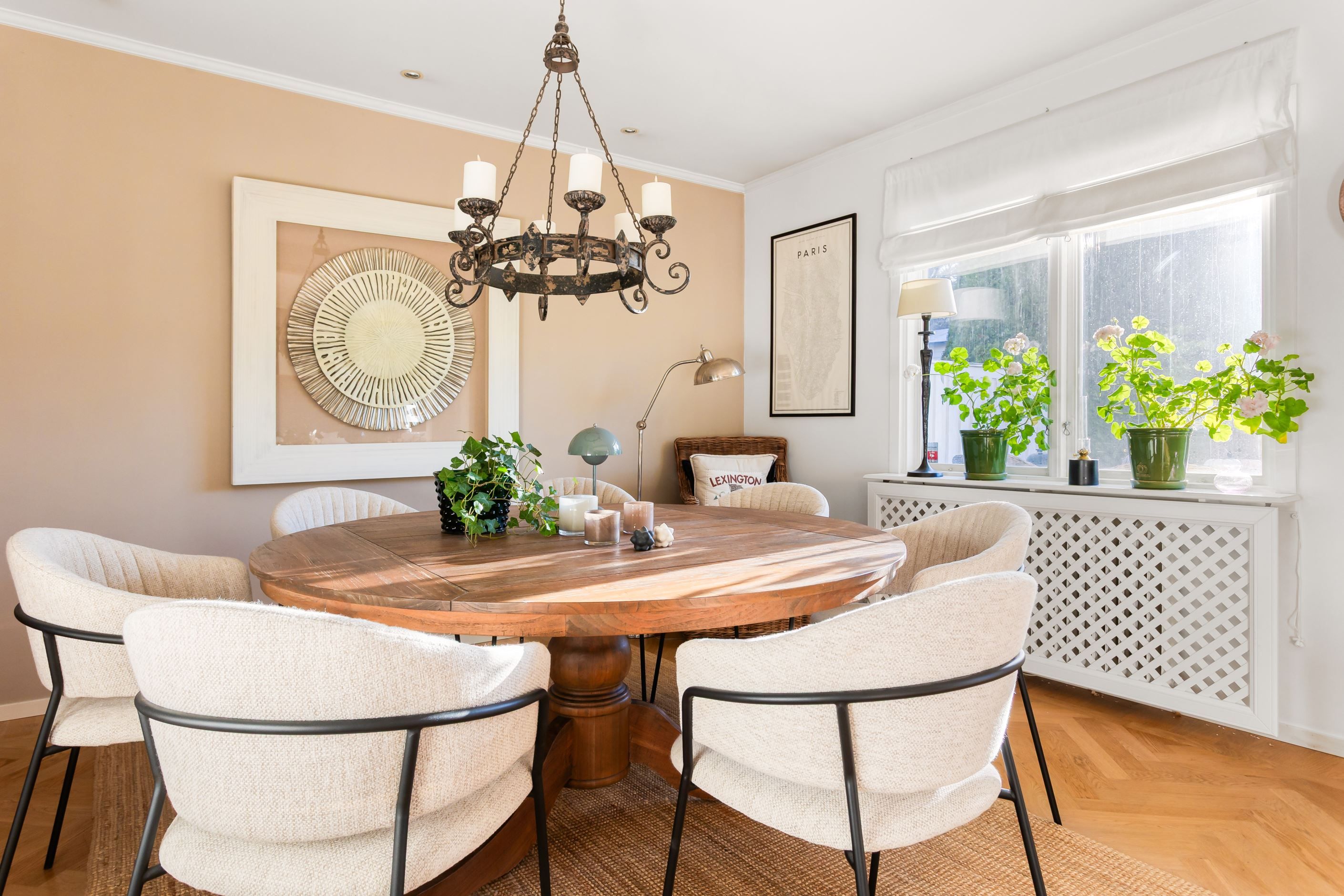 Radhus med varm och trivsam atmosfär med byggårscharm och vackra detaljer. Stilfullt med drömläge om totalt 169 kvm med luftiga sällskapsytor genomgående ljusa trivsamma rum. Ett älskat hus i mycket fint skick som är löpande renoverad genom åren. Välbelägen på trevliga Koltrastvägen, som trivsamt slingrar sig genom Äppelvikens villaidyll. Vackra kvarter med prunkande trädgårdar, vilket skapar den vilsamma, ogenerade och barnvänliga atmosfären som så många av oss drömmer om när vi söker familjevänligt boende.