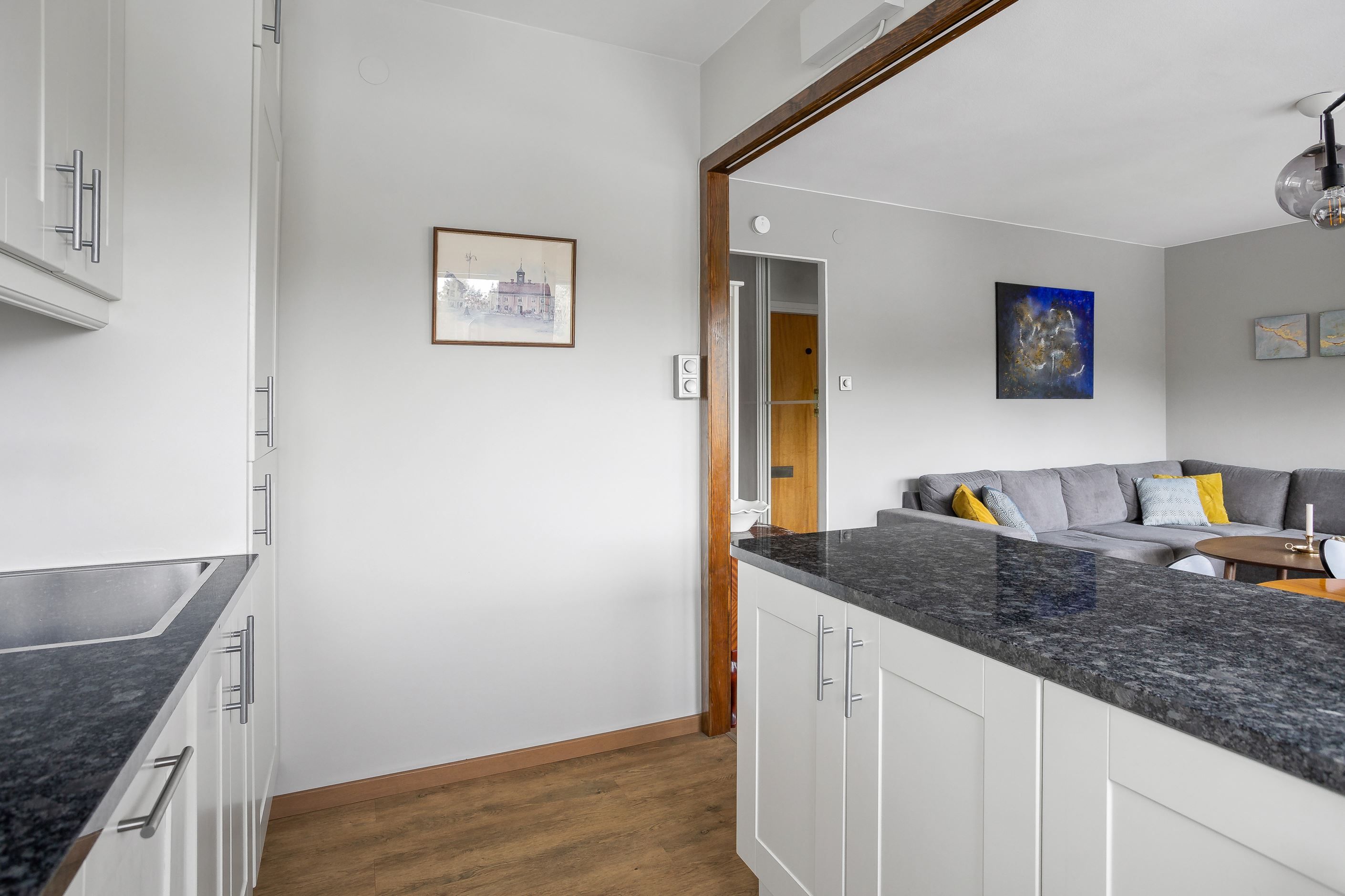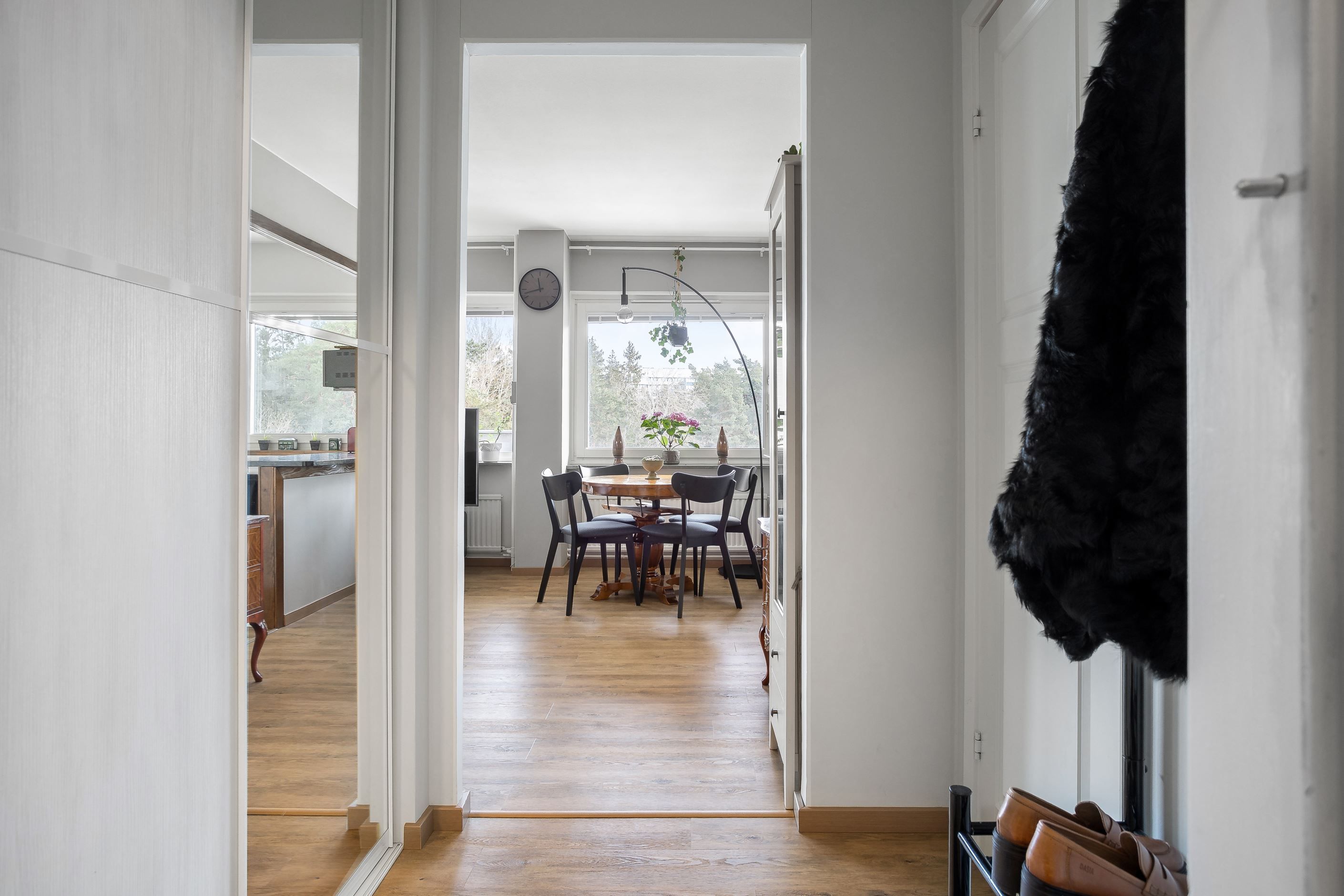 Här bor du i ett lugnt och naturnära område med närhet till fina promenadstråk, goda kommunikationer, service och shopping. Ett idealiskt boende för såväl förstagångsköparen som paret som söker ett bekvämt och harmoniskt hem med det lilla extra.