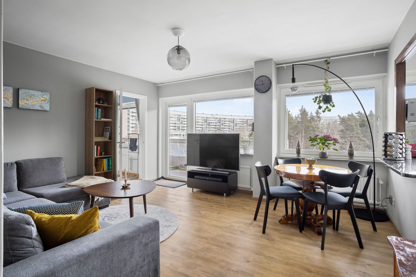 Välkommen till denna ljusa och optimalt planerade tvåa om 45 kvm med ett fantastiskt fritt läge och stor balkong mot natur och lugn. Här bor du högt och insynsskyddat på Kometvägen 19 i Täby, i omtyckta Brf Venus.