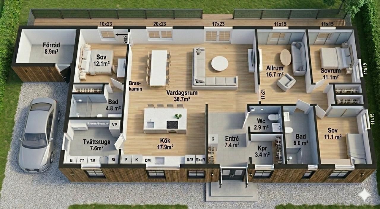 Nu ges ett sällsynt tillfälle att förvärva en nyproducerad enplansvilla i absolut toppskick – ett hem där varje detalj är noggrant utvald med fokus på kvalitet, design och komfort. Här möts moderna lösningar och exklusiva materialval i en harmonisk helhet, perfekt för dig som söker ett bekvämt och stilrent boende utan kompromisser.