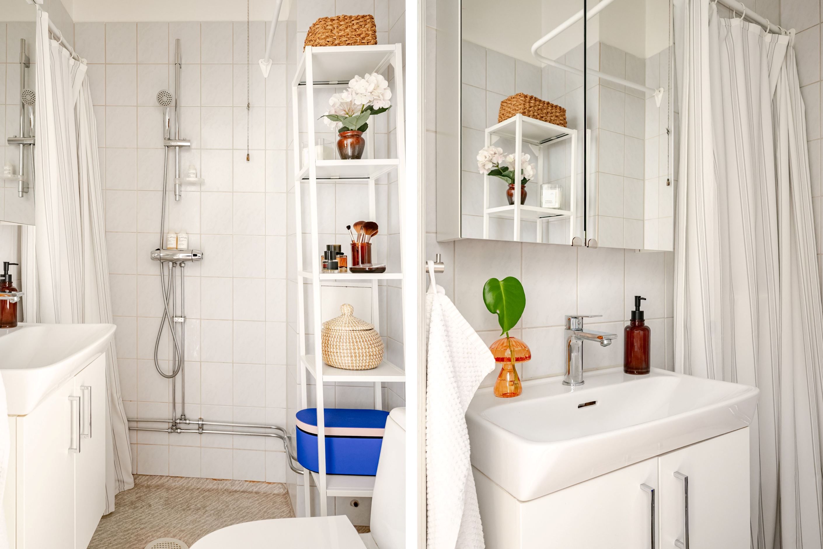 Bostadens ytor är smart disponerade med en funktionell köksdel utrustad med spis, fläkt, kyl, diskho samt mikrovågsugn. Det stilrena badrummet har kakel på väggarna och rymmer dusch, wc, tvättställ med kommod samt spegelförvaring. I hallen finns tidstypisk hatthylla med plats för avhängning.