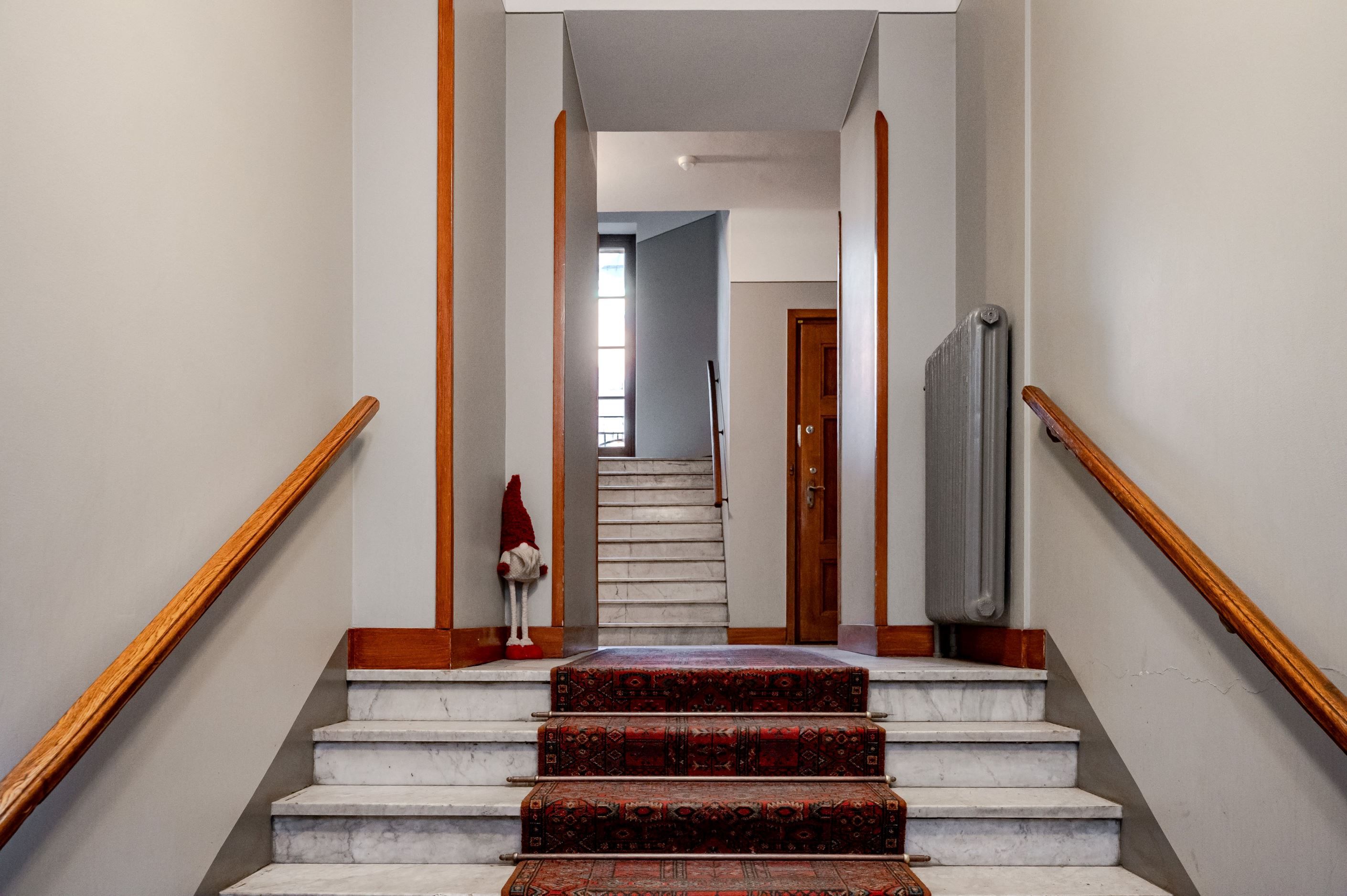 Lägenheten har ett lugnt och skyddat läge mot föreningens innergård, vilket ger en avkopplande känsla trots det centrala läget. I direkt anslutning till bostaden finns en trapphusbalkong som kan nyttjas av bostadsinnehavaren – en uppskattad extra utomhusyta. Föreningen har dessutom en mycket fin grönskande innergård med utemöbler och planteringar. Perfekt för den som vill nyttja utemiljön utan att lämna fastigheten.