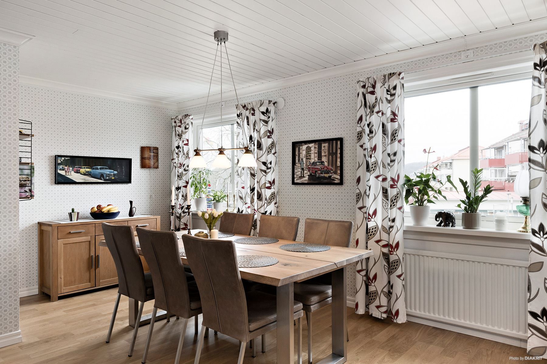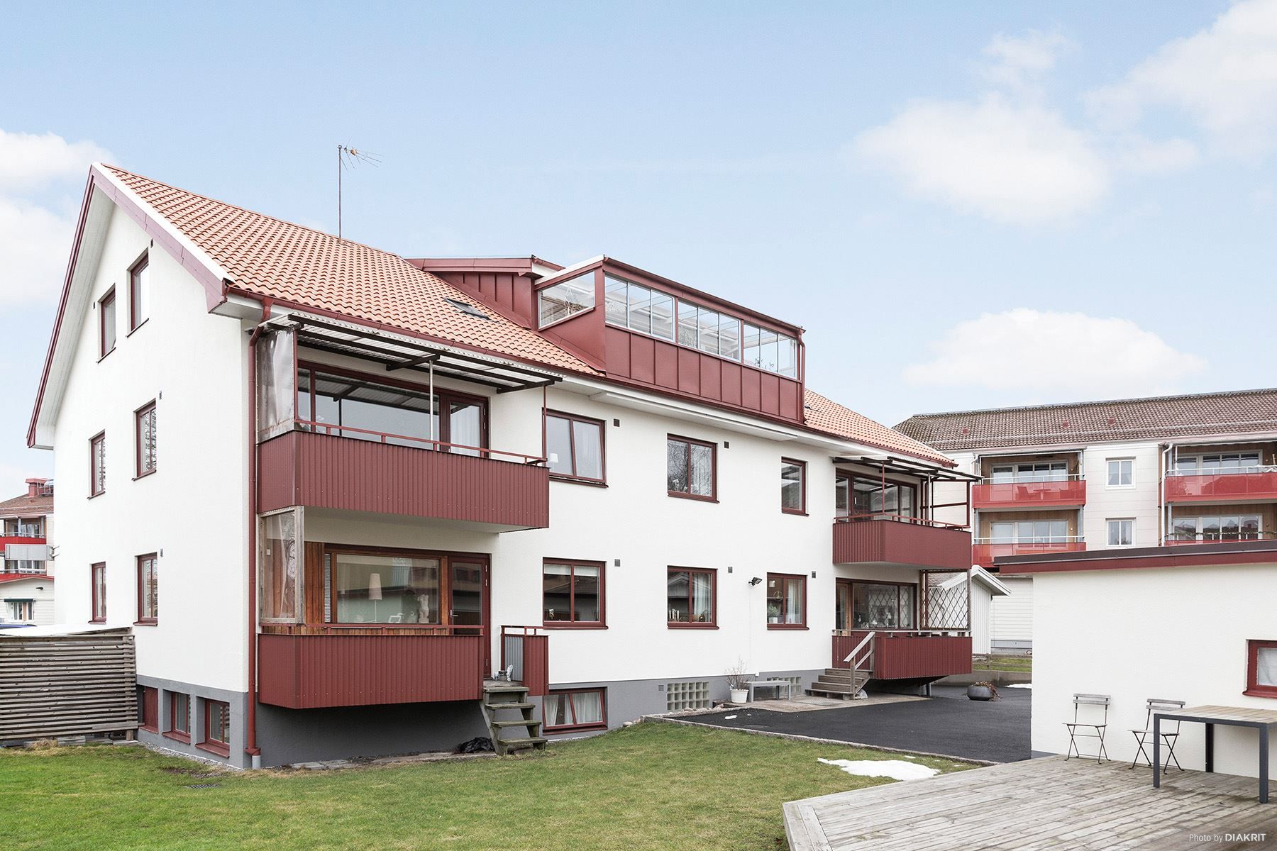 Välkomna till en verkligen unik lägenhet med låg avgift, öppen spis och eget garage i hjärtat av Kungälv.