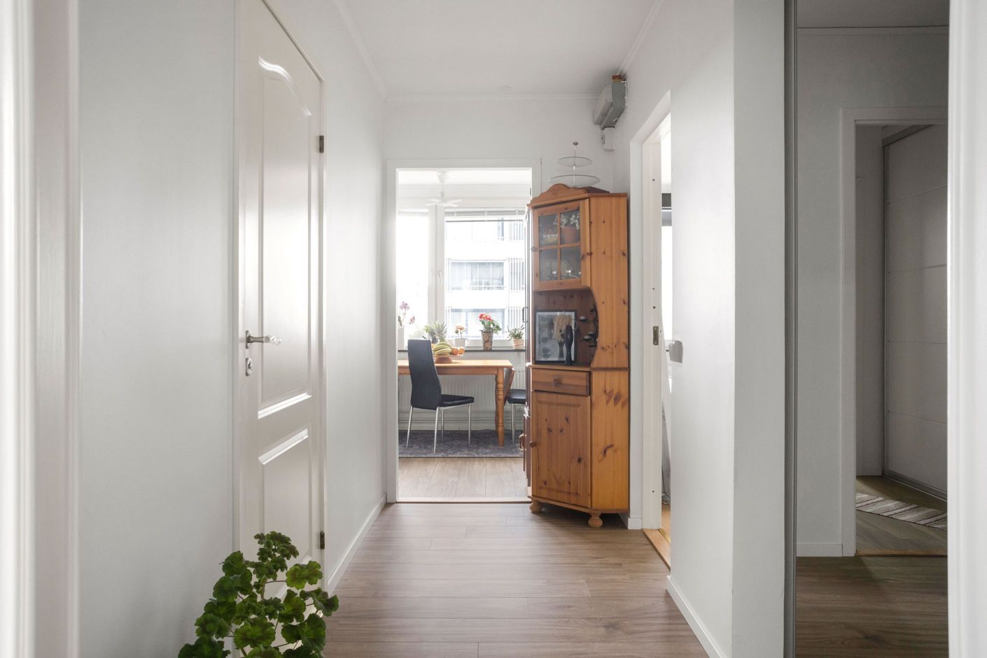 Endast 1km från Kongahälla centrum ligger den stora gavel 4:a med bl.a. renoverat kök, stor inglasad balkong, fina ytskikt och två toaletter. Stora delar av bostaden renoverades under 2024. Här tar du hissen upp och möts av en ljus hall med stora garderober och god avhängningsyta. Fint golv och ljusa väggar. Vidare in finns en mindre hall/förrådsyta som används som klädkammare och därifrån möts du av master bedroom.