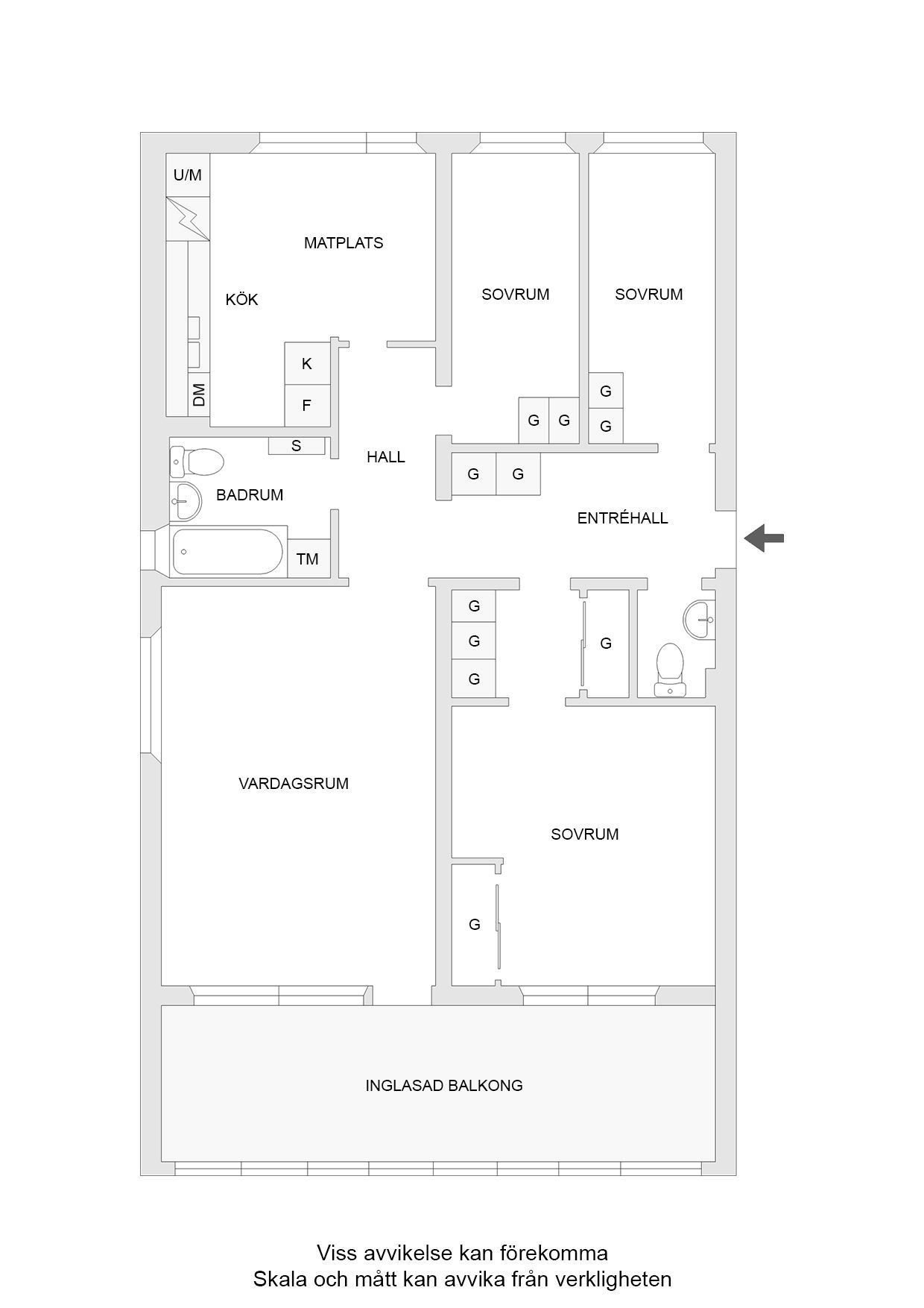 De andra två sovrummen är nymålade och har fint ljusinsläpp. Köket är fullt utrustat och nyrenoverat 2024 med matplats intill fönstret. I lägenheten finns även två toaletter varav ena med badkar och tvättmaskin. Vardagsrummet är stort med plats för soffgrupp och matgrupp, renoverat 2024 därifrån når du den härliga inglasade balkongen. I lägenheten finns även fönster i tre väderstreck vilket ger rikligt med naturligt ljusinsläpp.