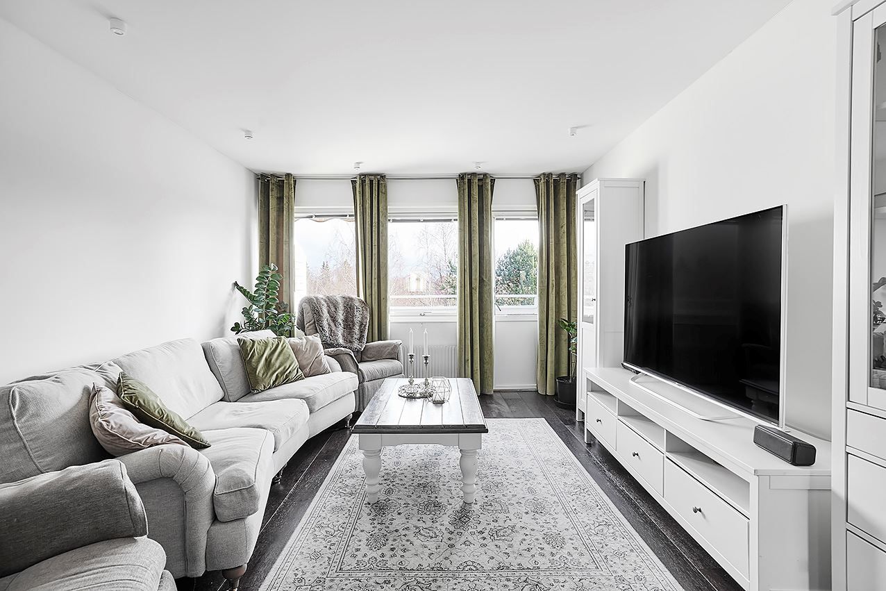 Rummen disponeras enligt ett tilltaget badrum i helkaklat utförande med dusch, toalett, tvättmaskin och handfat, ett ljust och funktionellt kök med köksö i öppen planlösning, två sovrum med fin parkett respektive heltäckningsmatta på golvet, vardagsrum med stora sociala ytor samt balkong. Här får du en trivsam uteplats på framsidan som vätter ut mot väst. Sammanfattningsvis så är detta ett hem med genomgående fina ytskikt, gott om ljusinflöde med naturen runt hörnet.