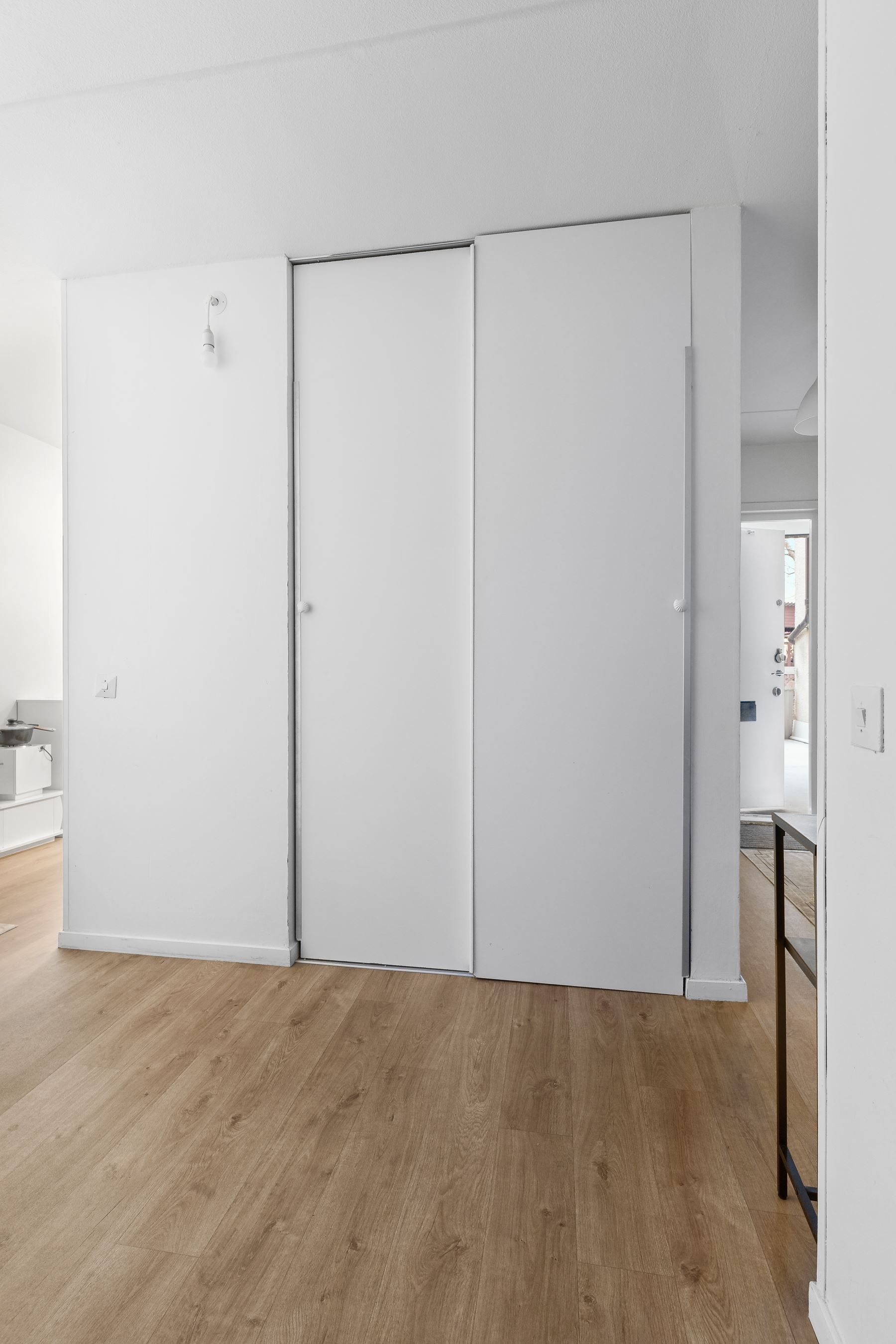 Lägenheten bjuder på en öppen och social planlösning där vardagsrum och kök smälter samman på ett smakfullt sätt. Den stora balkongen/terrassen ger ett härligt extra rum under större delen av året och erbjuder plats för både loungegrupp och växter.