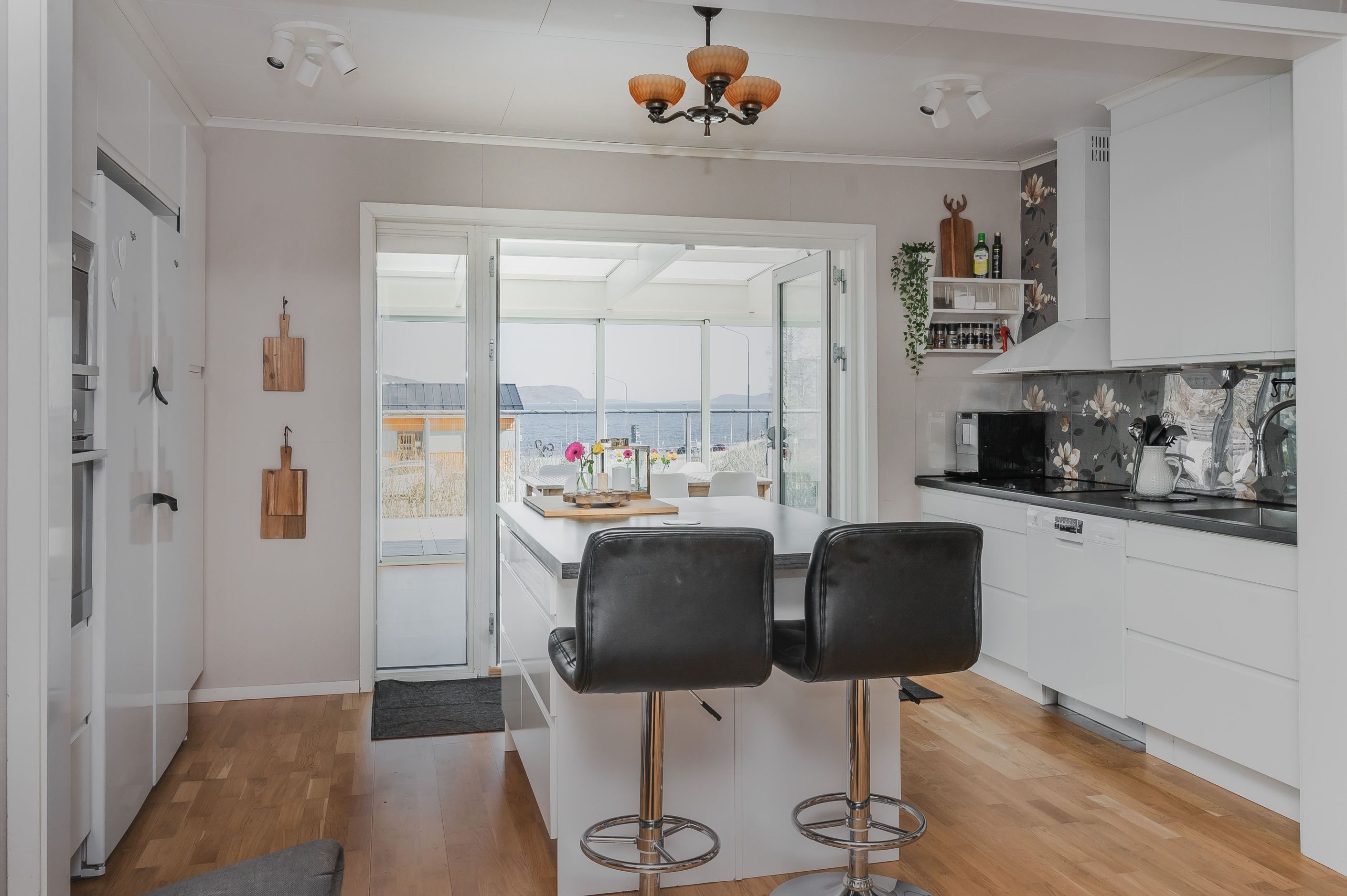 Bostaden erbjuder ett renoverat kök med direkt utgång till ett stort, nybyggt uterum där du kan njuta av utsikten över vattnet oavsett väder. I anslutning till köket finns ett ljust och inbjudande matrum, även det med vacker havsutsikt. Det smakfullt renoverade vardagsrummet ger en varm och ombonad känsla och badrummet är även det renoverat med moderna materialval.