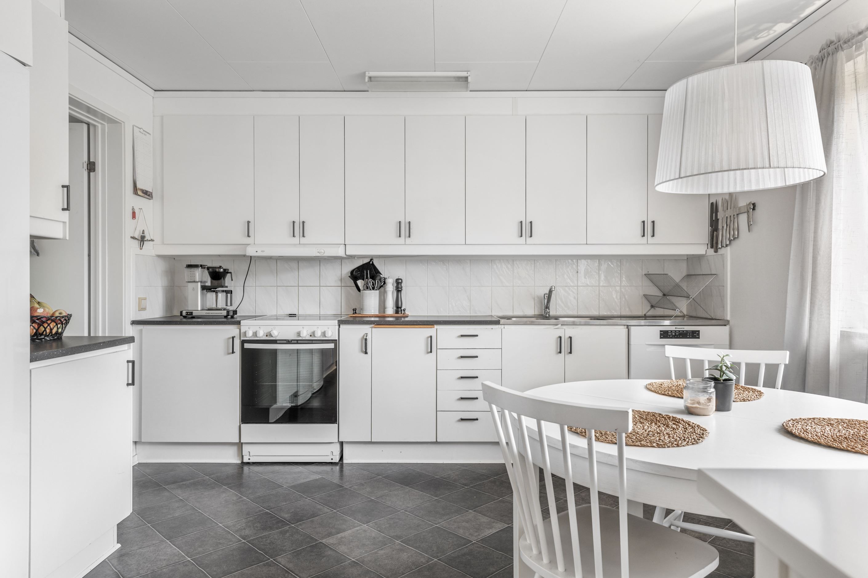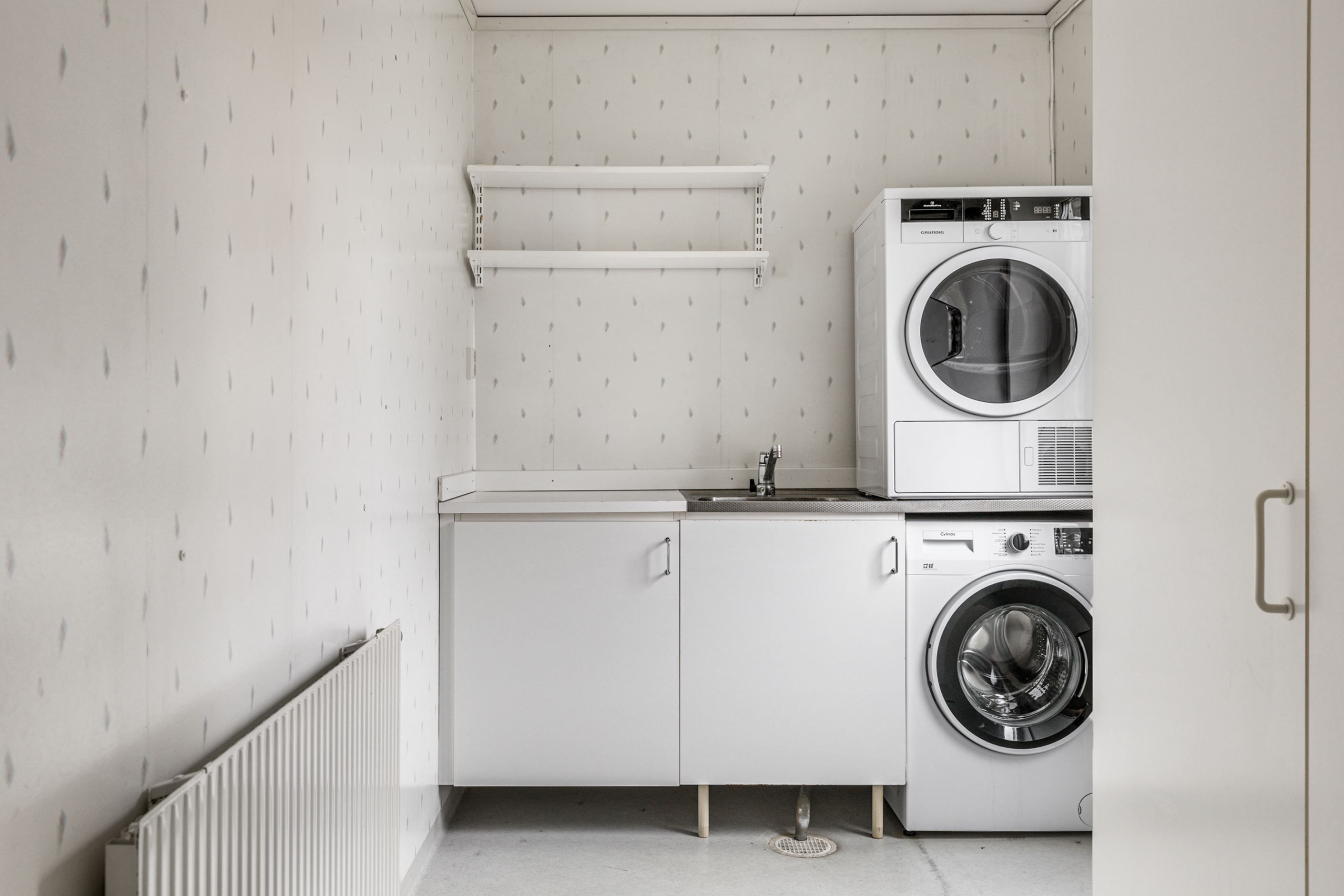 Båda bostäderna är välplanerade med ljusa och rymliga rum. Hallarna erbjuder bra förvaringsmöjligheter och leder vidare in i bostäderna. Vardagsrummen har ett fint ljusinsläpp och gott om plats för både soffgrupp och matbord. Köken är praktiska med bra arbetsytor och förvaring, samt plats för en matgrupp där familj eller hyresgäster kan samlas. Varje bostad har tre sovrum som är lättmöblerade och funktionella. Badrummen är fräscha med dusch, toalett och handfat, och det finns dessutom separata tvättutrymmen som underlättar vardagen.