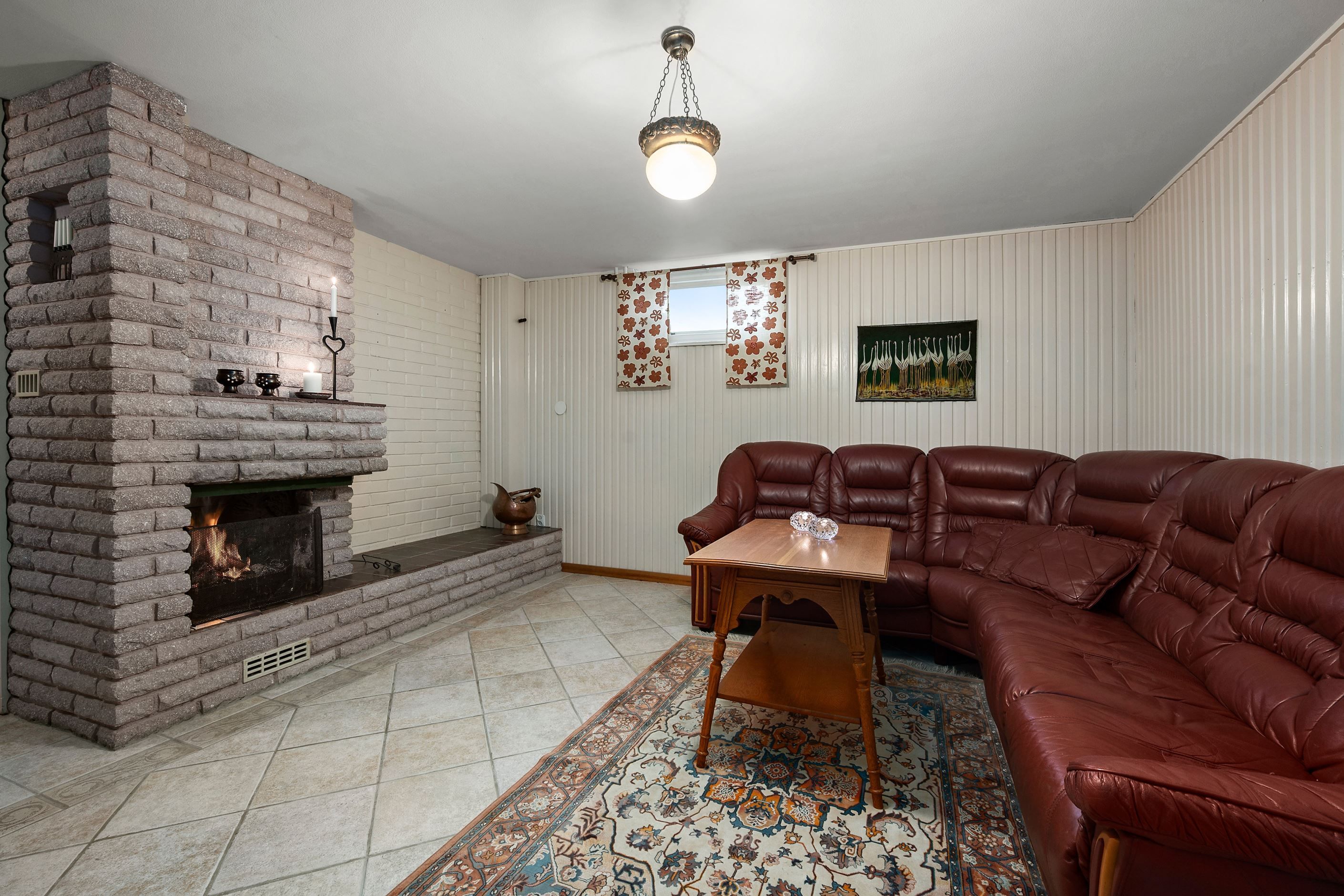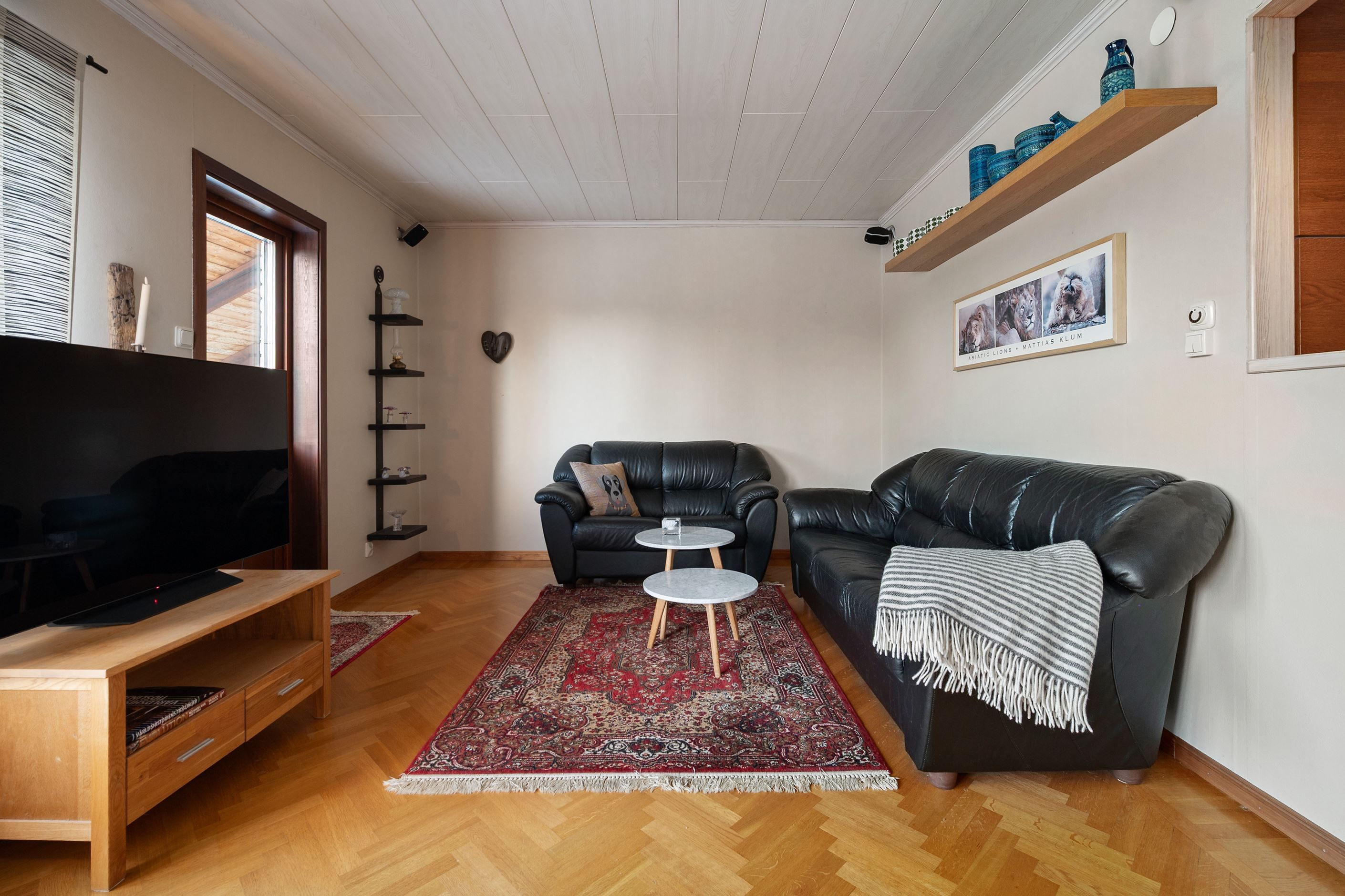Bostaden har en noga genomtänkt och öppen planlösning med sociala ytor, fördelat över 4 rok, varav 3 sovrum. Utöver detta finns kök med matplats, badrum, en mindre WC. I källarplan finns tvättstuga, gillestuga, hobbyrum och förråd och matkällare med mera.