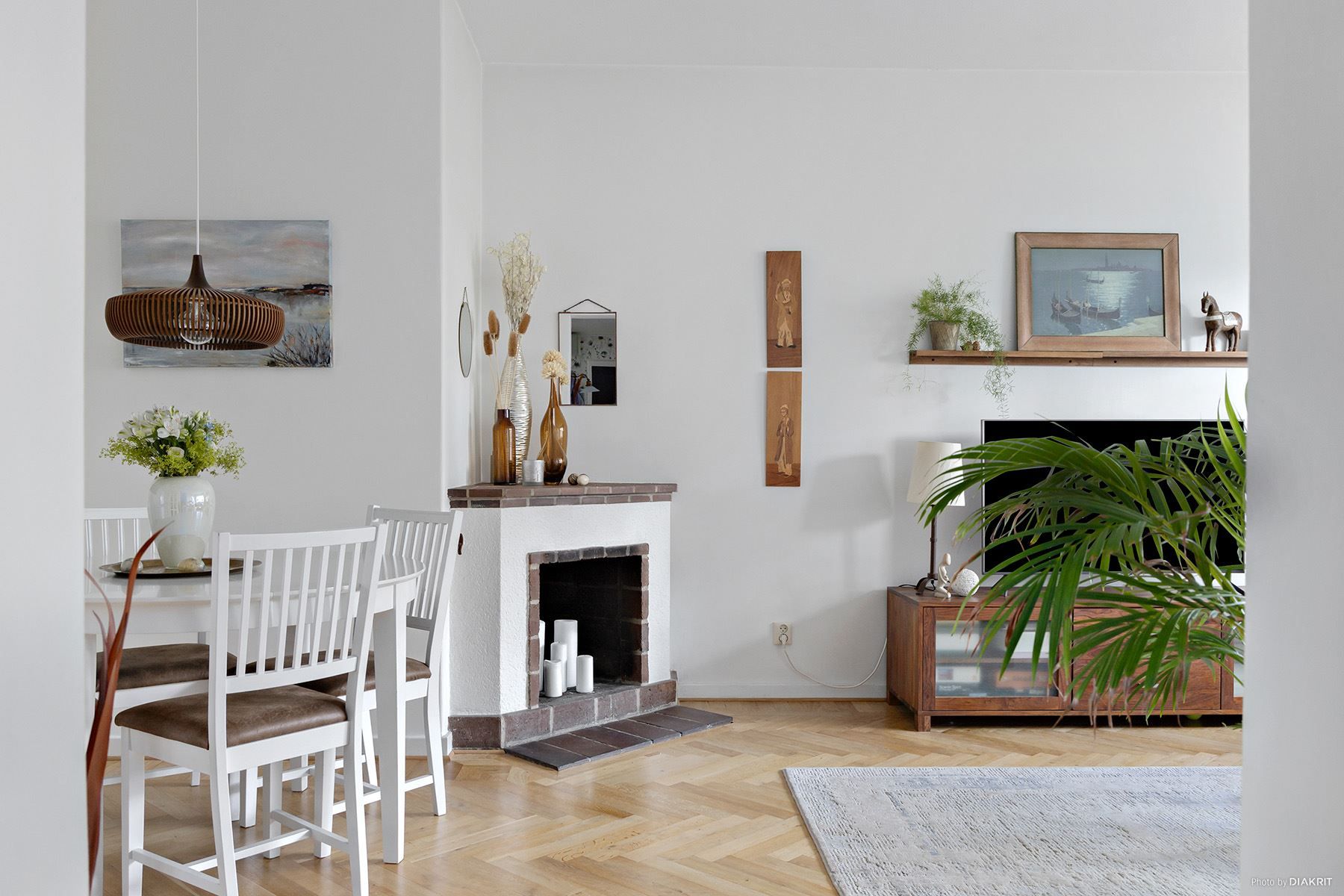 Det generösa vardagsrummet erbjuder gott om utrymme för både en bekväm soffhörna och matgrupp. Den öppna spisen strålar med sin elegans och sätter tillsammans med den vackra fiskbensparketten och hög takhöjd karaktären i rummet. Master bedroom är placerat längst in i bostaden vilket förstärker en lugn och harmonisk känsla. Med dess rymd och goda förvaringsmöjligheter är det här ett sovrum att trivas i. Altandörren öppnar upp till balkongen i soligt västerläge, med långt avstånd till nästkommande byggnad är det här den perfekta platsen för att njuta av utsikten där både stadskärnan och sundet glimtar fram!