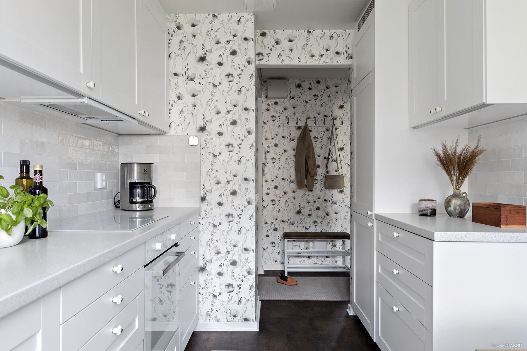 När du öppnar dörren välkomnas du av en rymlig och inbjudande hall, där känslan av hemtrevnad genast infinner sig. Det renoverade köket är hållet i ljusa och stilrena färger och är komplett utrustat med alla moderna bekvämligheter samt innehar en naturlig matplats till dagens alla måltider.