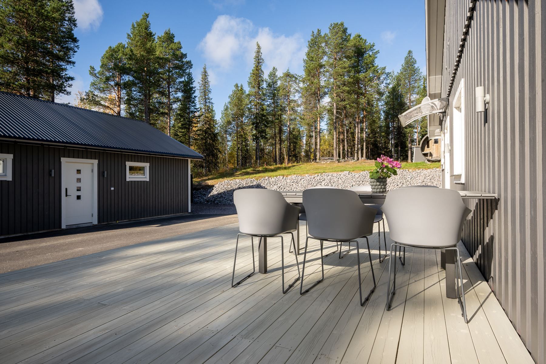 Välkommen till lugnet med 3kilometer till centrum, med utsikt mot Dundret och älven. Här välkommans du av en luftig hall med ljus pärlspont på väggarna och laminatgolv. Från hallen hittar du både sovrum, badrum samt mysigt vardagsrum med fönster från två håll och ljusa väggar och laminatgolv. Vidare finner du rymlig matplats med fina ljusinsläpp och arbetskök med bänkyta som ger möjlighet till sittplatser. Centralt i villan finner du en härlig vedeldad kamin. Badrummet in till köket är renoverat under 2023, med våtrumsmatta på golv och vägg. Ytterligare sovrum med garderober. Ute på den generösa gården finner du stora möjligheter till parkering/uppställnings yta, bastu in till skogspartiet och härlig altan med glas räcke och delvis överbyggd med tak. Ordentligt nybyggt dubbelgarage om ca 70kvm med högt i tak, två eldrivna portar samt sidodörr. Asfalterad uppfart till garaget samt asfalt mellan hus och garage. Här har du naturen in till knuten med både skidspår och tillgång till Vassaraälv! Varmt välkommen att hitta hem!