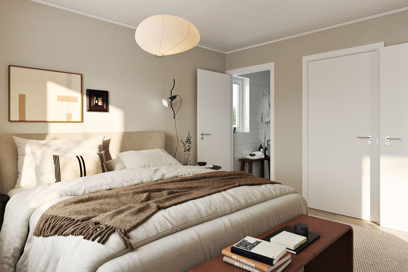 Det stilrena enplanshuset om 161 kvm erbjuder 6 rum varav 4 sovrum, med en genomtänkt planlösning som kombinerar generösa sällskapsytor med en privat och avskild sovrumsdel. Den öppna planlösningen mellan kök, matplats och vardagsrum skapar en luftig och representativ miljö med ett fantastiskt ljusinsläpp från stora fönsterpartier som ramar in sjöutsikten.