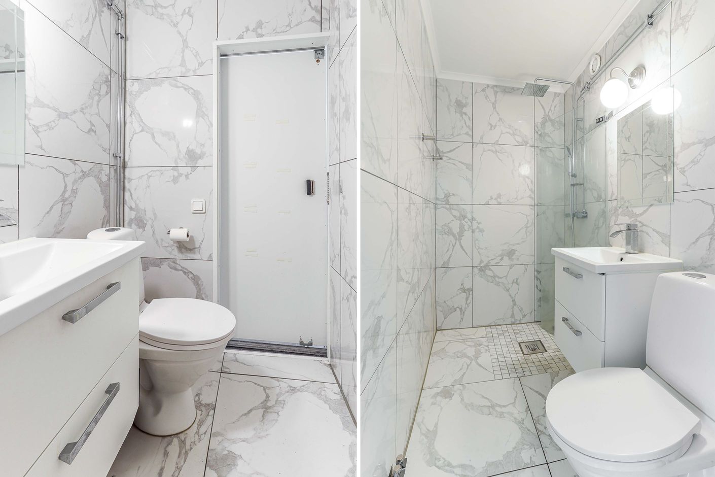 Lägenhetens 38 kvadratmeter är väl disponerade och upplevs rymligare än siffrorna antyder. Den generösa hallen ger ett ordnat första intryck med goda möjligheter till förvaring. Köket är trendigt och funktionellt utformat med bra arbetsytor och en naturlig plats för matbord, vilket skapar en tydlig och praktisk avdelning i hemmet. Det helkaklade badrummet håller en fräsch och tidlös standard.