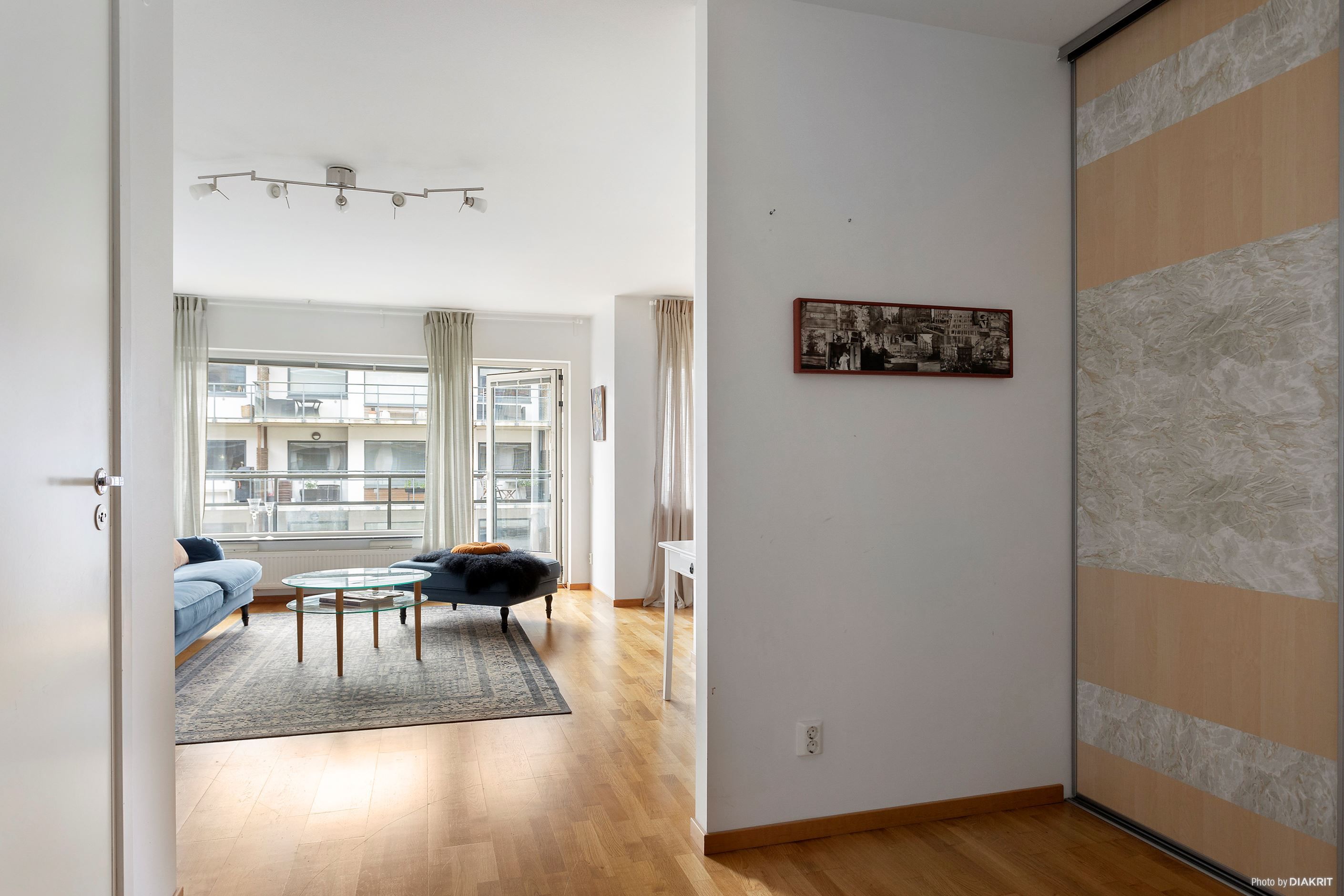 Planlösningen är genomtänkt och erbjuder ett ljust vardagsrum i öppen anslutning till köket, extra härligt ljusinsläpp tack vare stora fönster ut mot balkongen. Här finns gott om plats för både soffgrupp och matplats, vilket skapar en social och trivsam yta. Kök och badrum är i original från 2005, fullt funktionellt men samtidigt finns möjlighet att med små medel sätta sin egen prägel på bostaden. Sovrummet ligger rofyllt mot lugn innergård och kompletteras av en generös klädkammare.