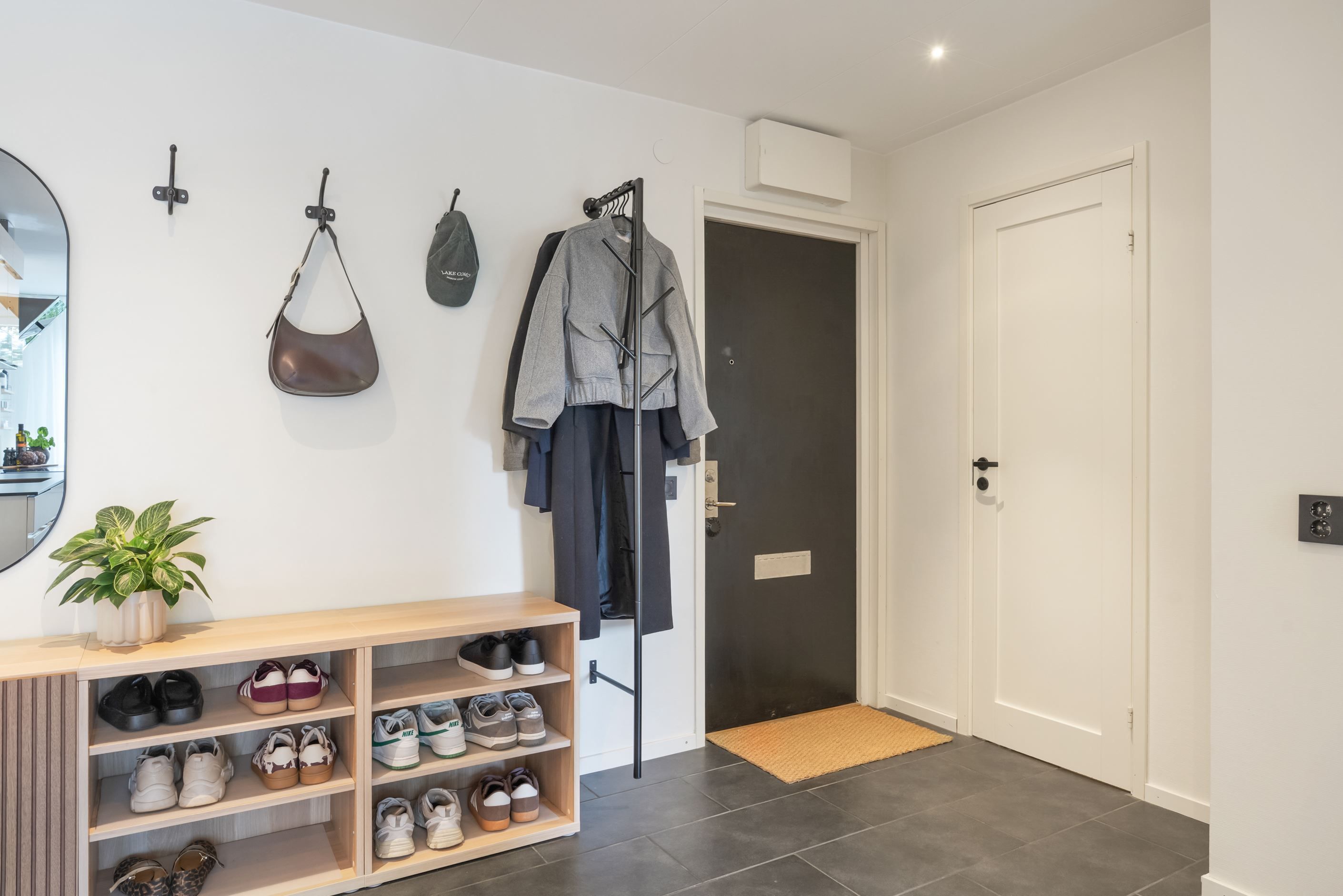 Redan i entrén möts du av en generös, klinkerbelagd hall med gott om plats. Det stilfulla köket är fullutrustat och smakfullt utformat, med öppning mot det ljusa och stora vardagsrummet. Här når du även balkongen som vetter ut mot föreningens baksida och Rönne å. Sovrummet är rofyllt och elegant, utrustat med flera garderober och ett vackert golv som harmoniserar med resten av bostaden. Det helkaklade badrummet är stambytt och håller en modern, tidlös stil. För extra komfort finns även en praktisk klädkammare som löser förvaringen på ett stilfullt sätt.