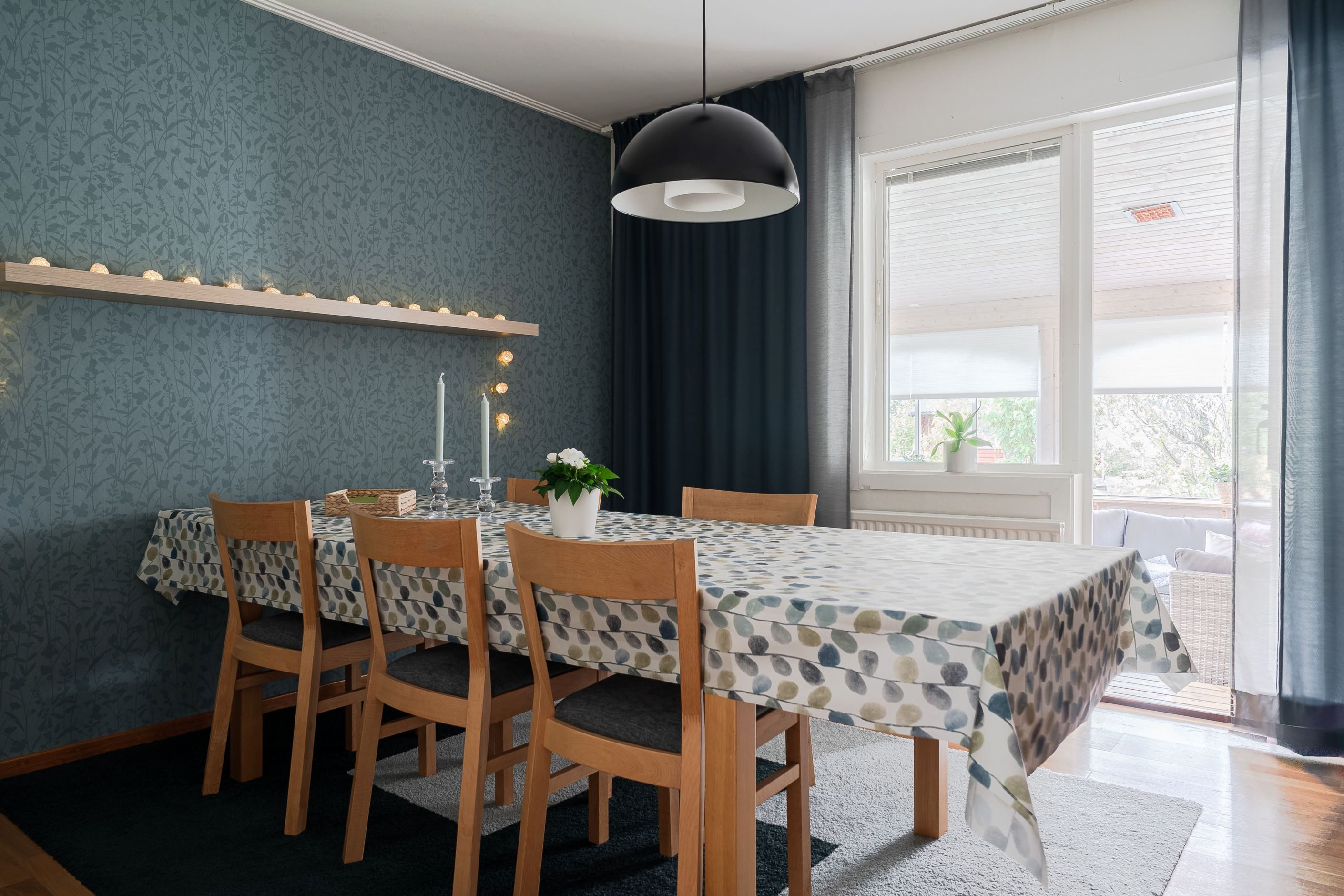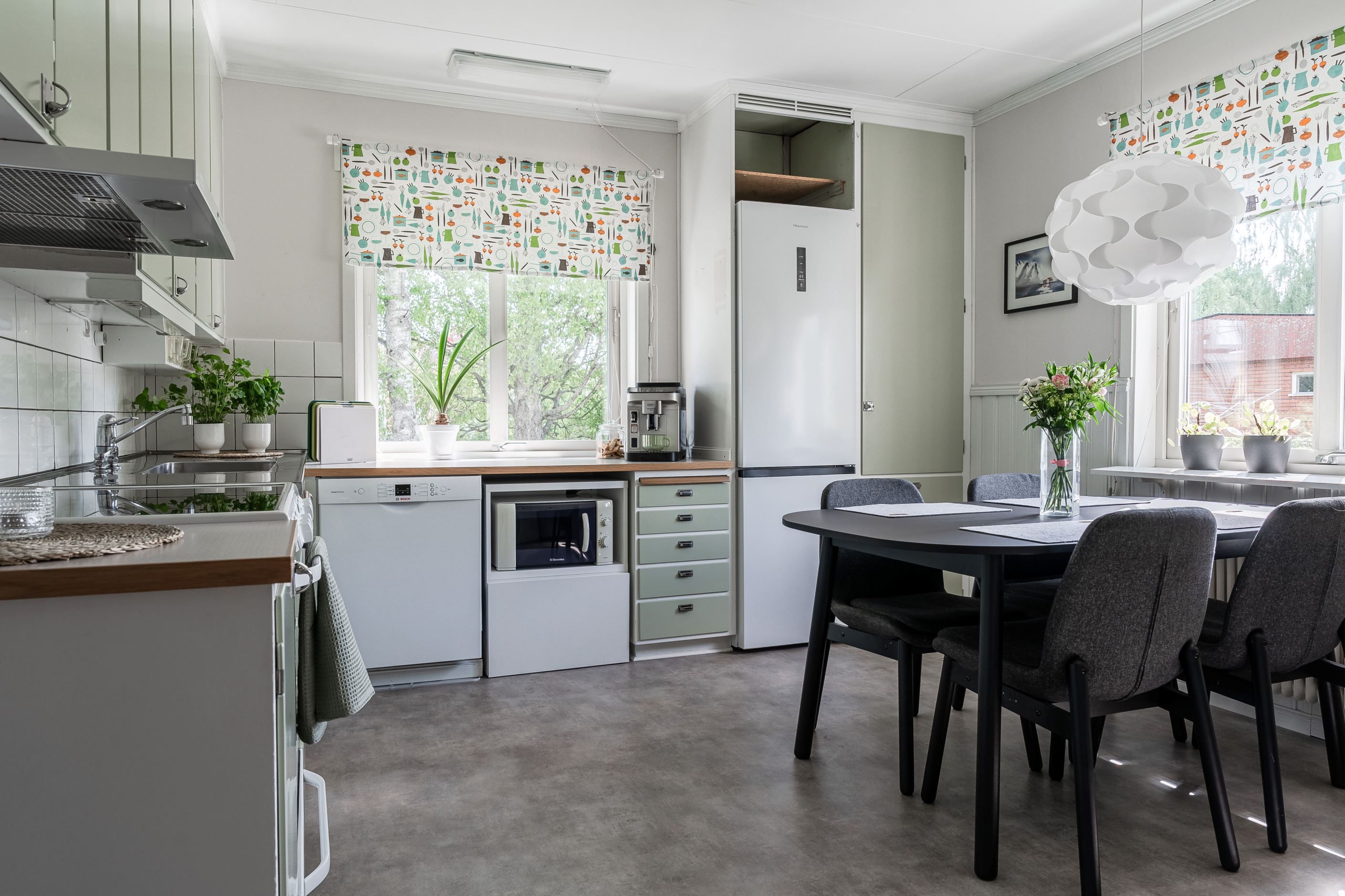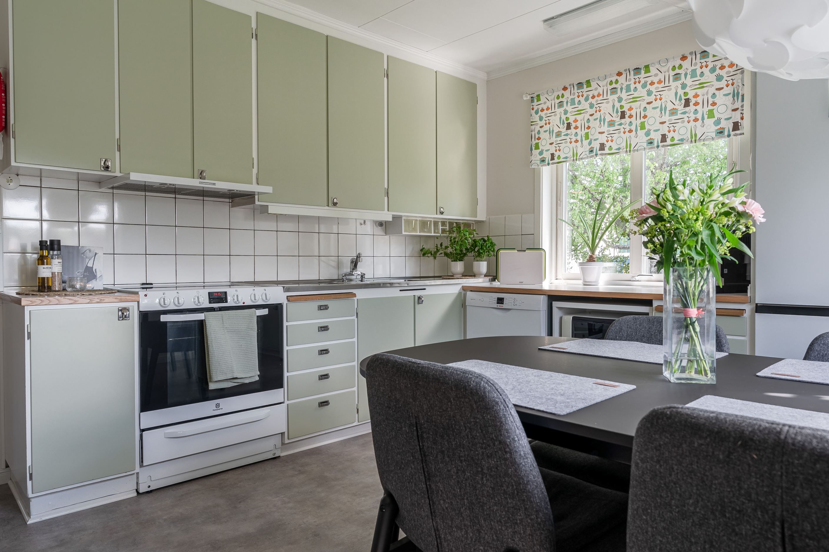 Bostaden bjuder på sociala ytor i kök och ligger i anslutning till uterum och trädgård.