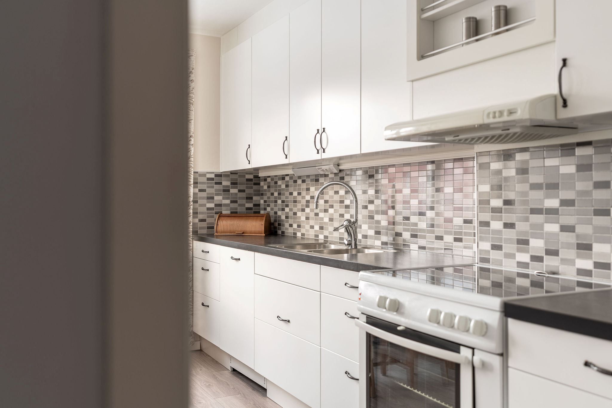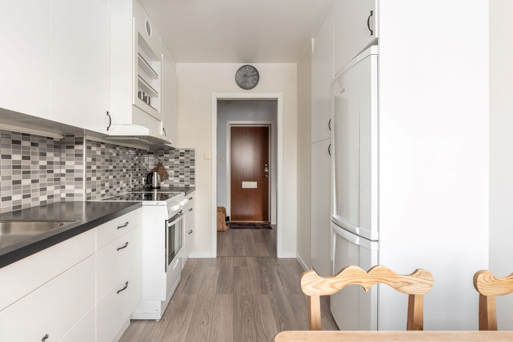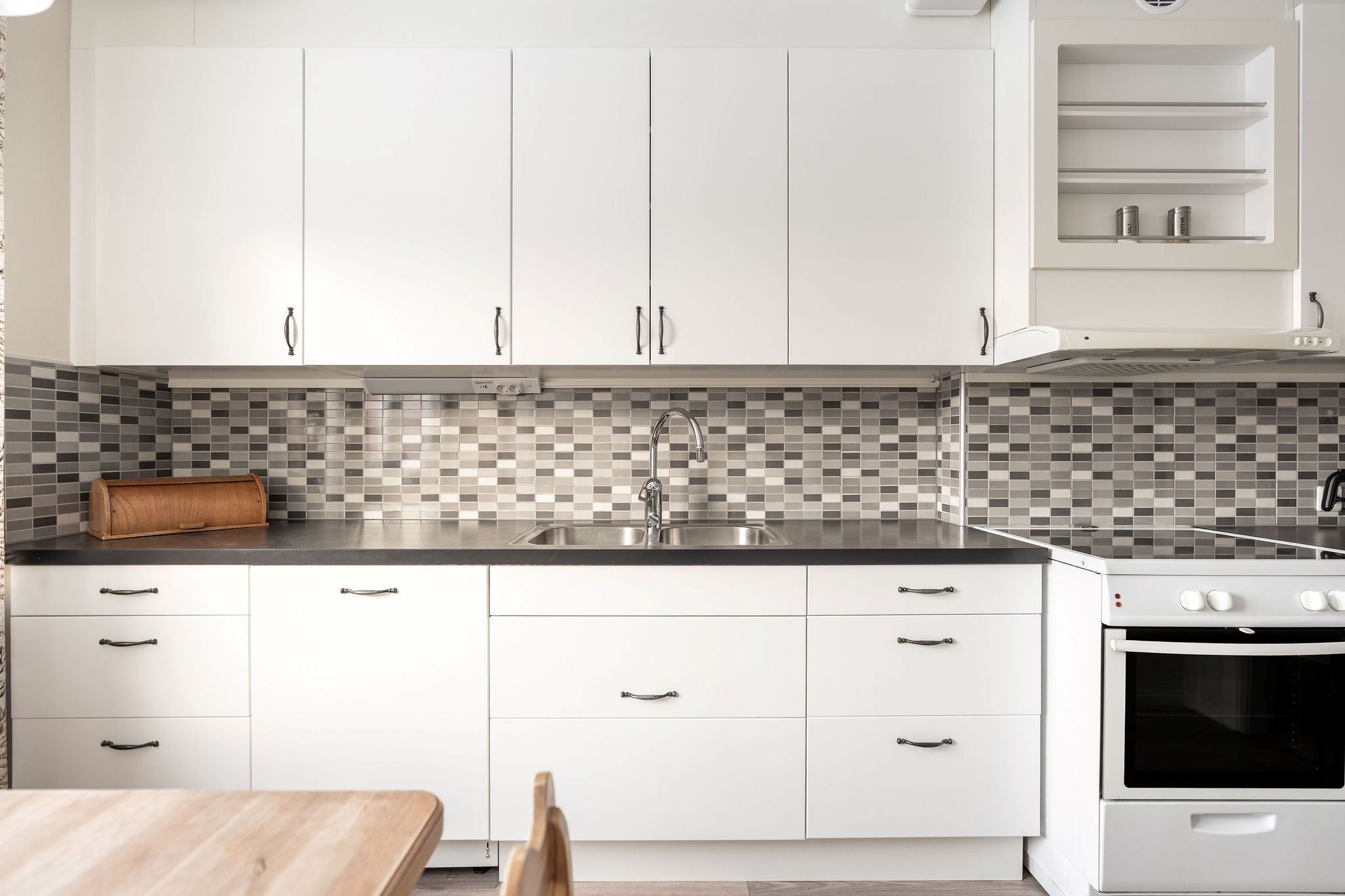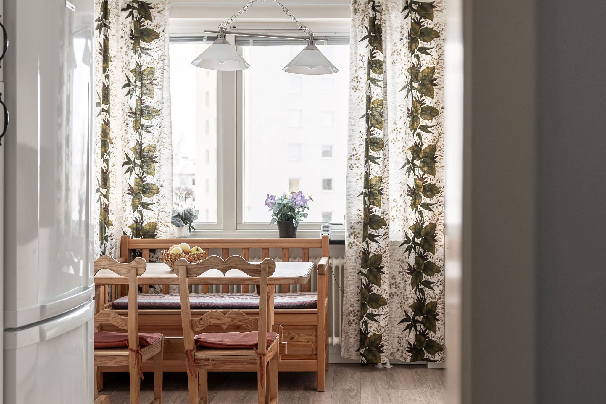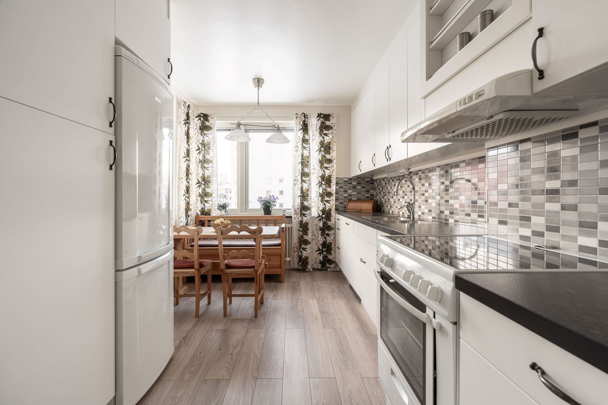 I ditt nya hem väntar ett hemtrevligt kök med plats för matbord, perfekt för både matlagning och umgänge.