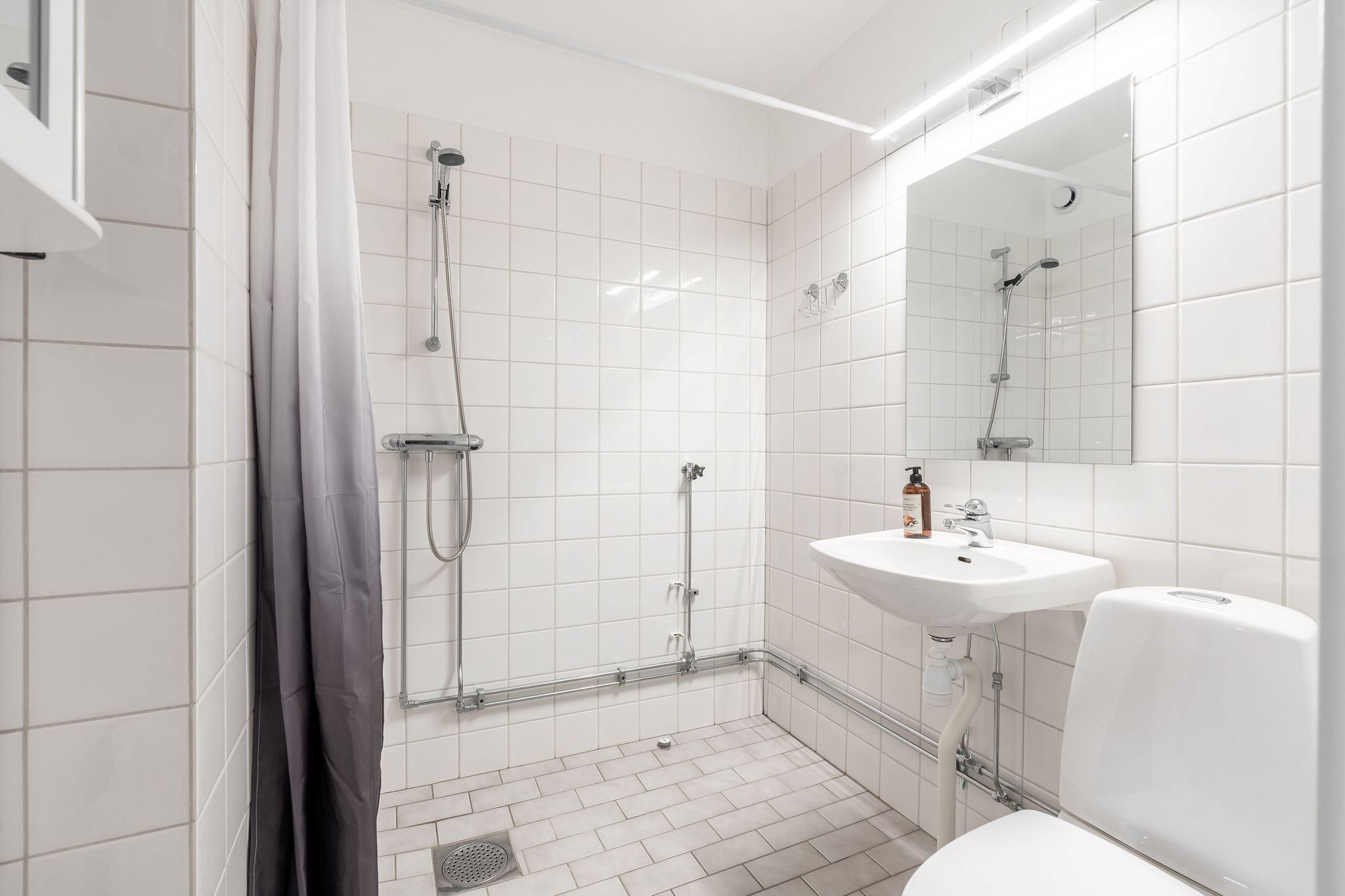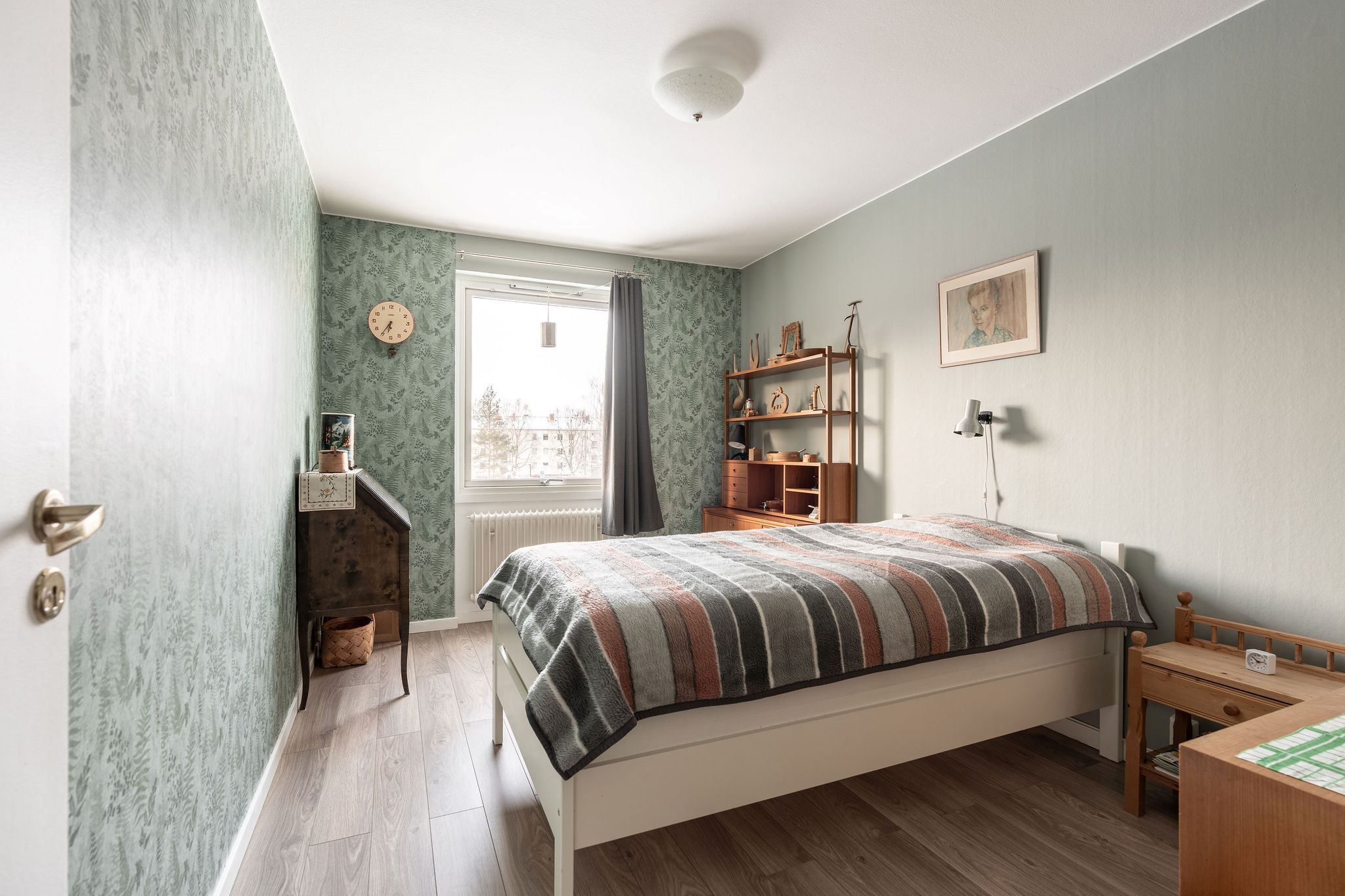 Sovrummet är rogivande med plats för en dubbelsäng, och det helkaklade badrummet är utrustat med dusch och förberett för egen tvättmaskin.