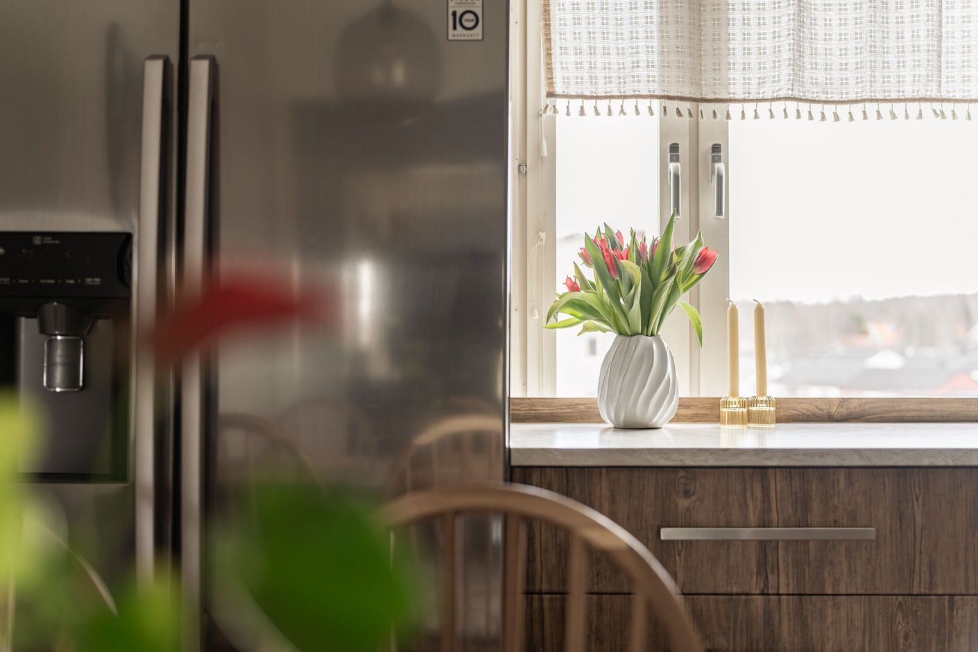 På Krondikesvägen 54A hittar du den här trivsamma trean om 75,5 kvm – ett hem där allt bara känns rätt.